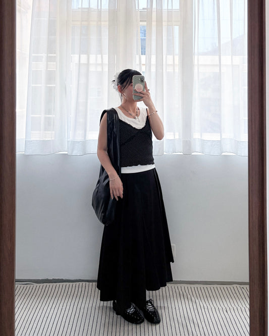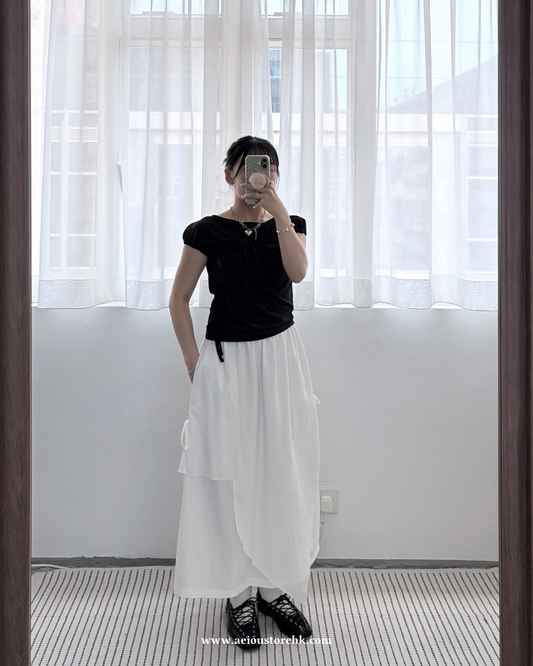 OP76- Flat-mouth Strap Layer Skirt | White | Black