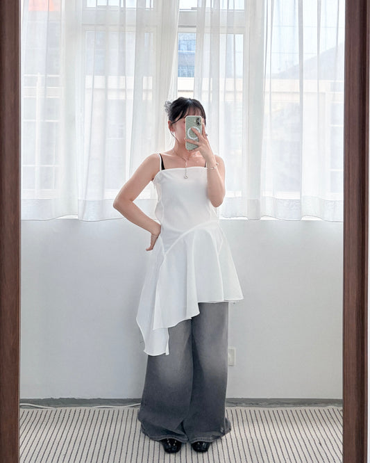 TP721- 吊帶露肩長袖Top | White | Black