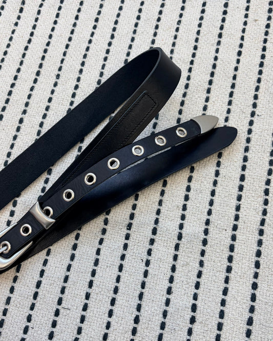 BT13- 圈圈扣疊帶牛皮皮帶 | Black