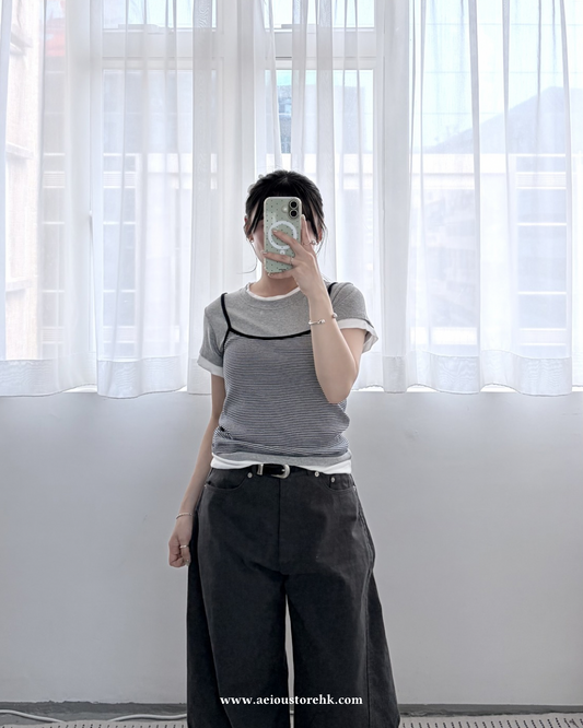 TP771- 假3件橫間Tee | White | Grey