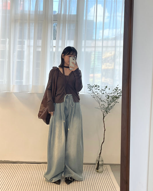 TP667- Soft Denim Drawsting Shirt | Light Blue | Blue | Black