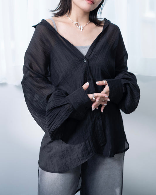 TP666- Crinkle Puff Sleeve Sheer | White | Brown | Black
