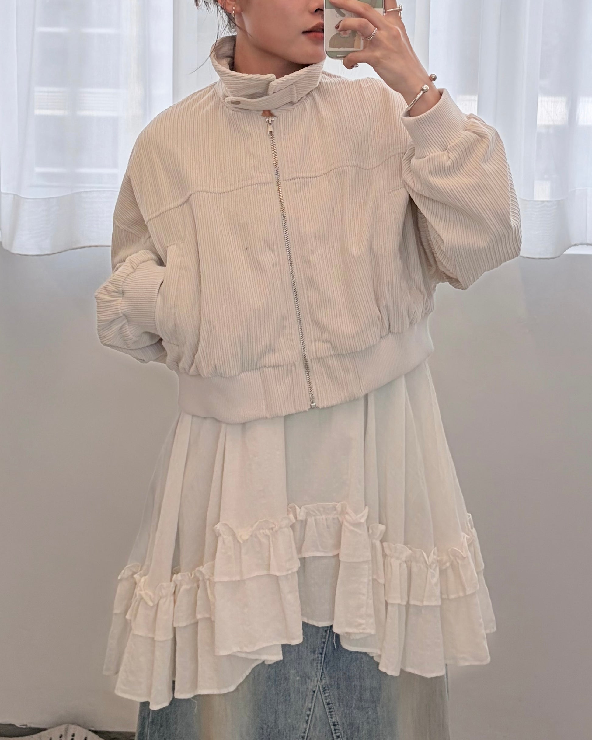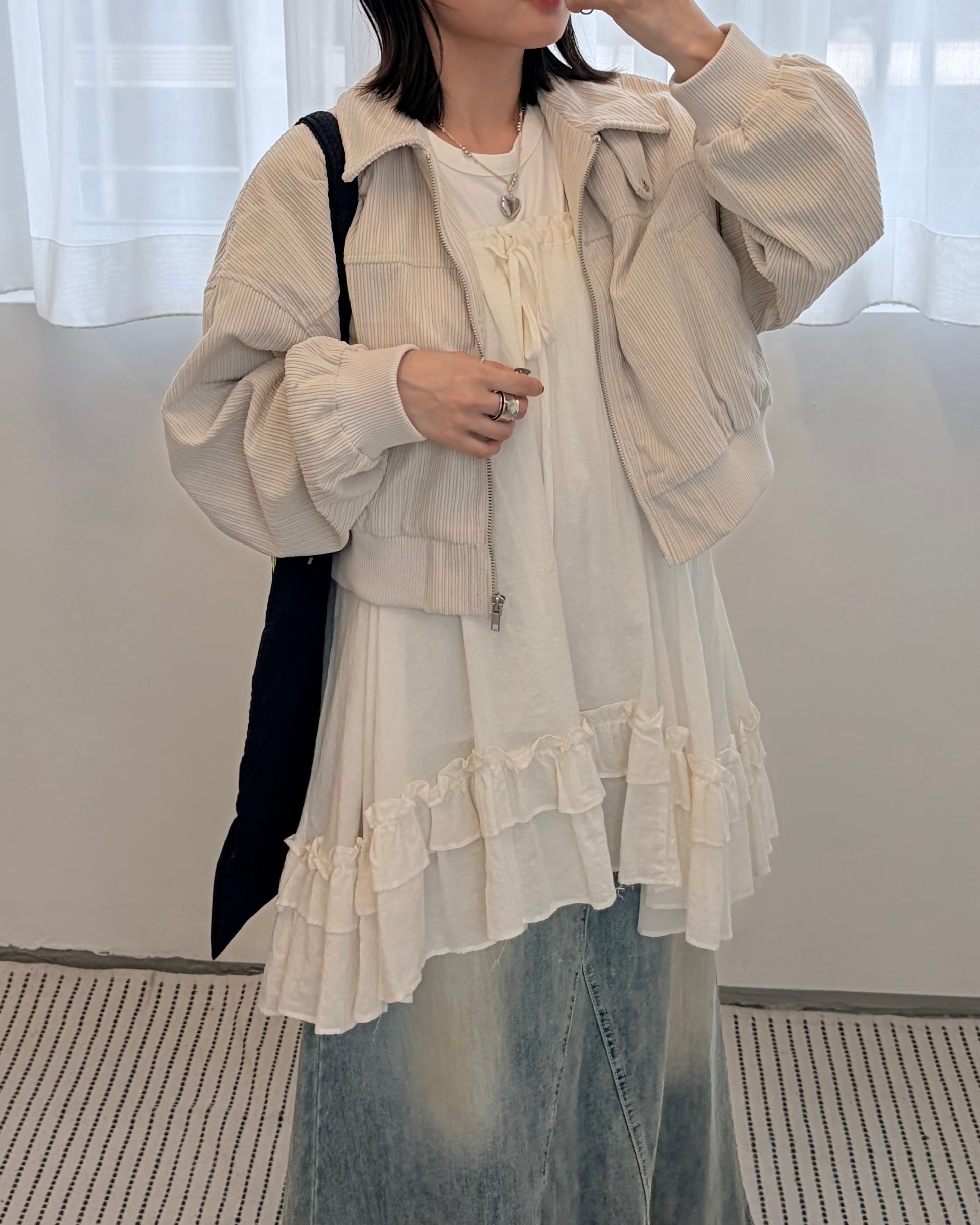 JK48- Corduroy Zip Cardigan | Ivory | Brown | Black