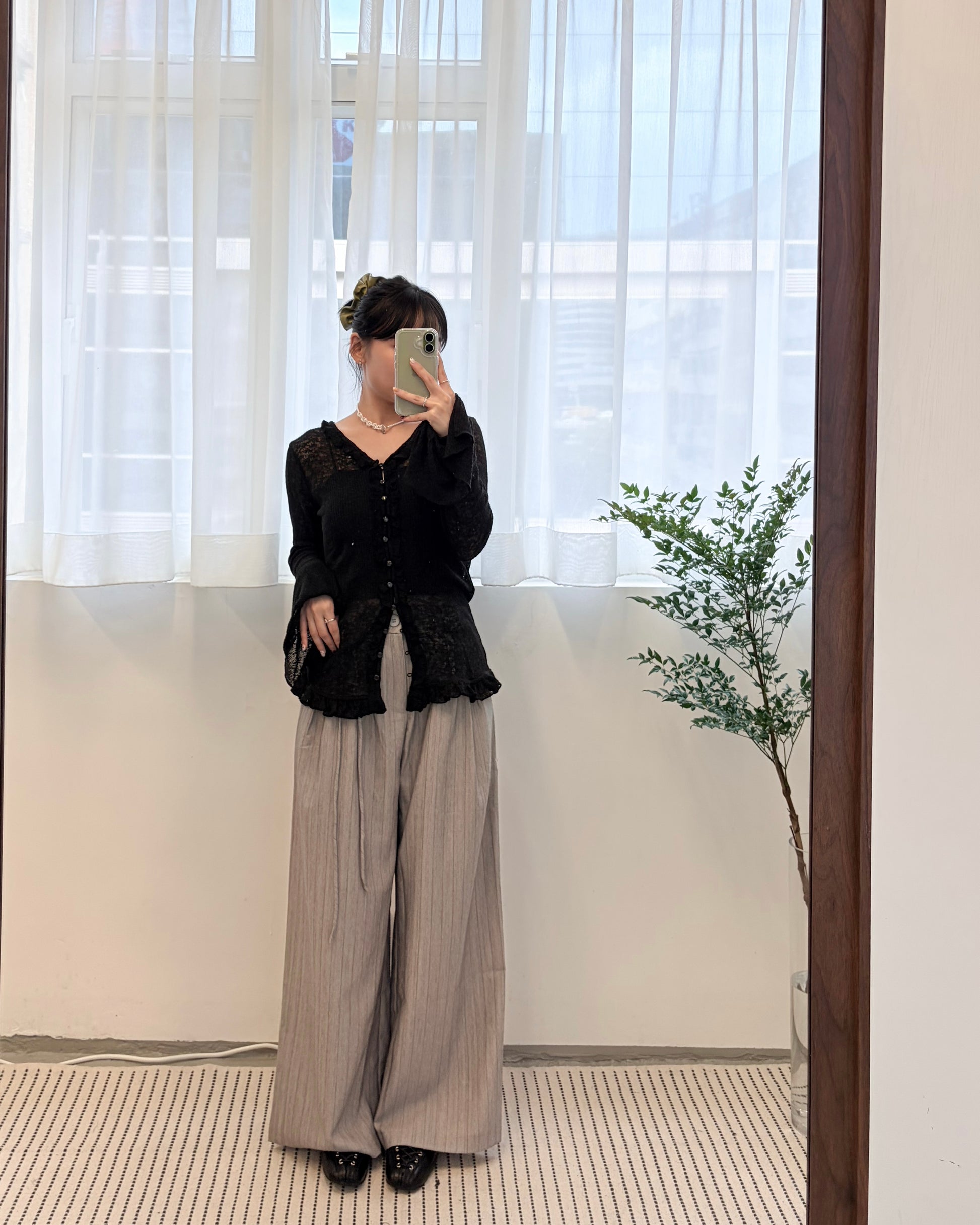 PT100- Stripe Classic Pant | Beige | Grey ( S / M ) 附有一條腰帶