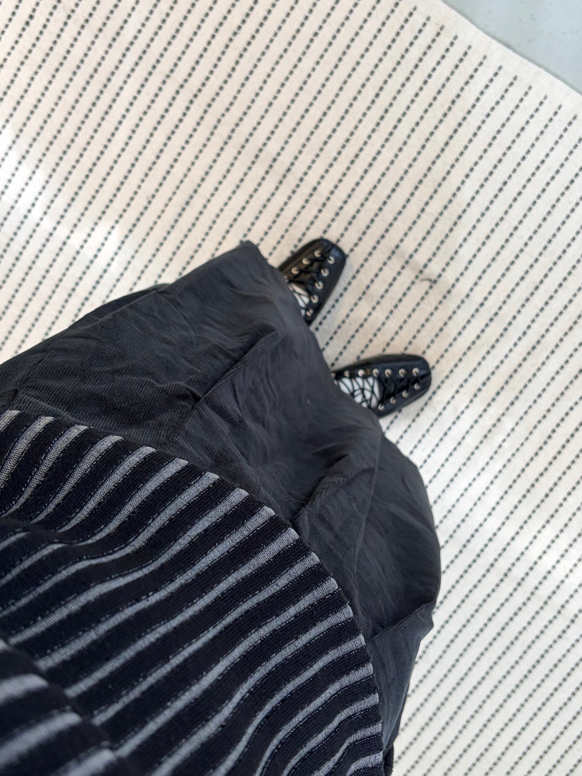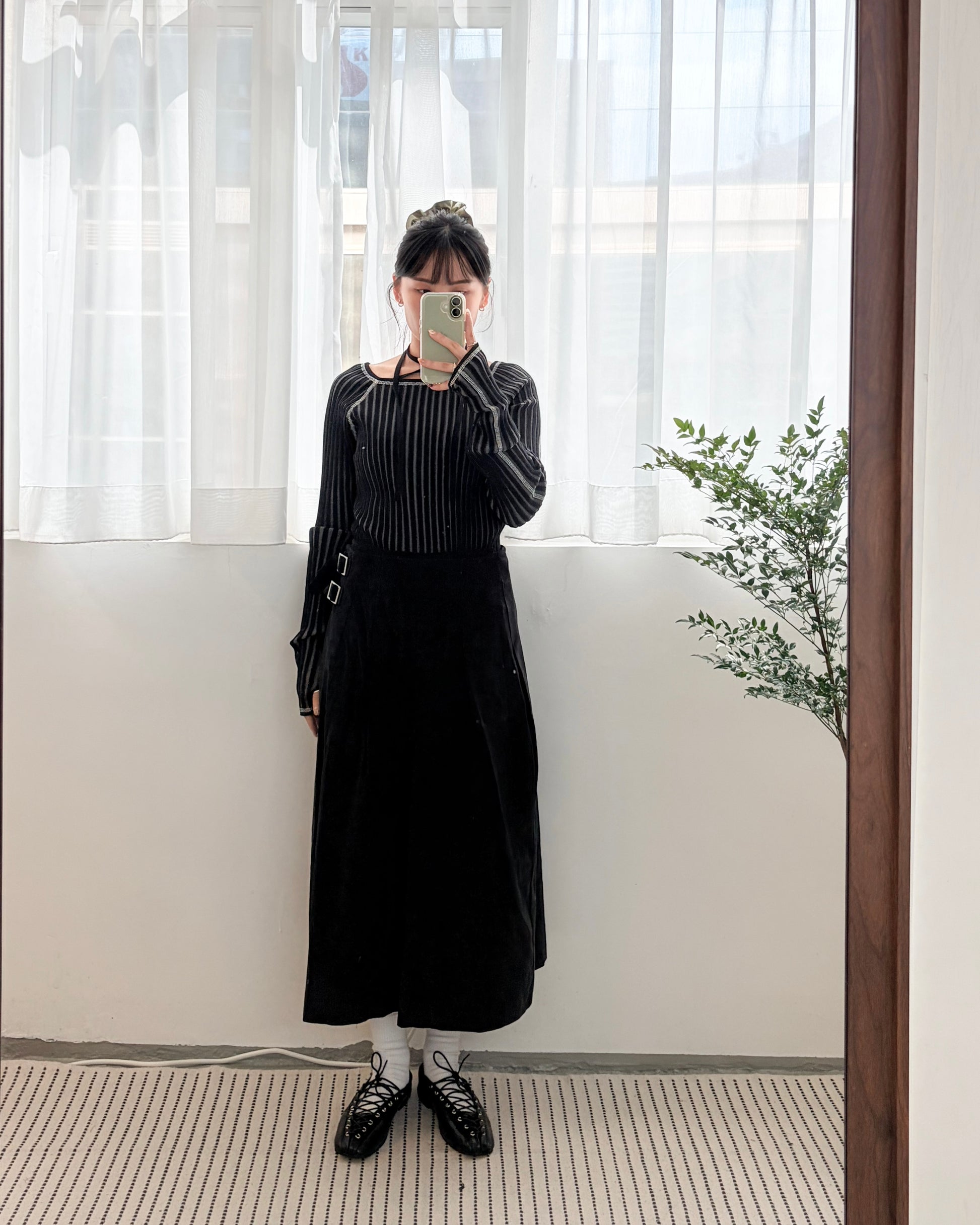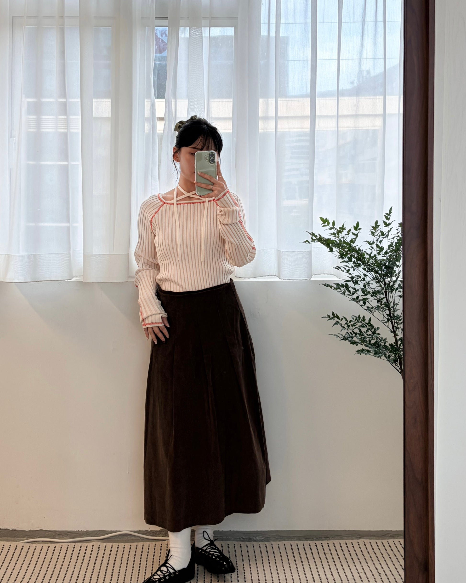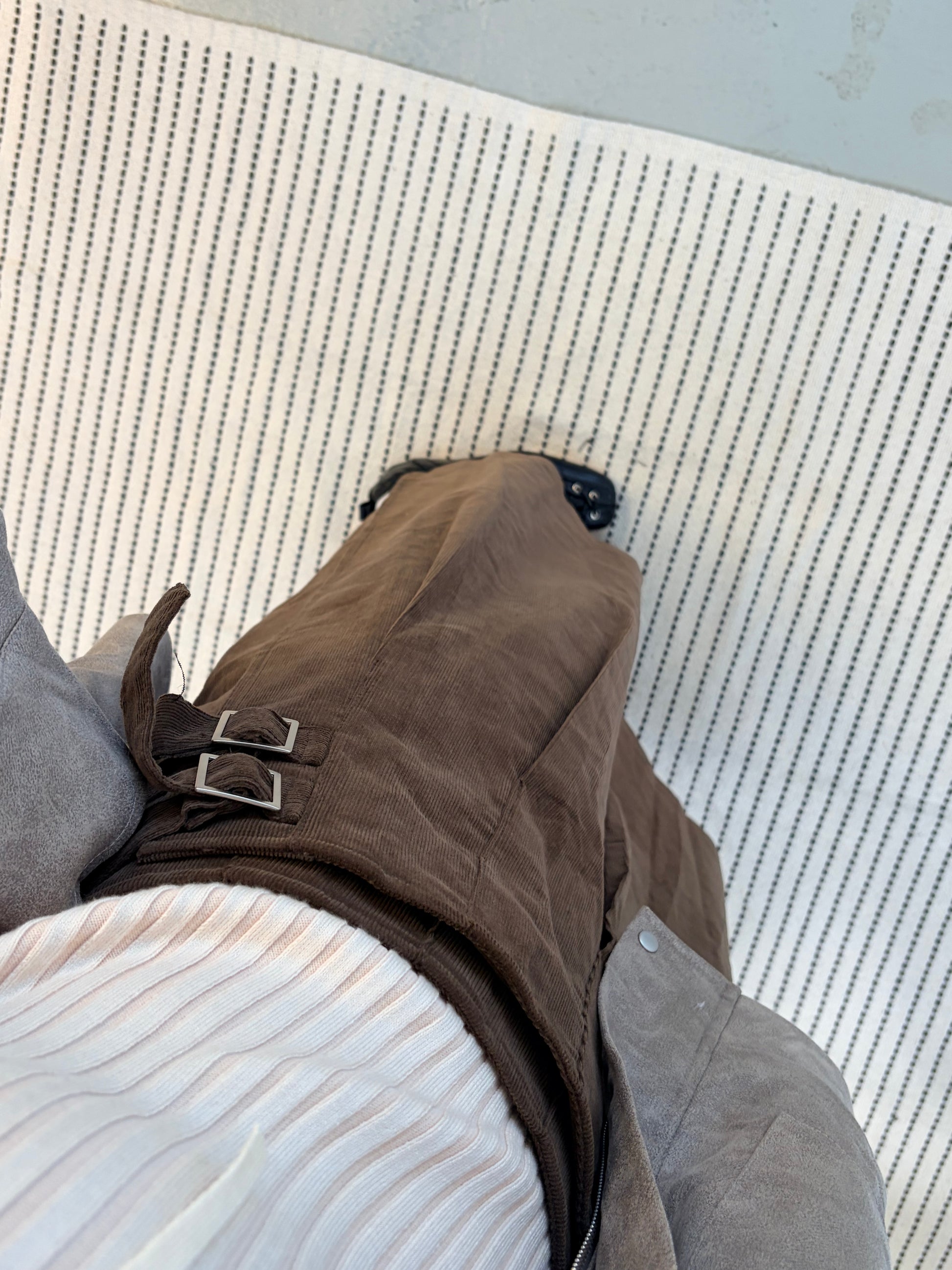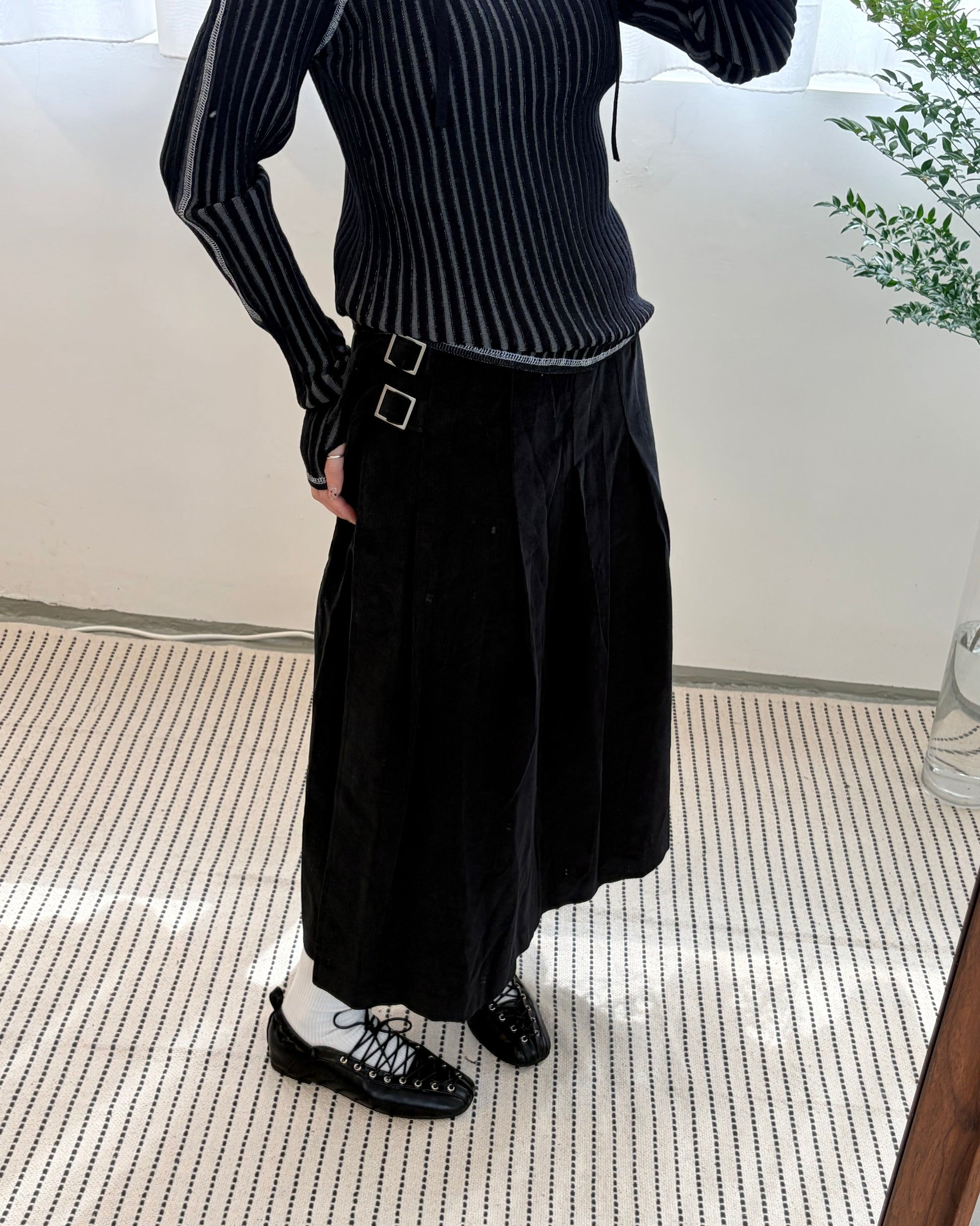SK134- 燈芯絨一片打褶裙 | Brown | Black