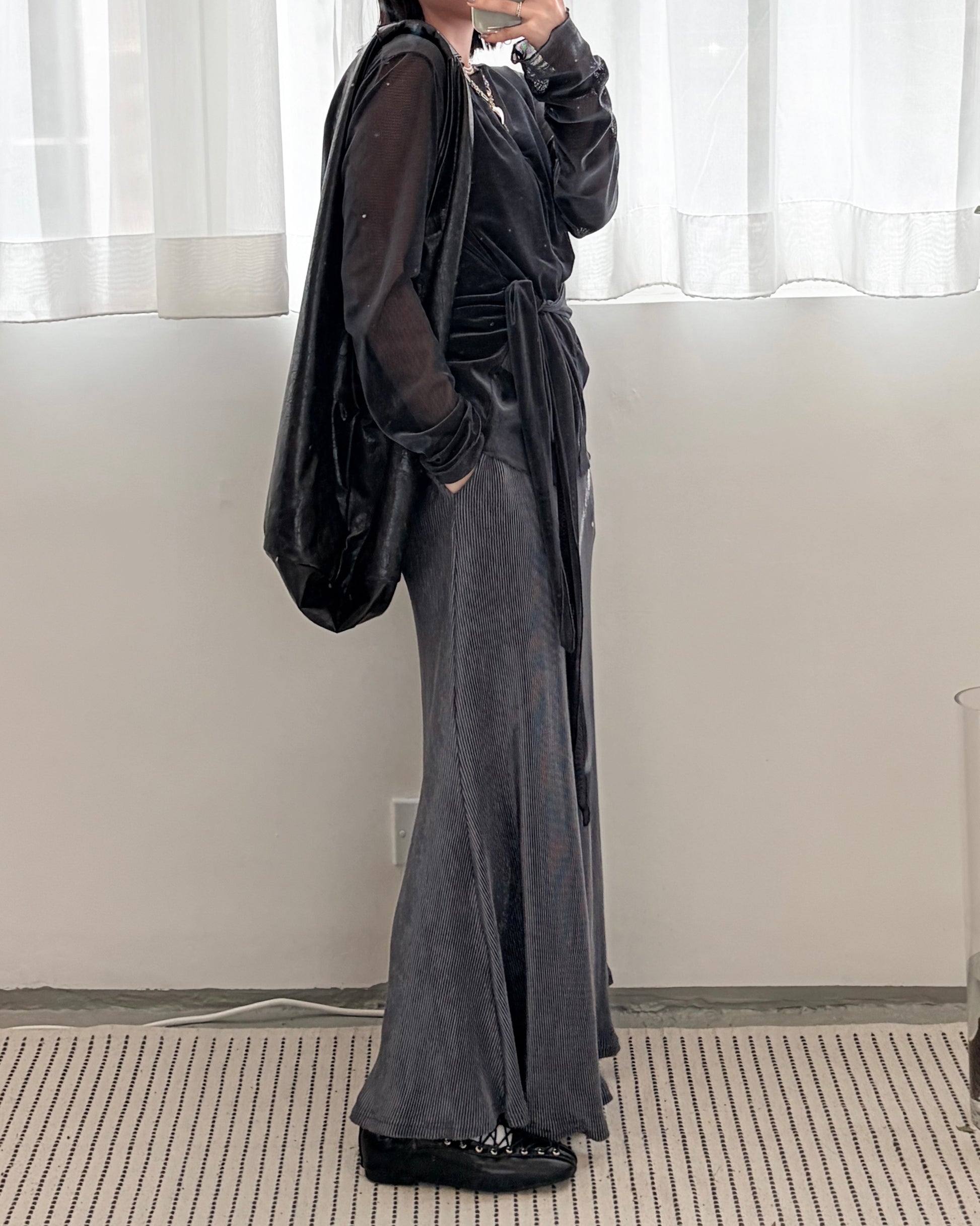 SK136- 絲絨Pocket Skirt |Light Grey | Grey | Red wine | Black