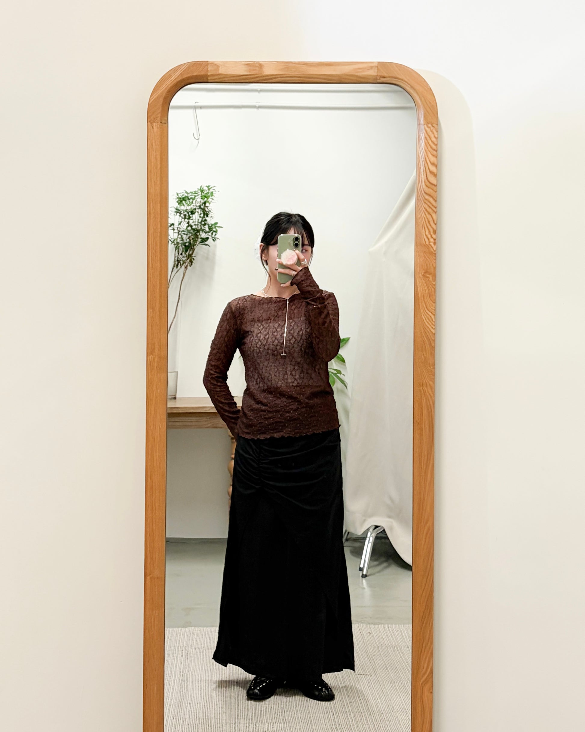 SK143- layer斜Cut打褶長裙 | Grey | Black
