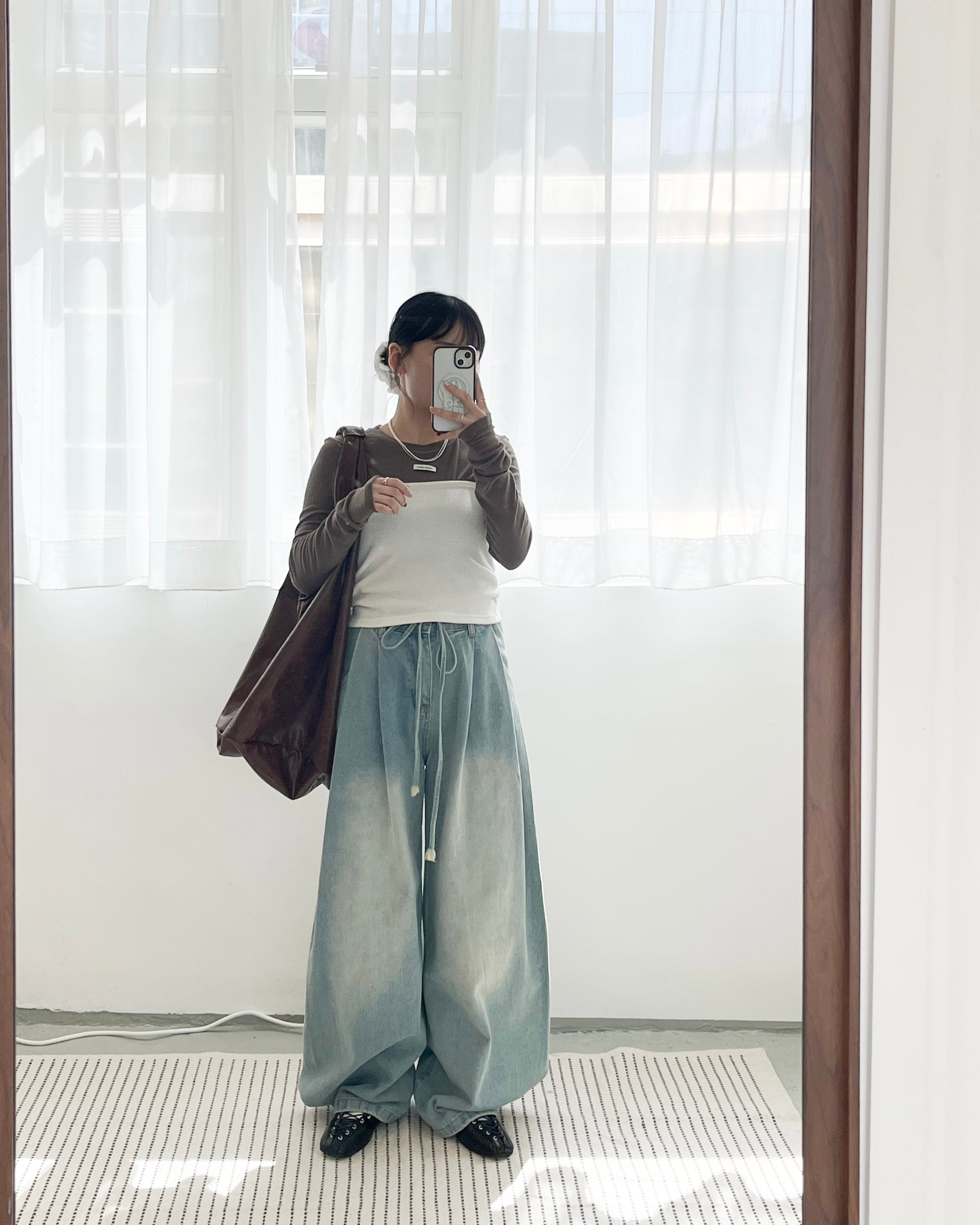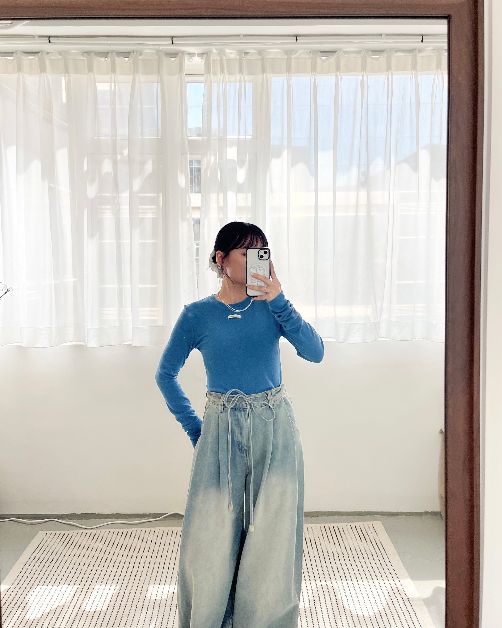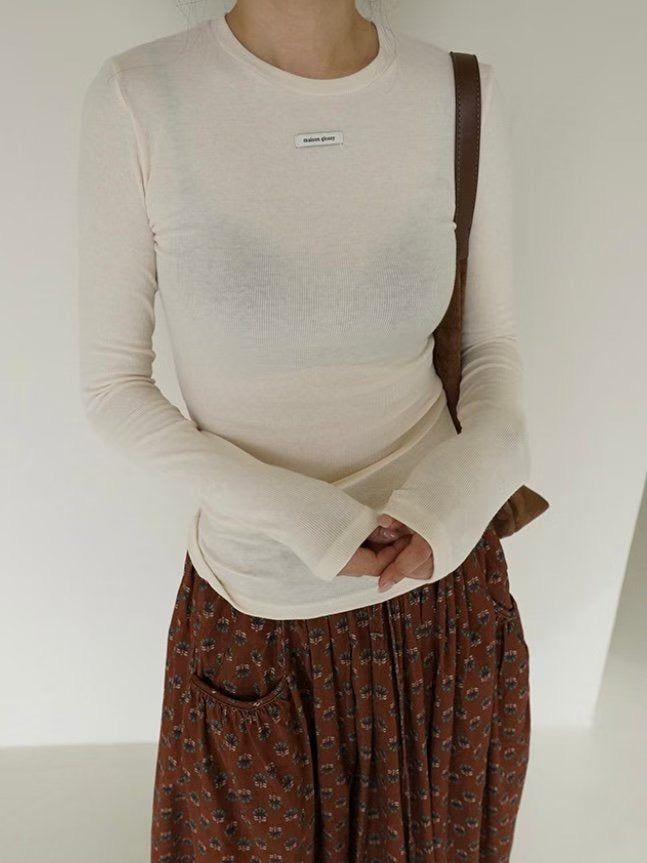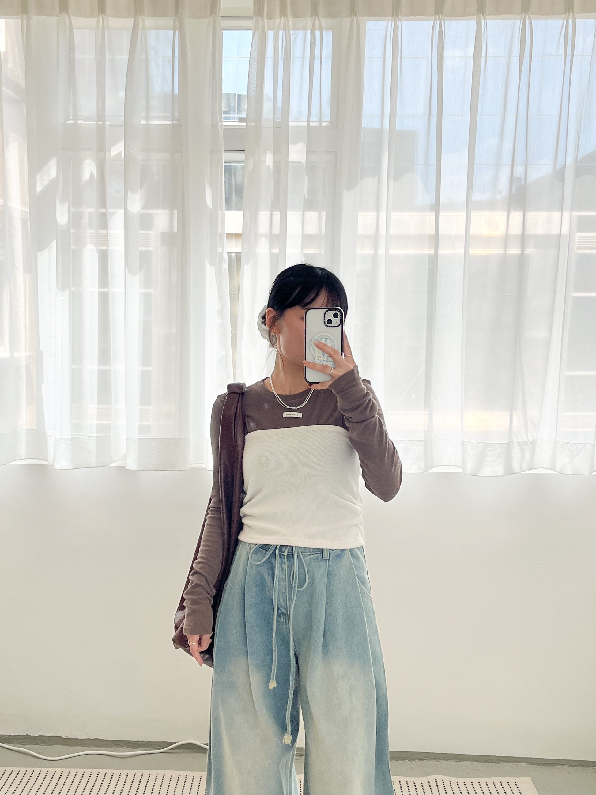 TP674- Logo Tag Cotton Top | Ivory | Grey | Blue | Brown | Black