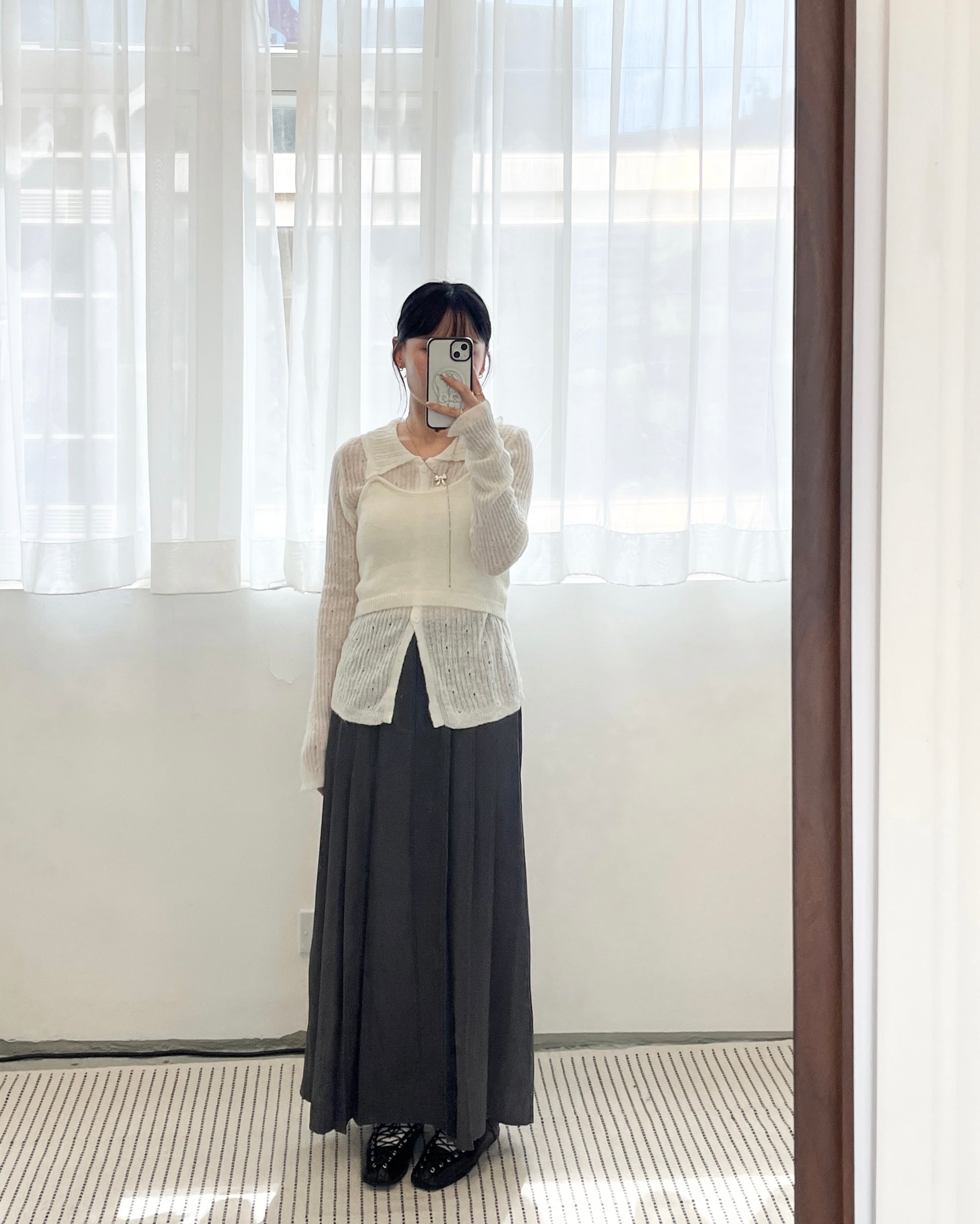 TP675- Knitwear Vest Set Top | Ivory | Grey