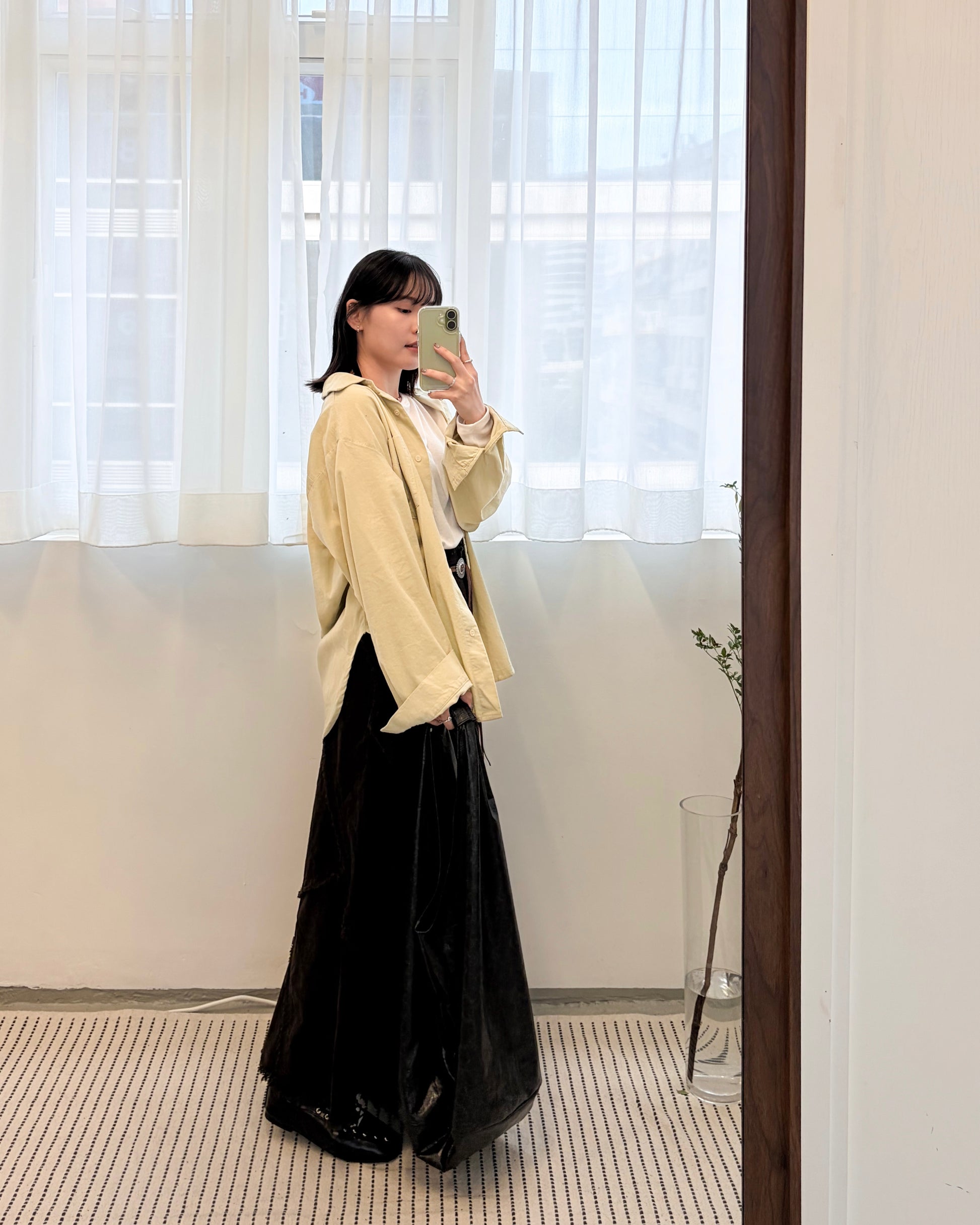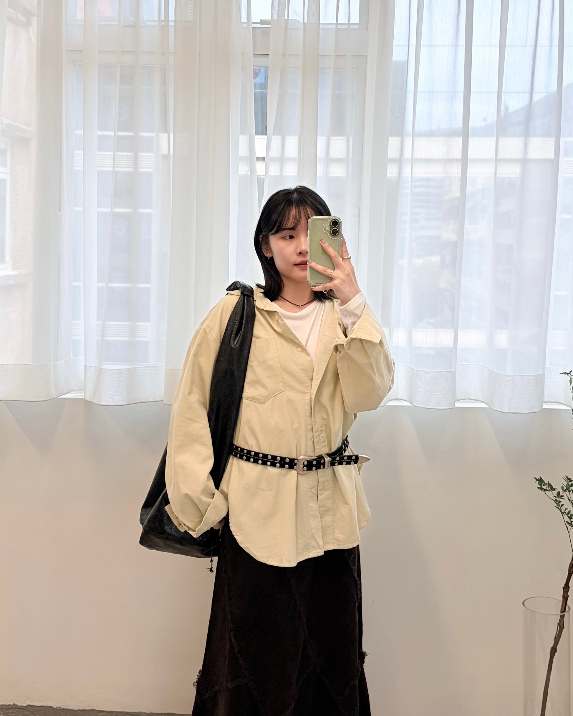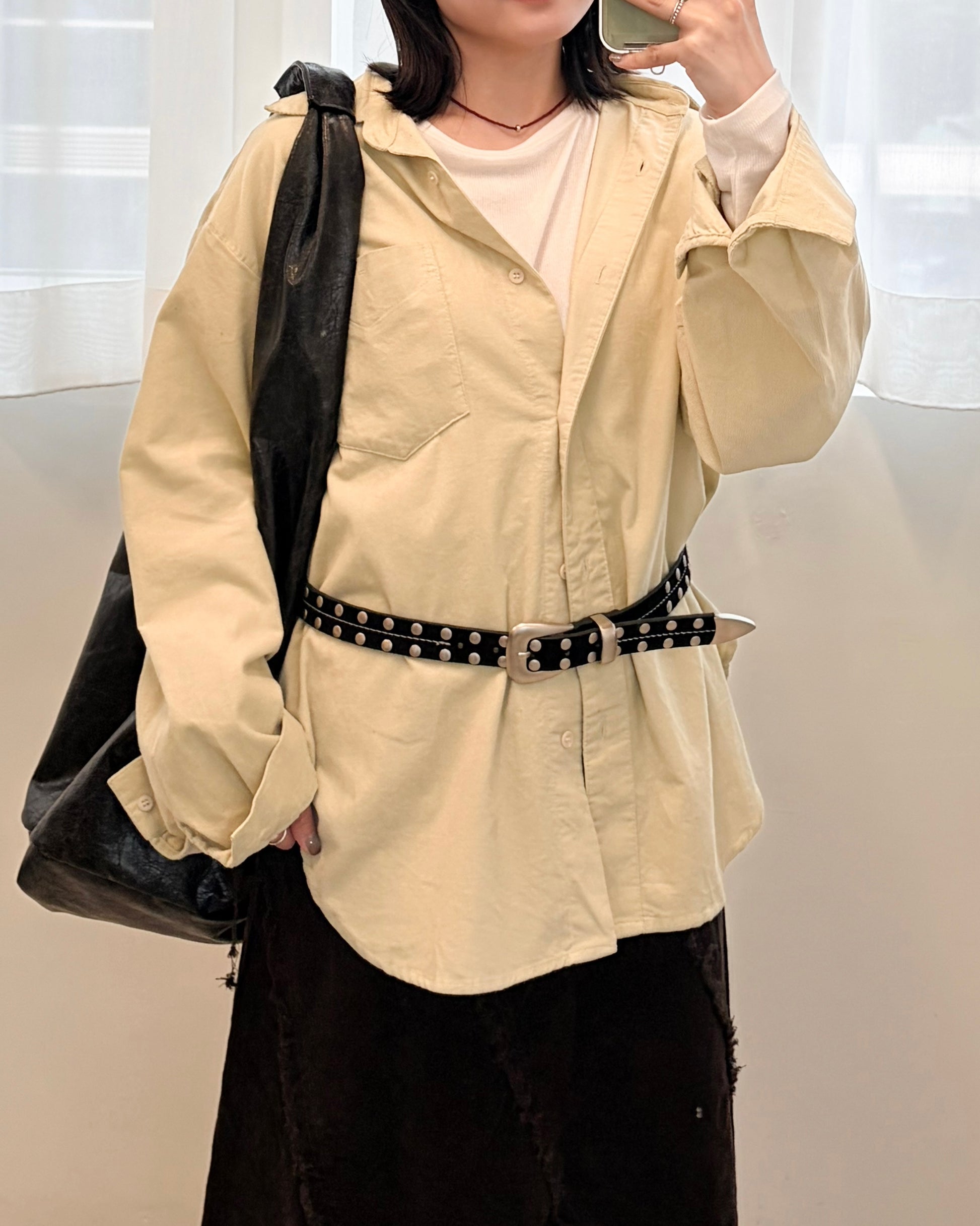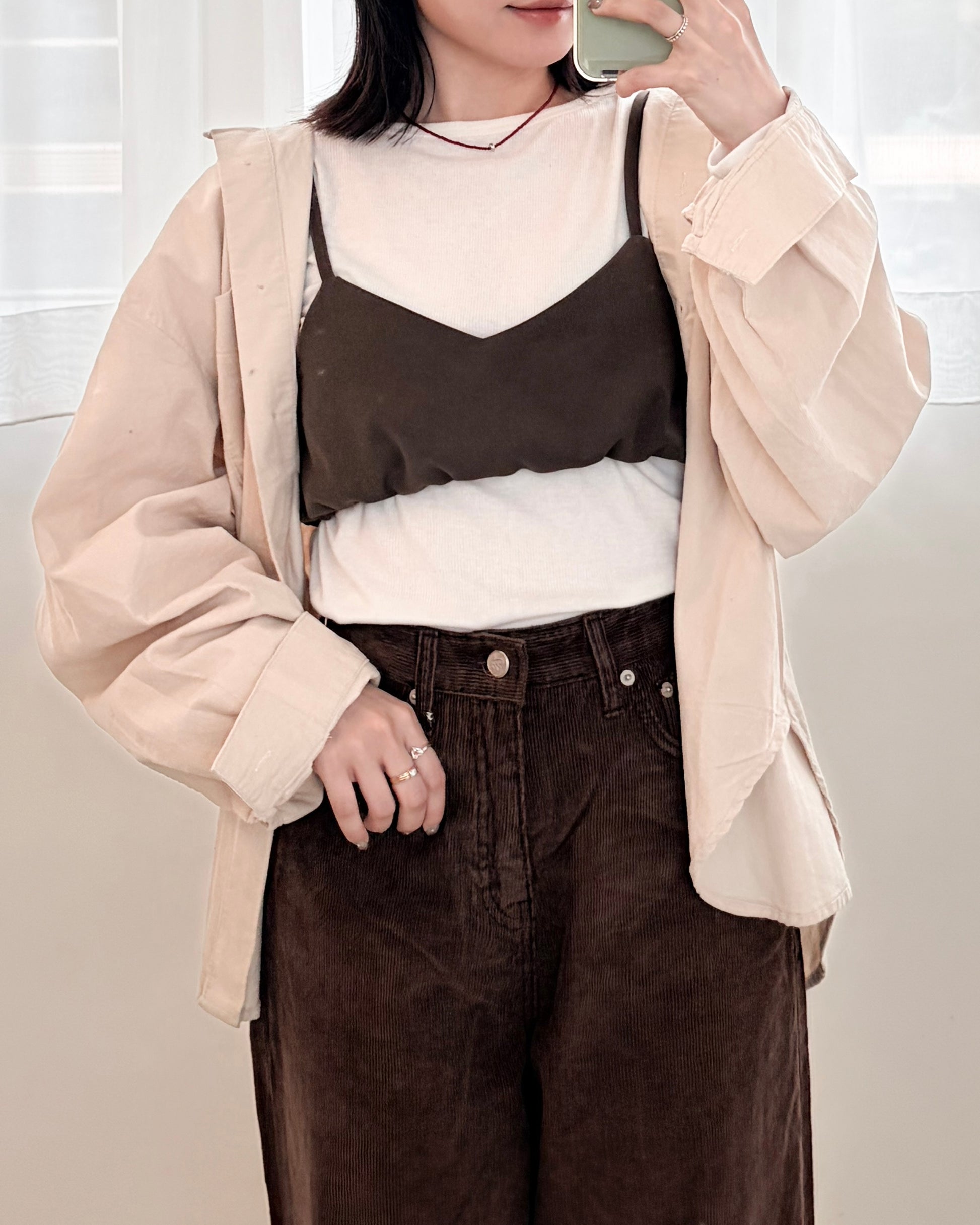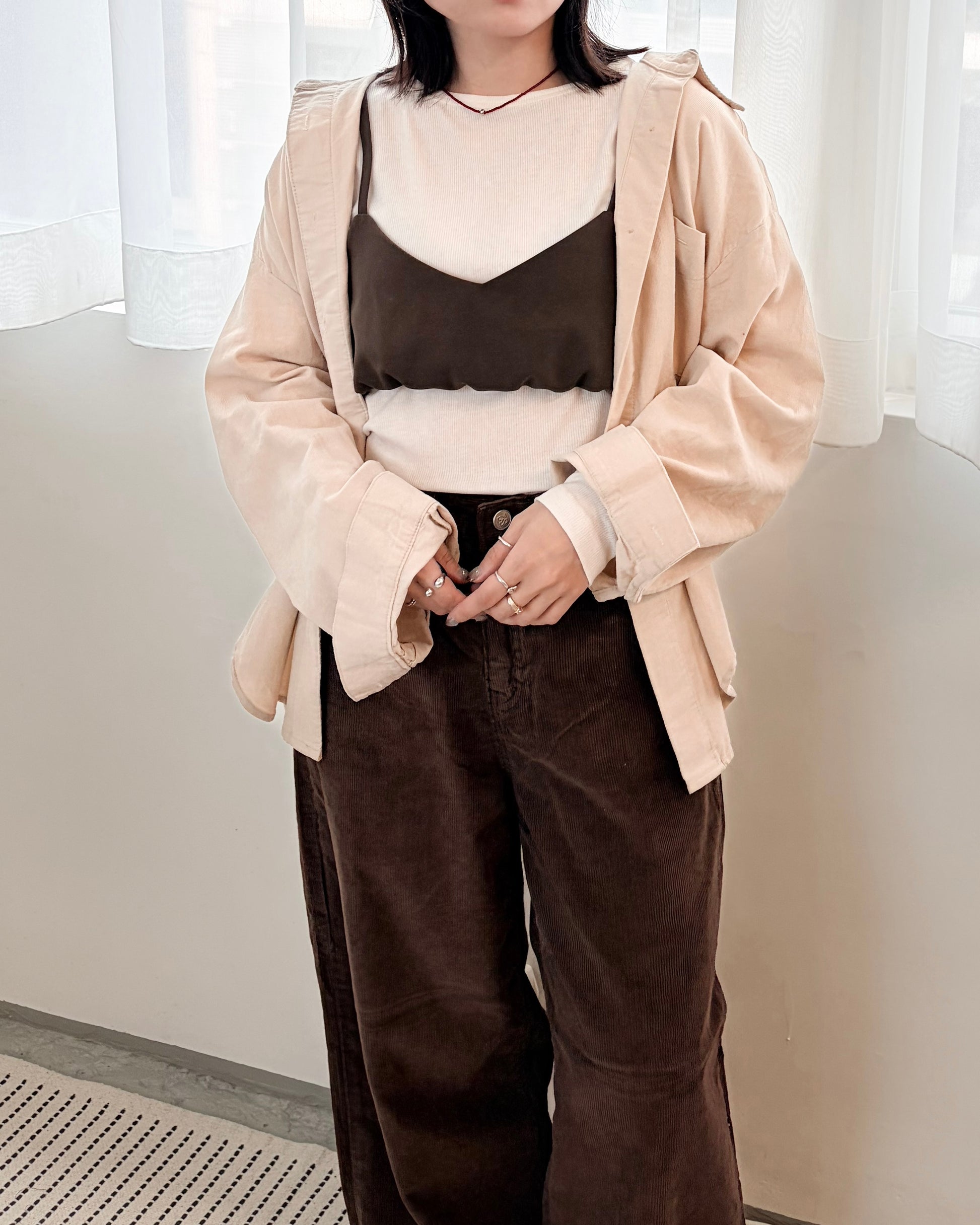 TP696- 三色薄燈芯絨恤衫 | Ivory | Light Green | Brown