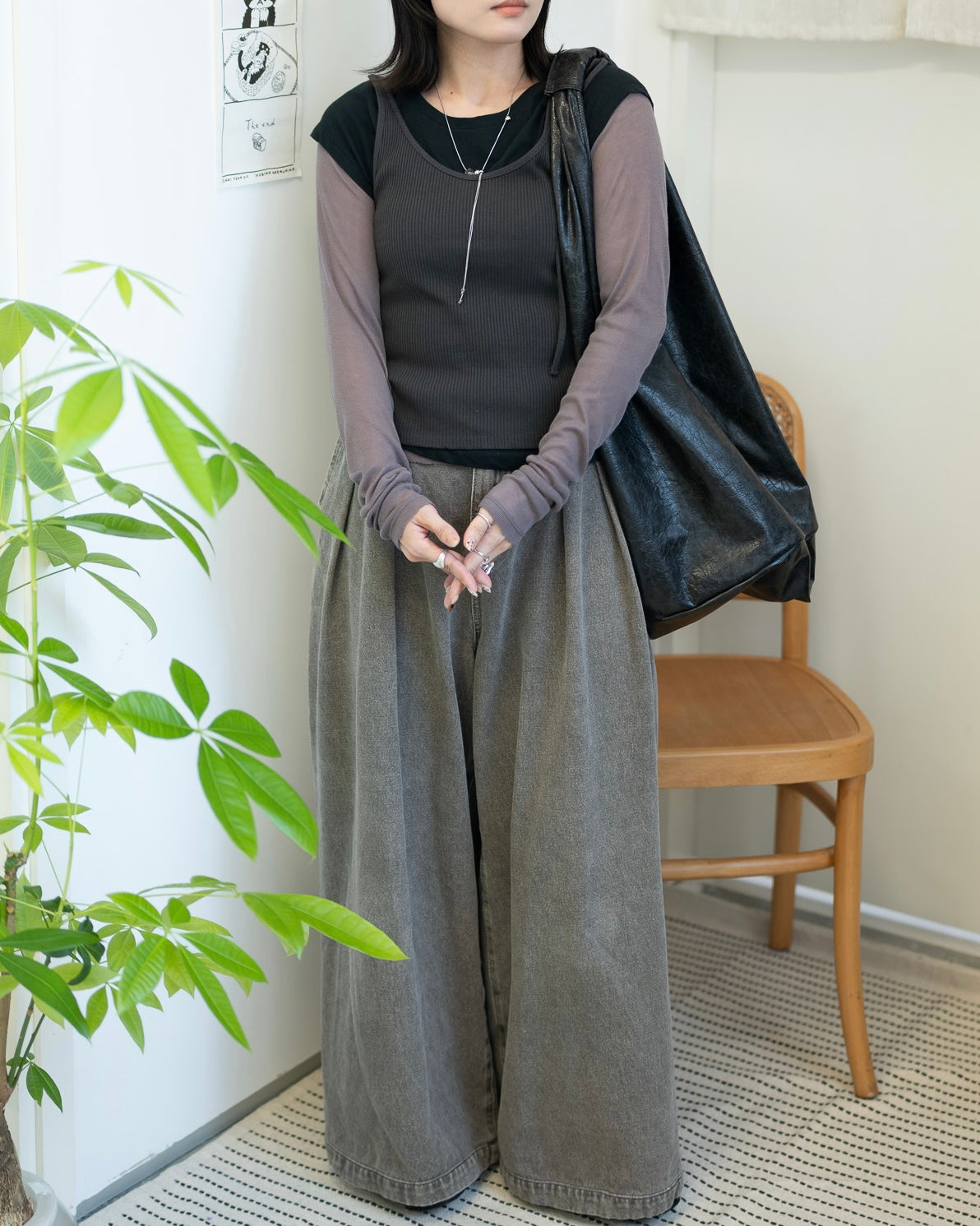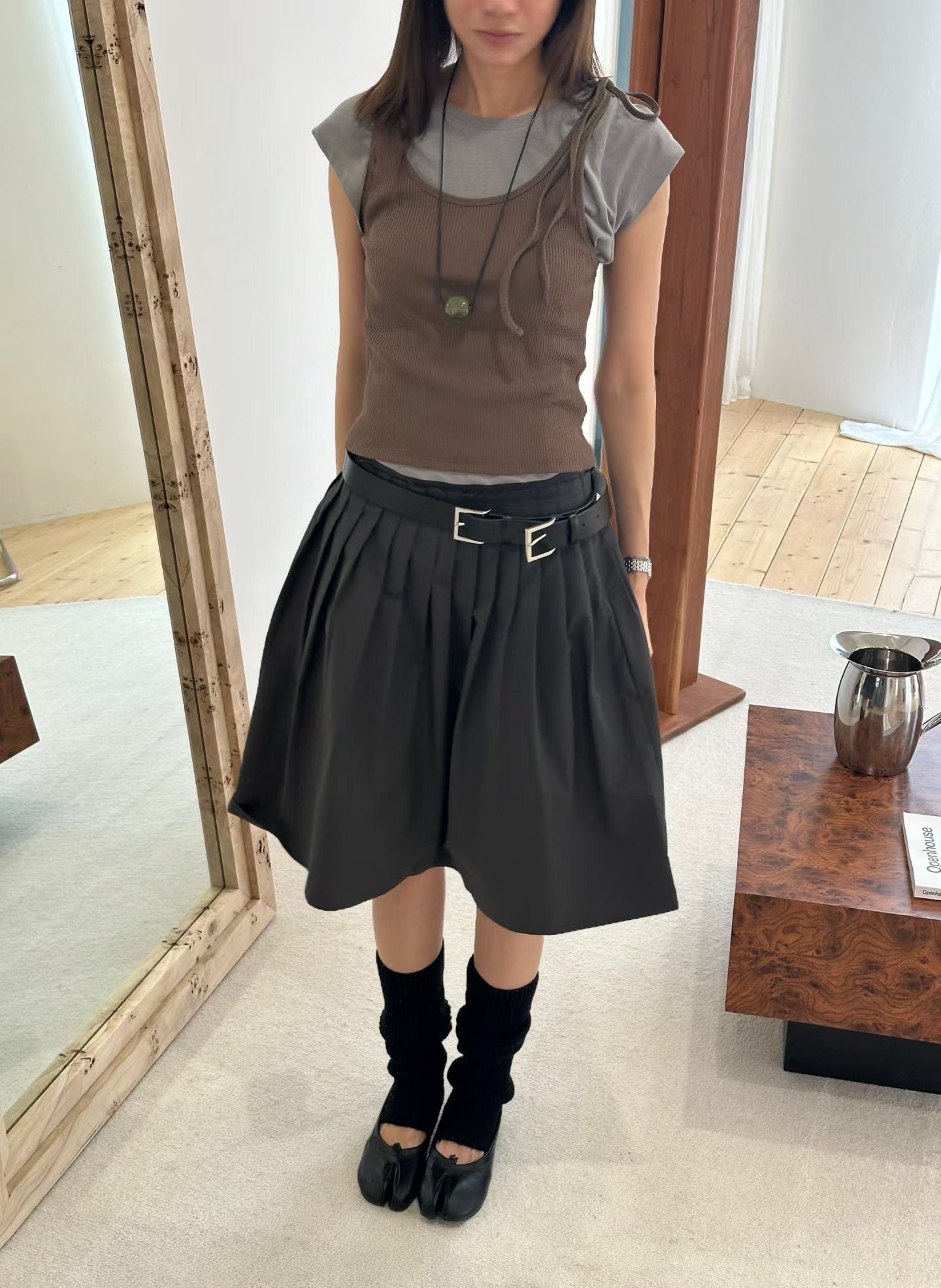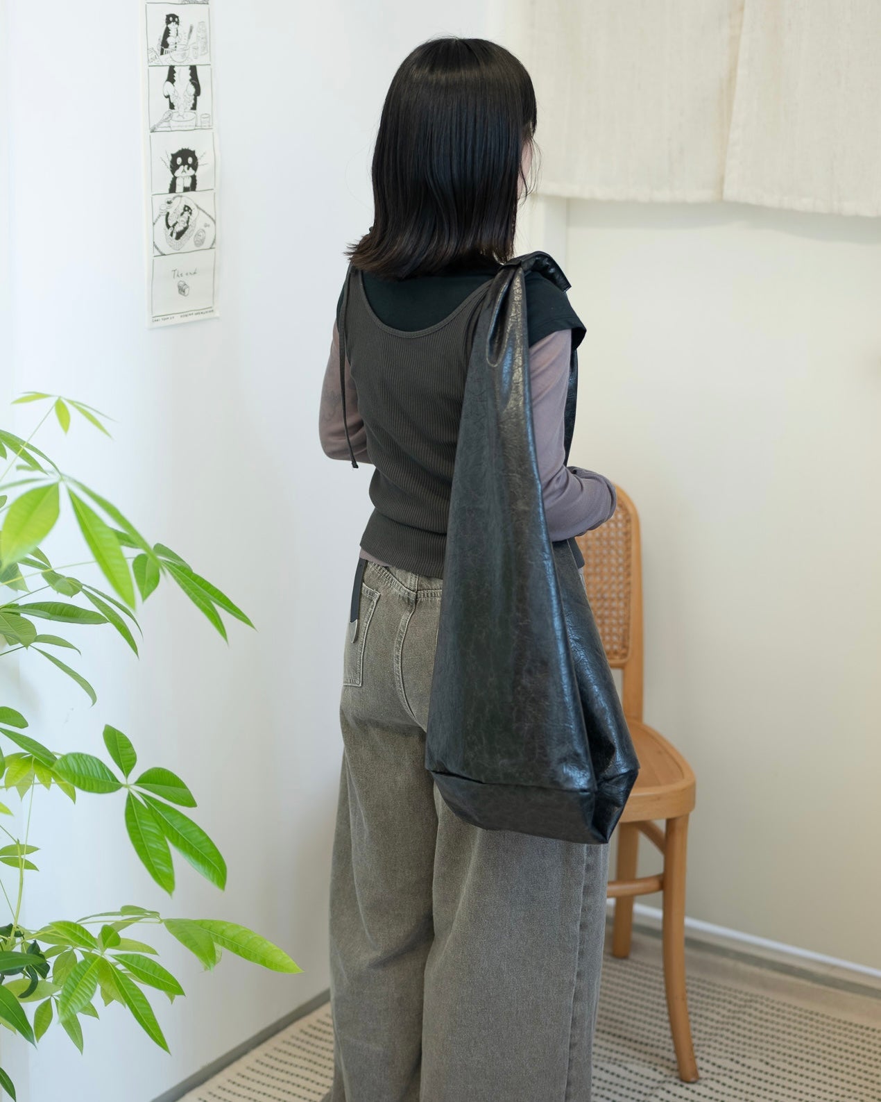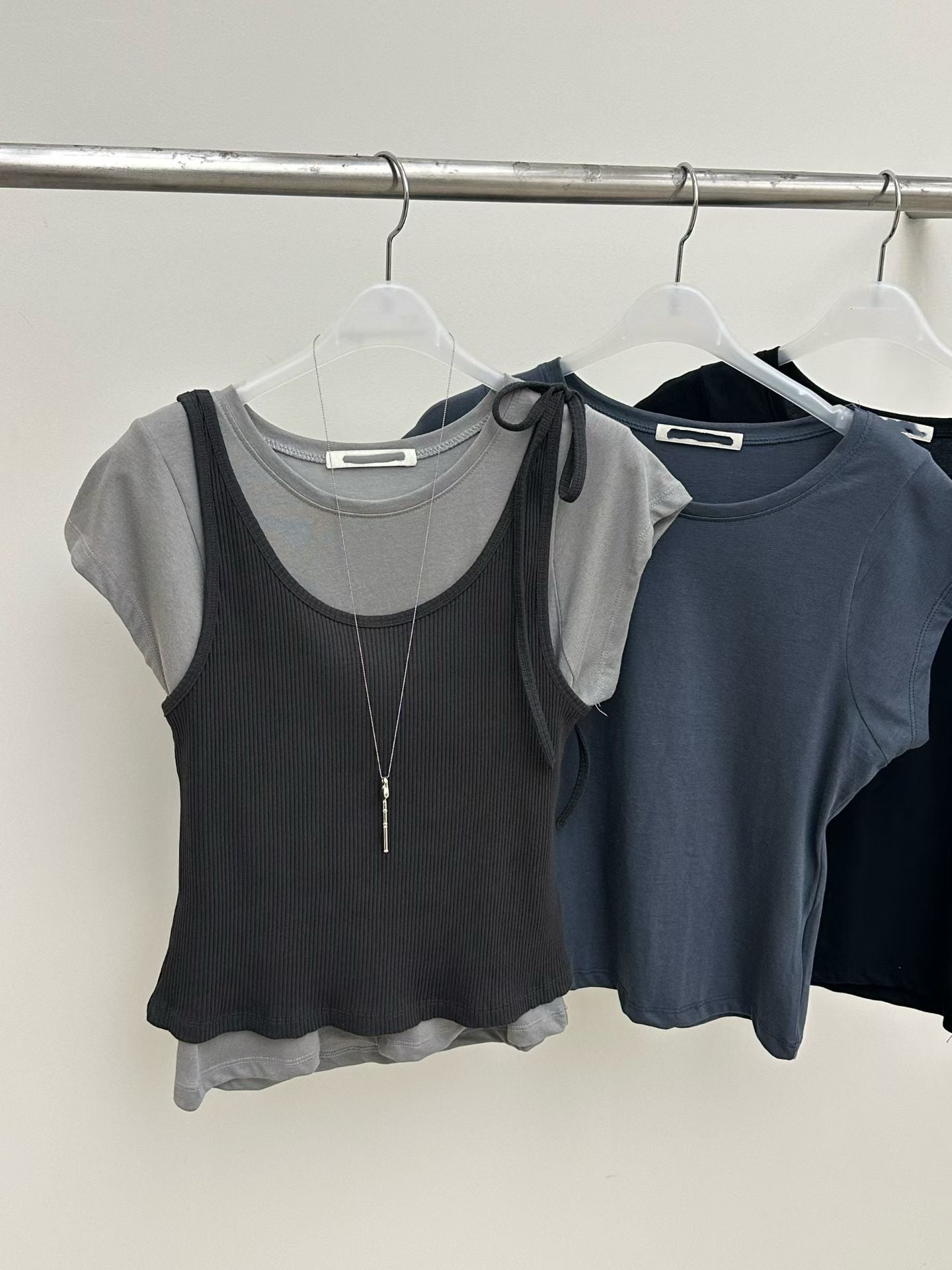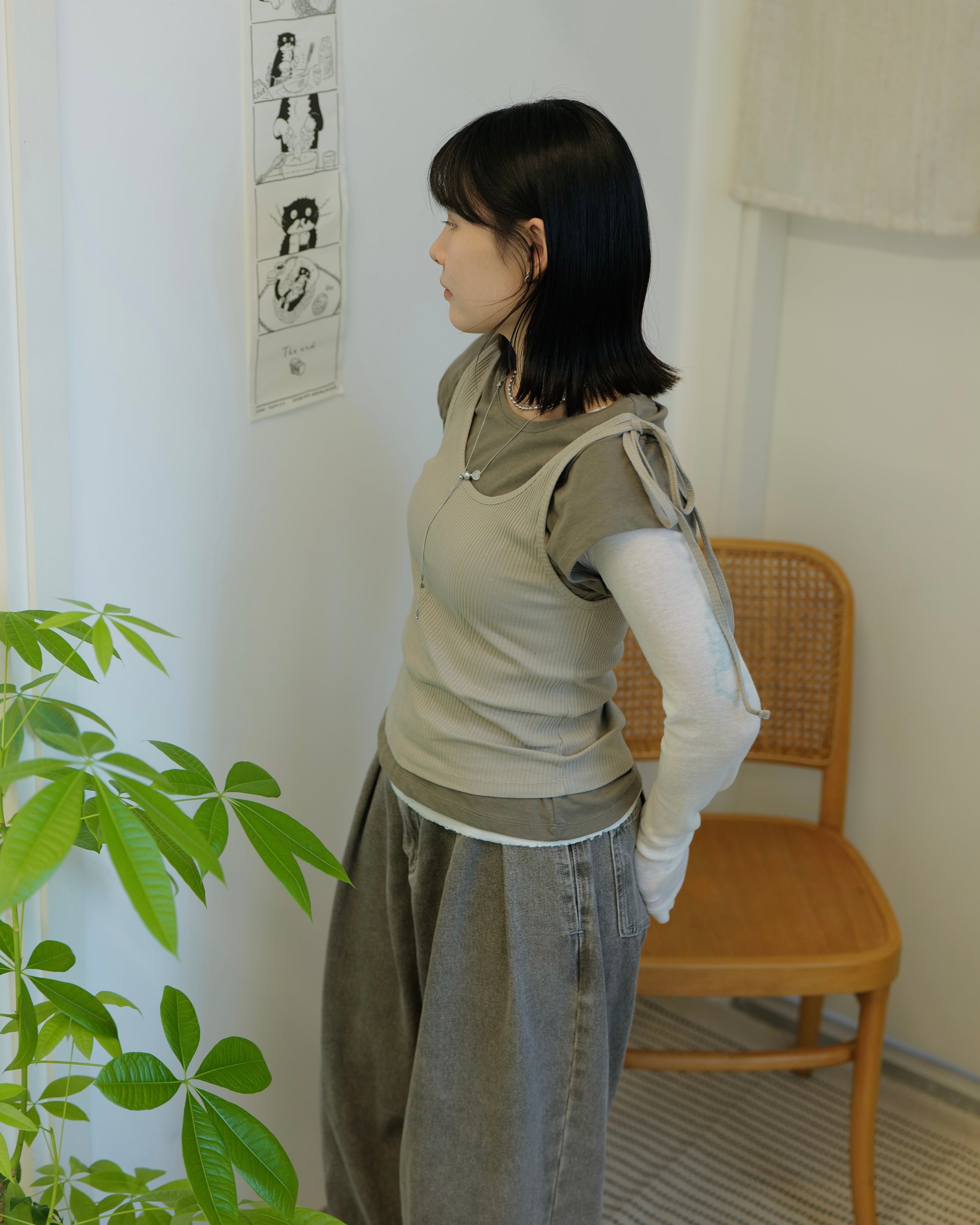 TP676- Side Ribbon Vest | Milk tea | Brown | Black
