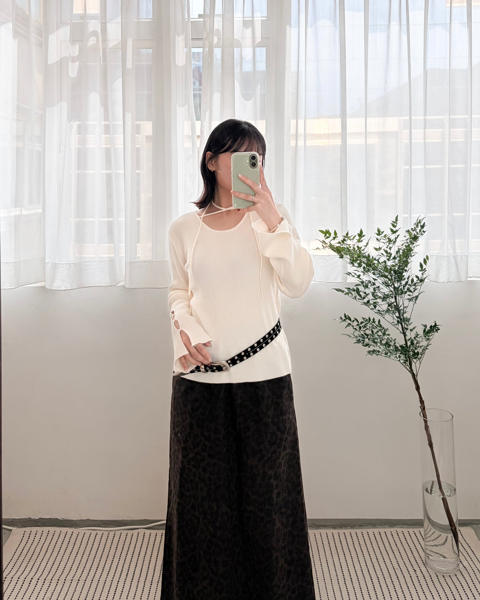 TP682- Neck String ribbon Knit Top | Ivory | Blue | Black