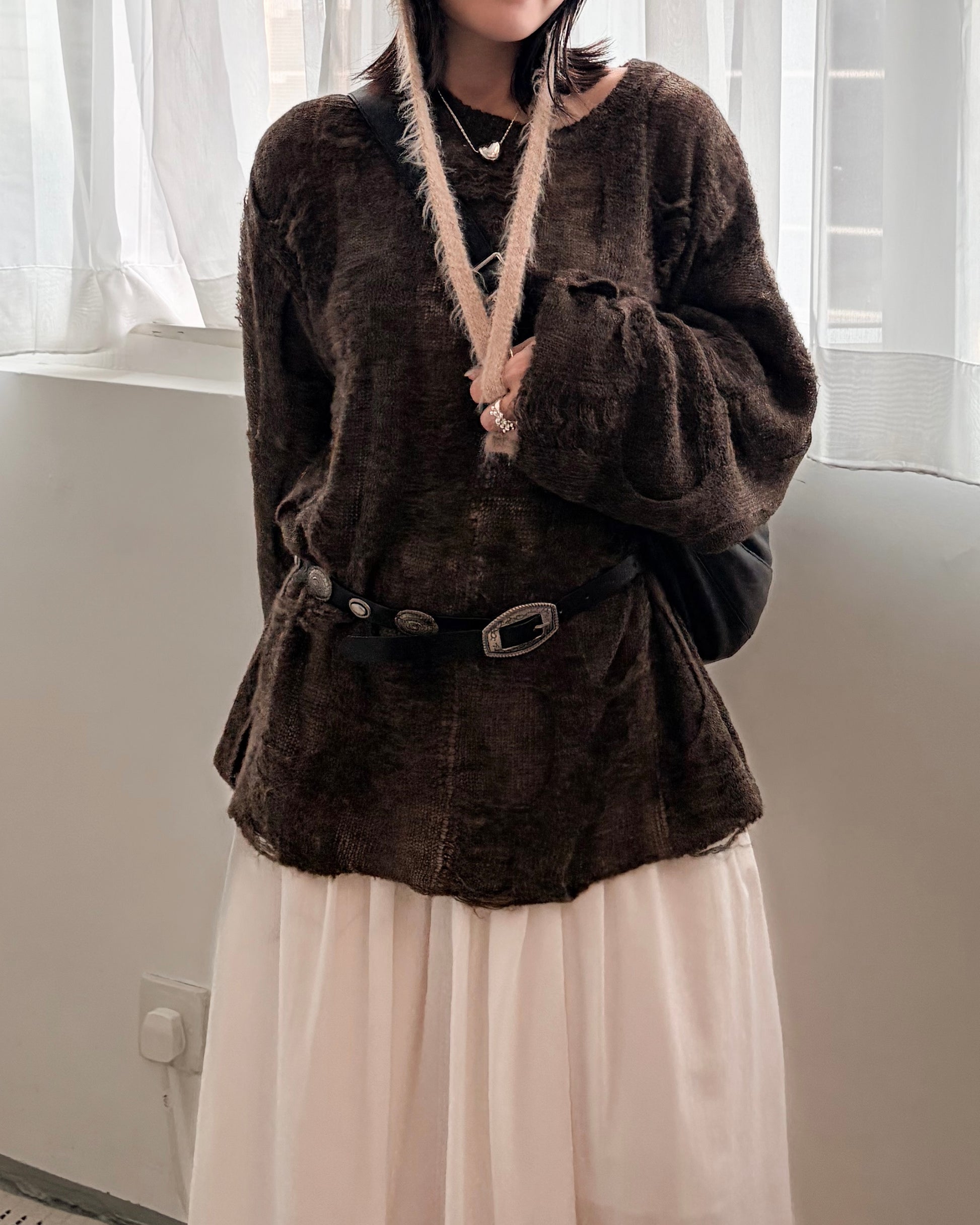 TP717- 馬海毛破爛Mesh Top | White | Brown | Black