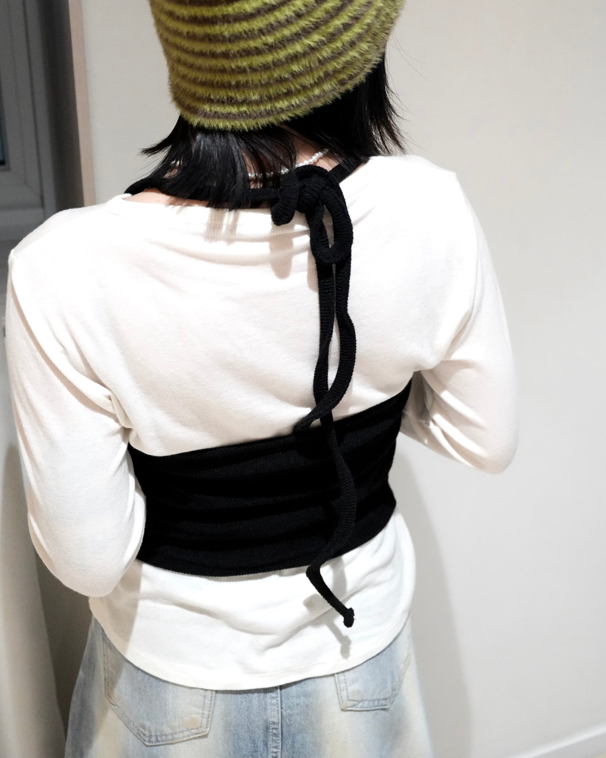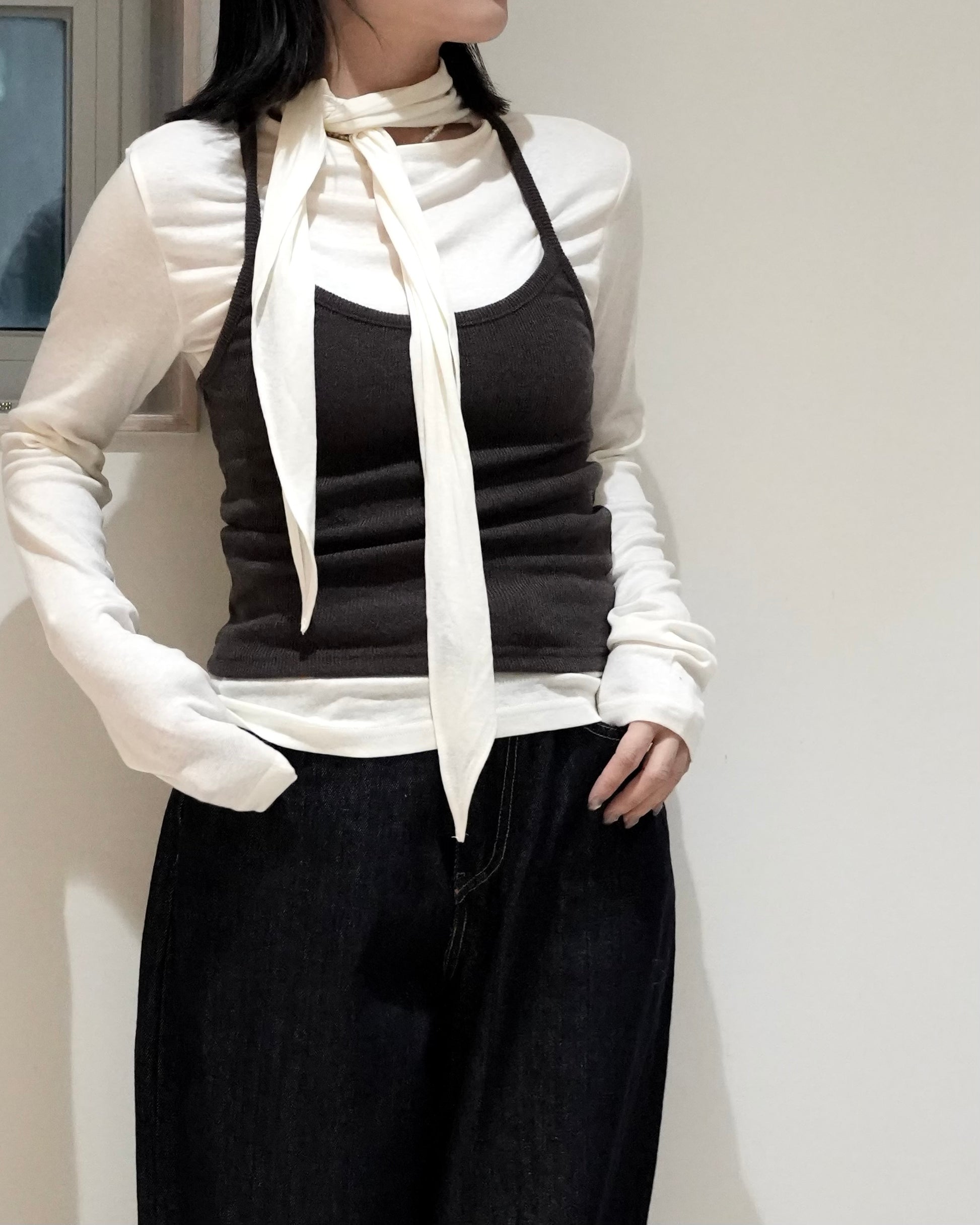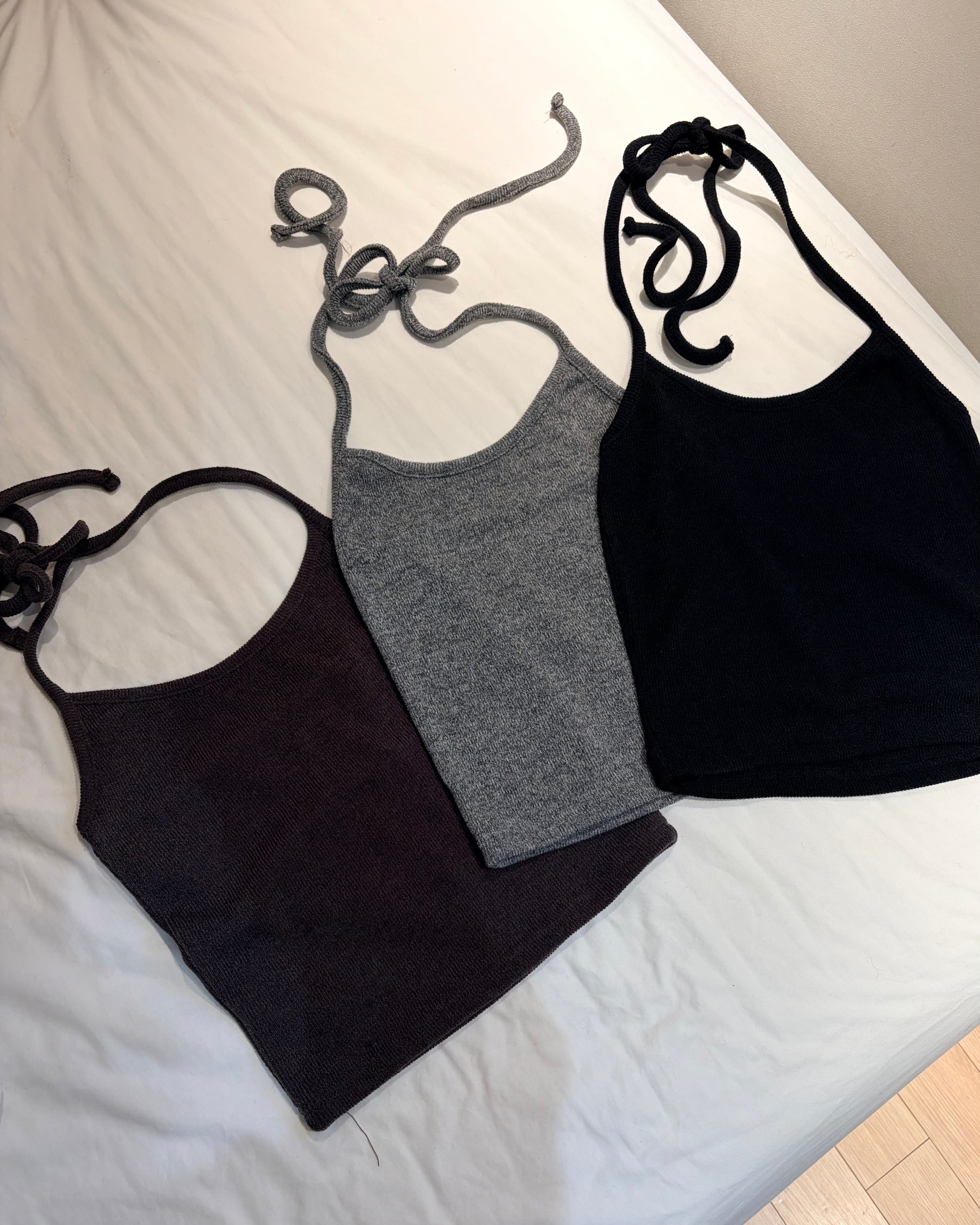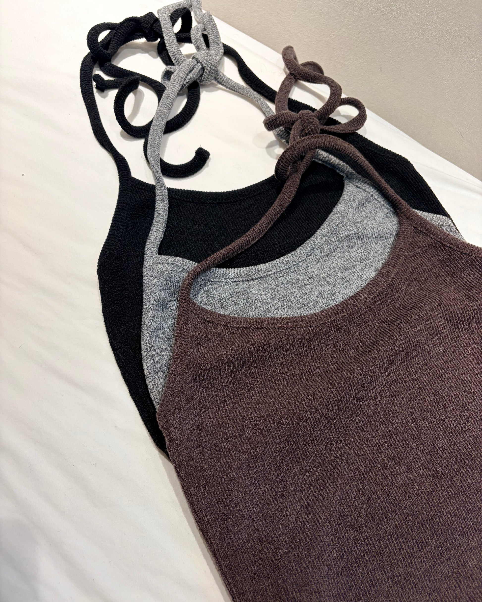 TP700- 直紋後綁吊帶背心 | Grey | Brown | Black