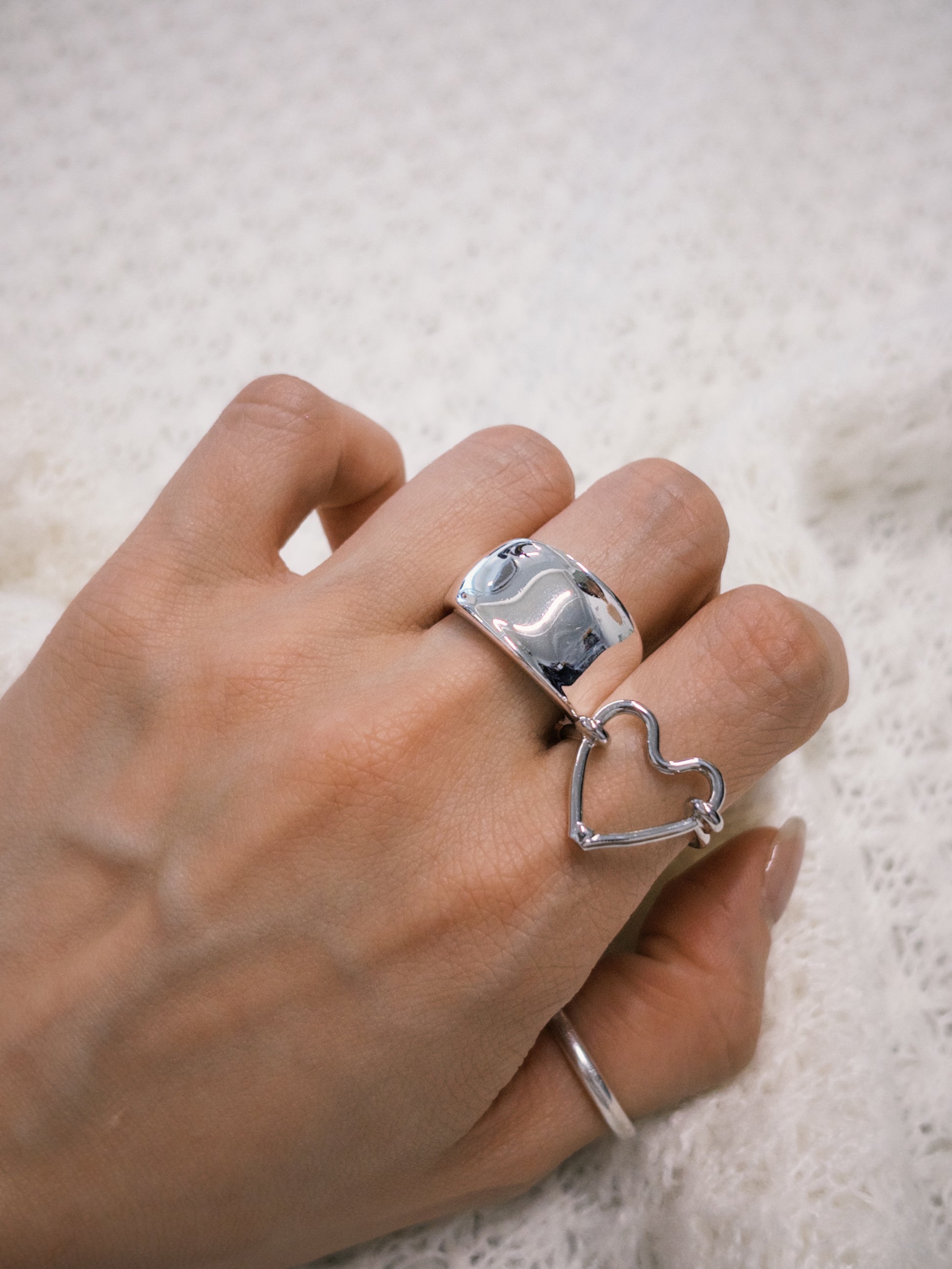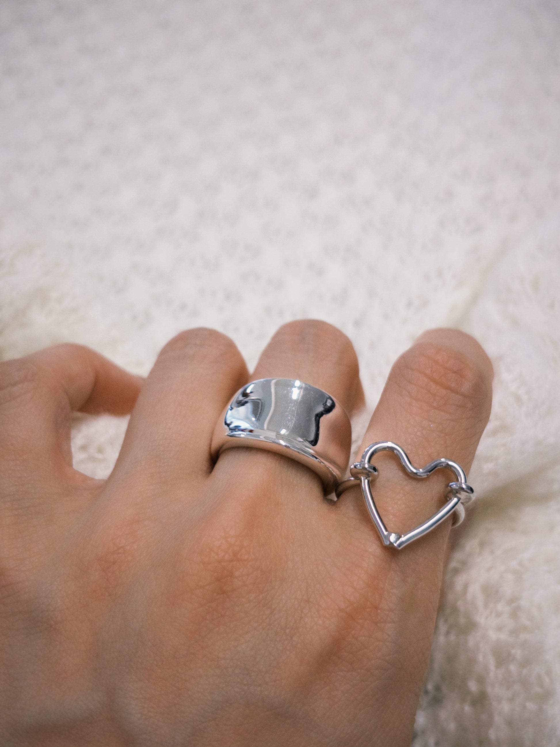 AC299- 鍍銀日光亮面粗介指