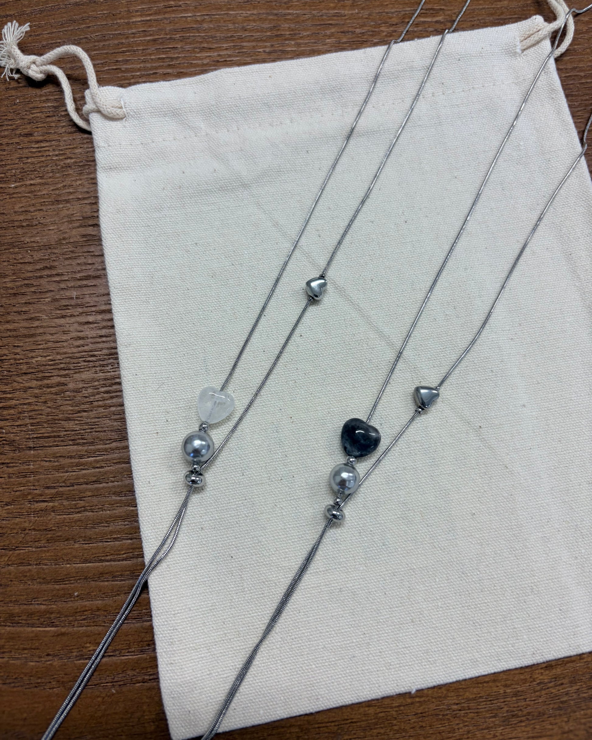 AC270- 活動心心頸鏈 | White | Dark Grey ( 醫療鋼 )