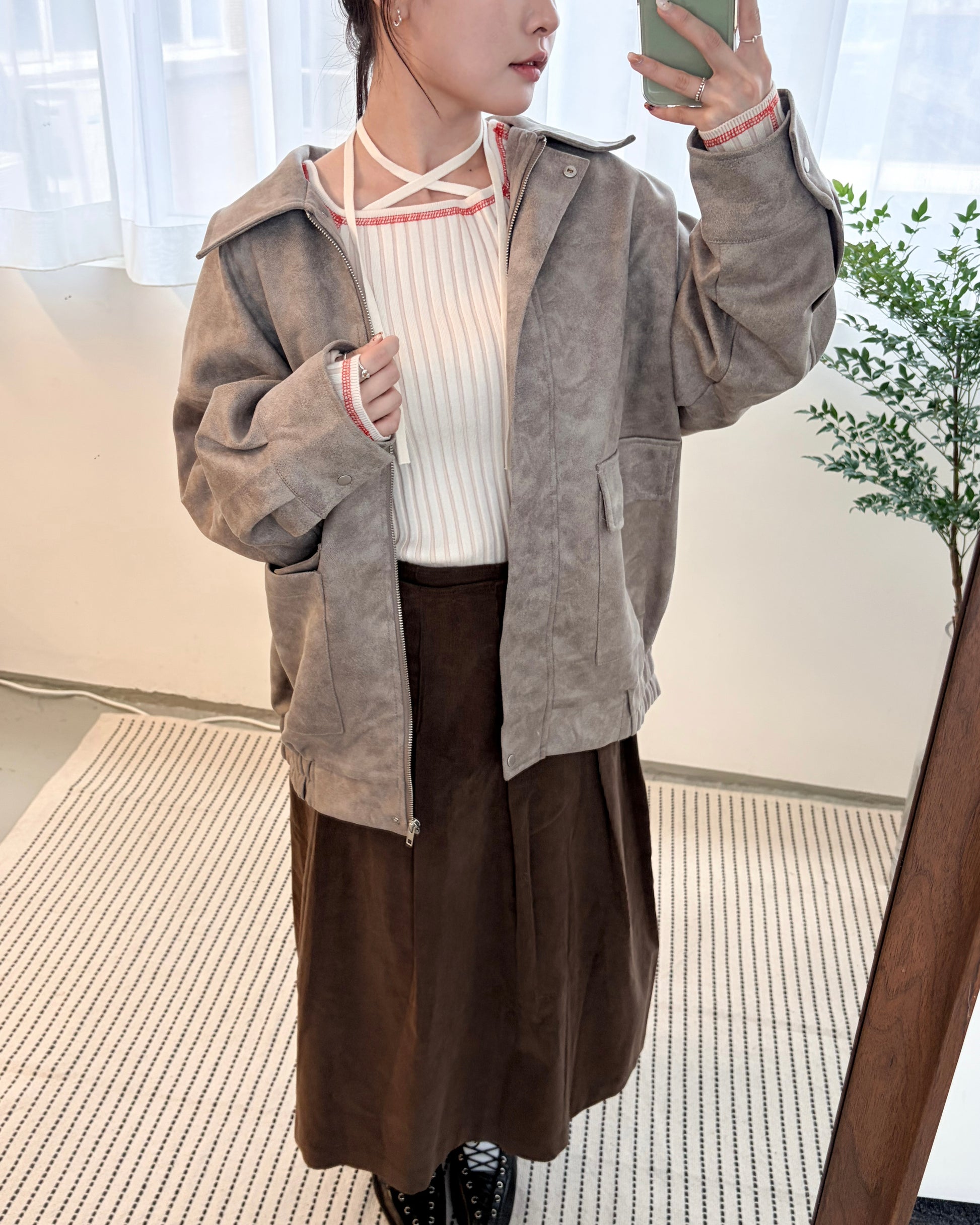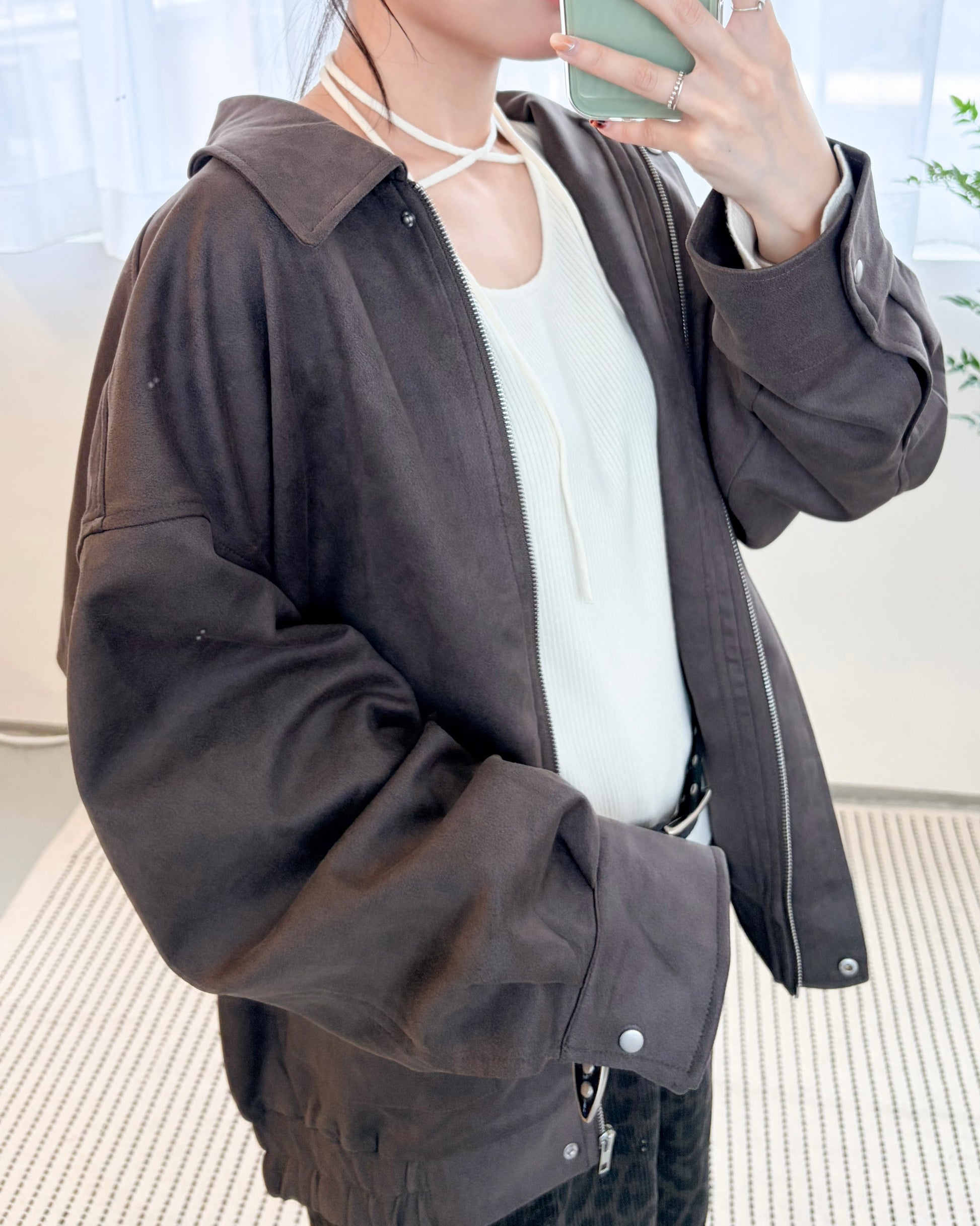 JK42- Unwash Collar Blouse Jacket | Milk Tea | Grey | Brown