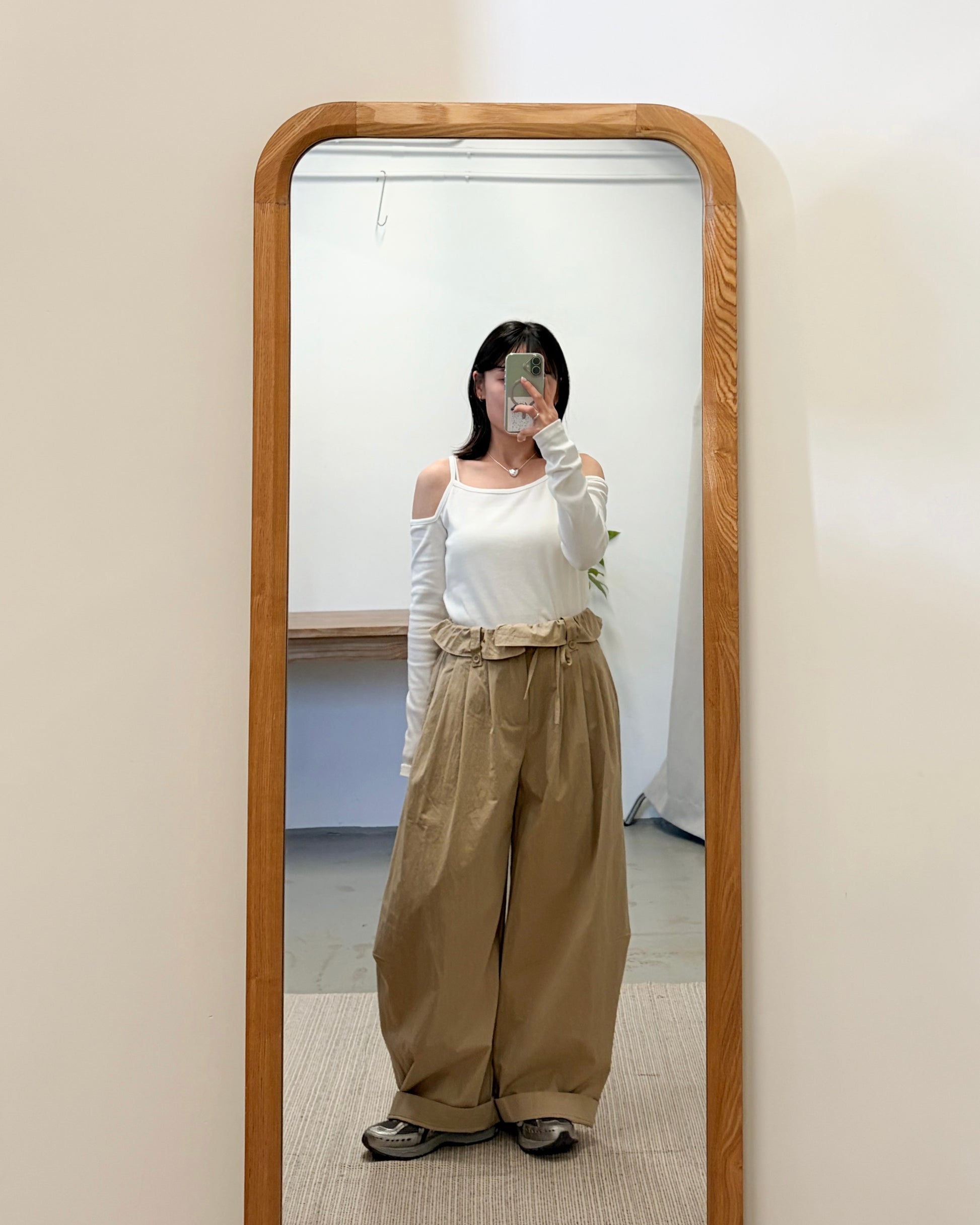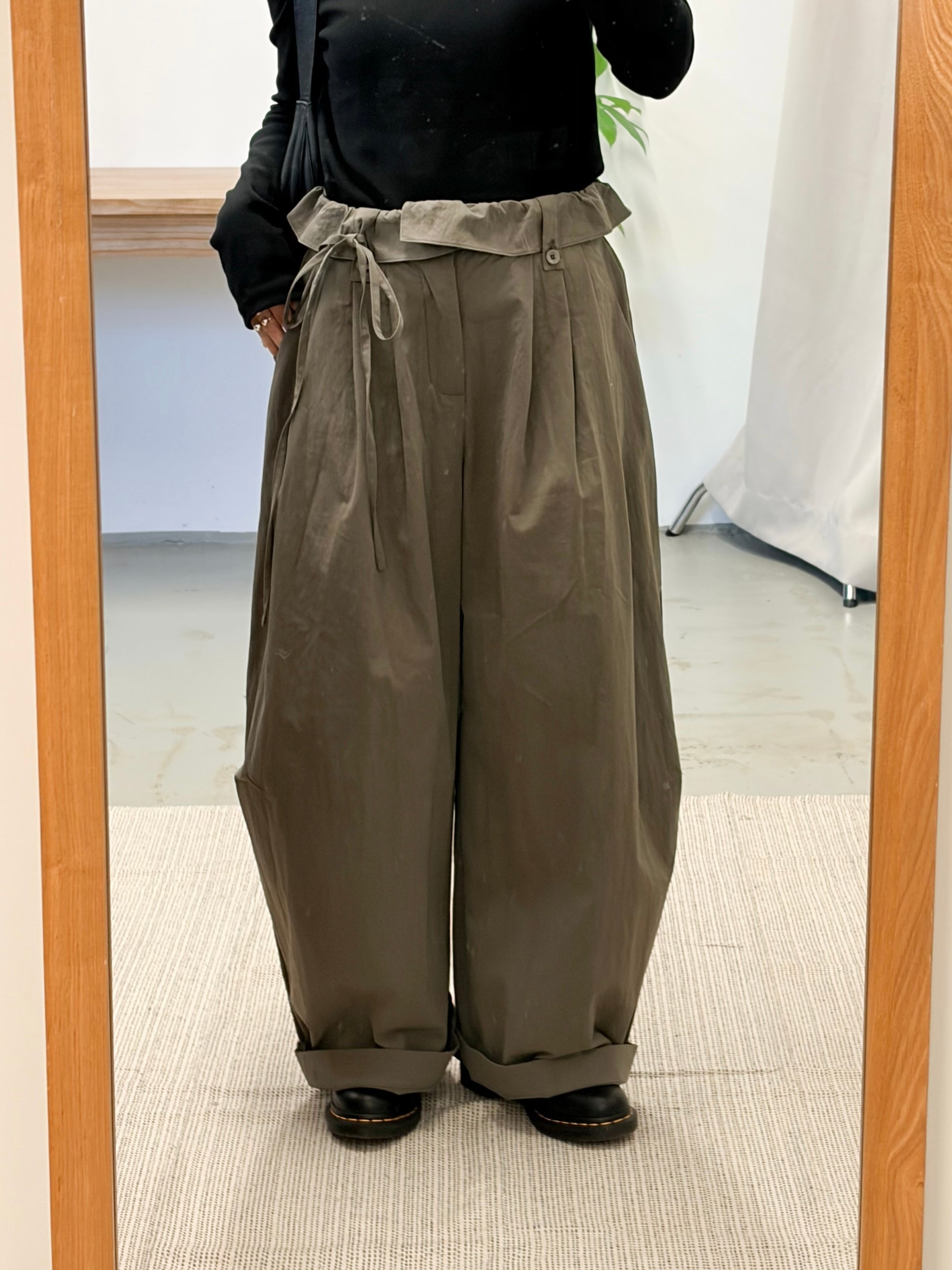 PT105- Ruffle Wide Pants | Beige | Khaki