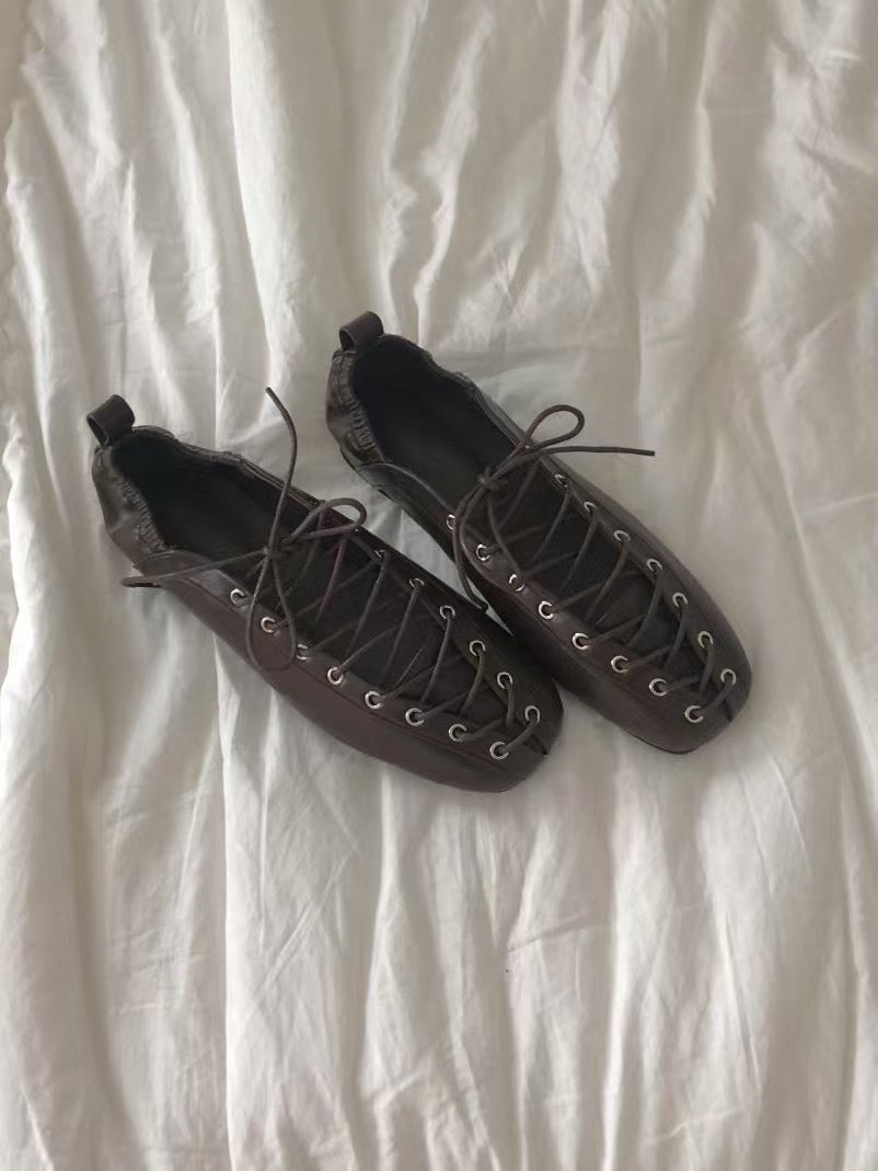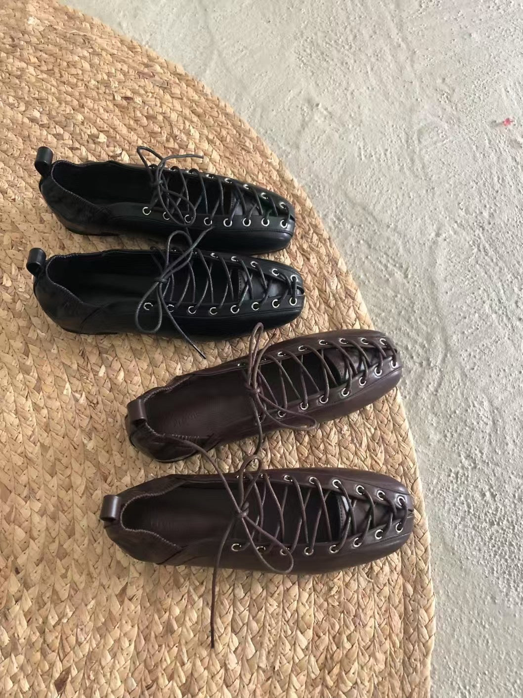 SH10- 方頭芭蕾鏤空交叉鞋 | Brown | Black