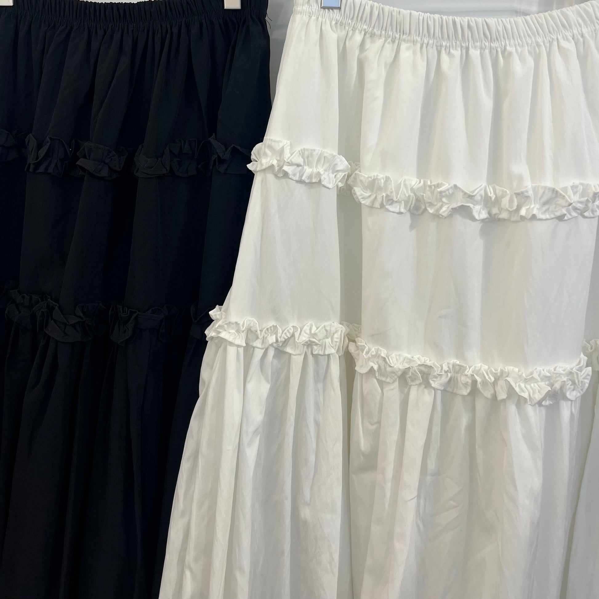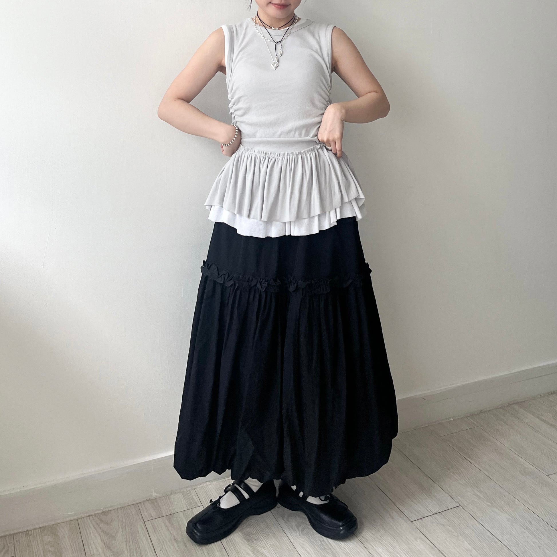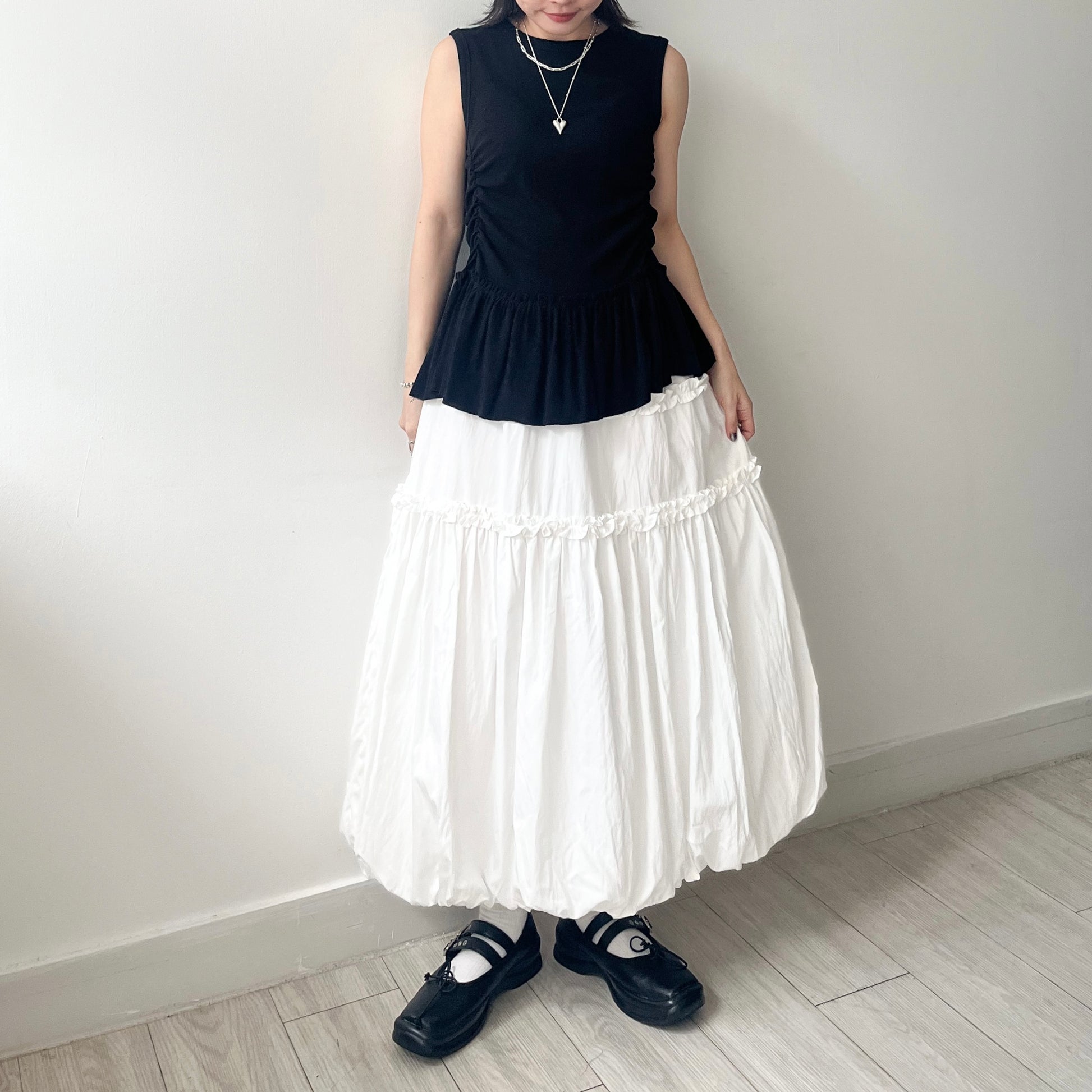 SK122- Ruffle Balloon Skirt | White | Black