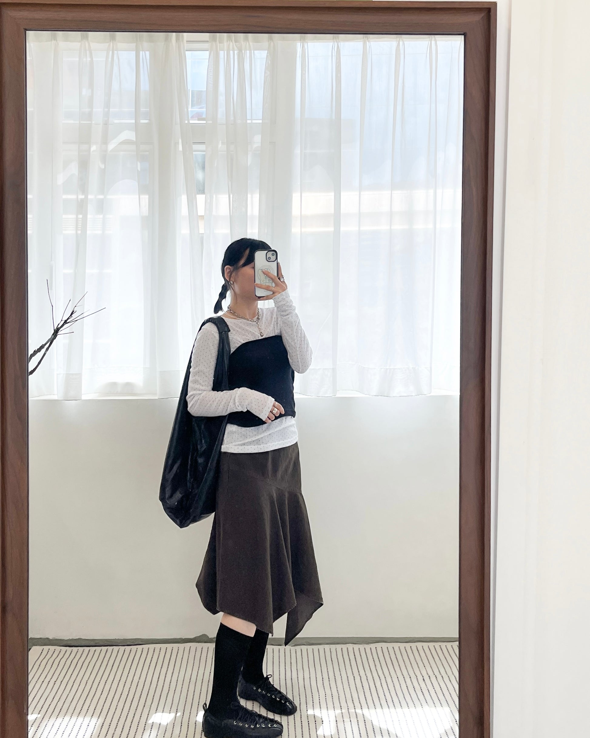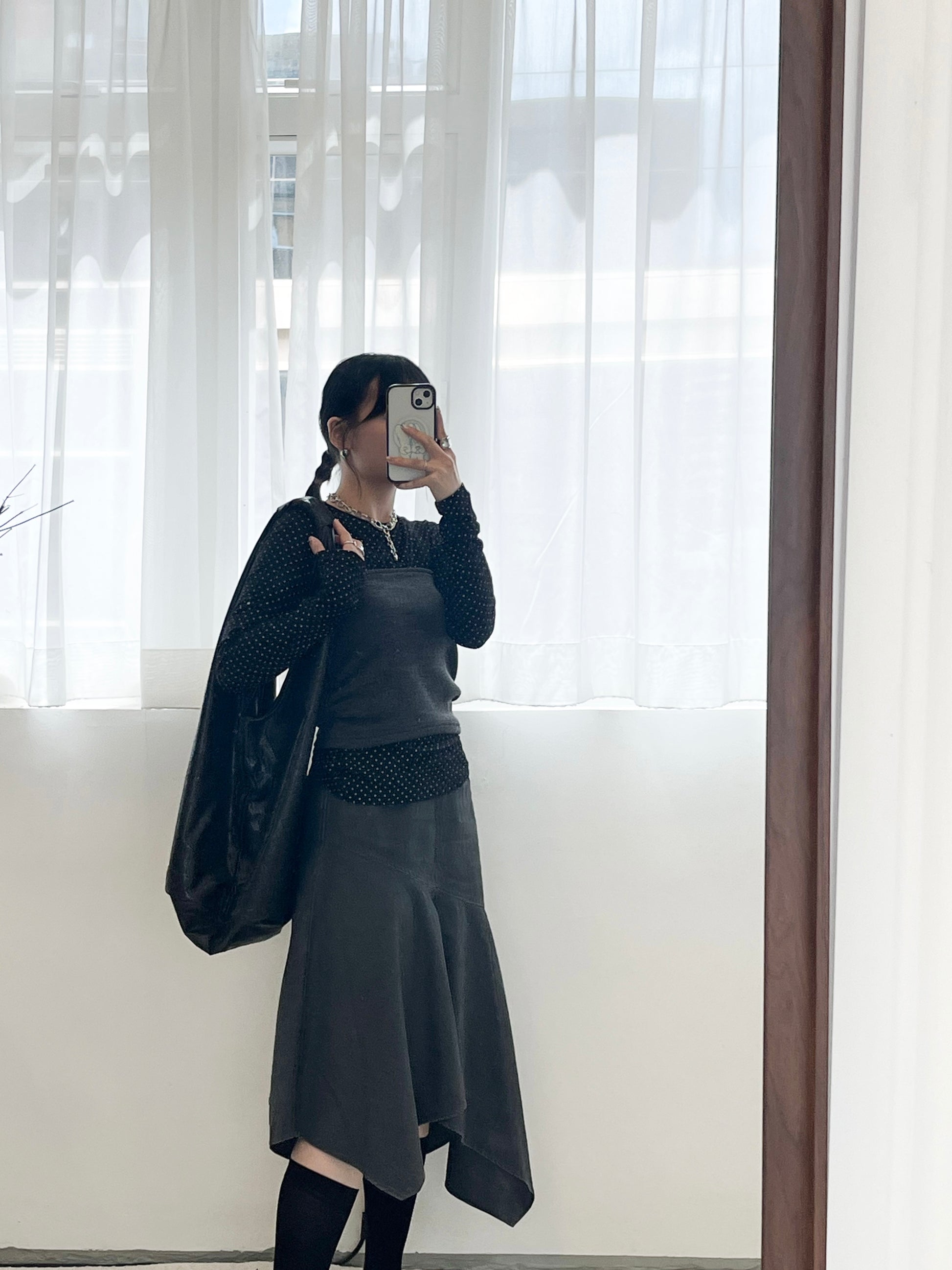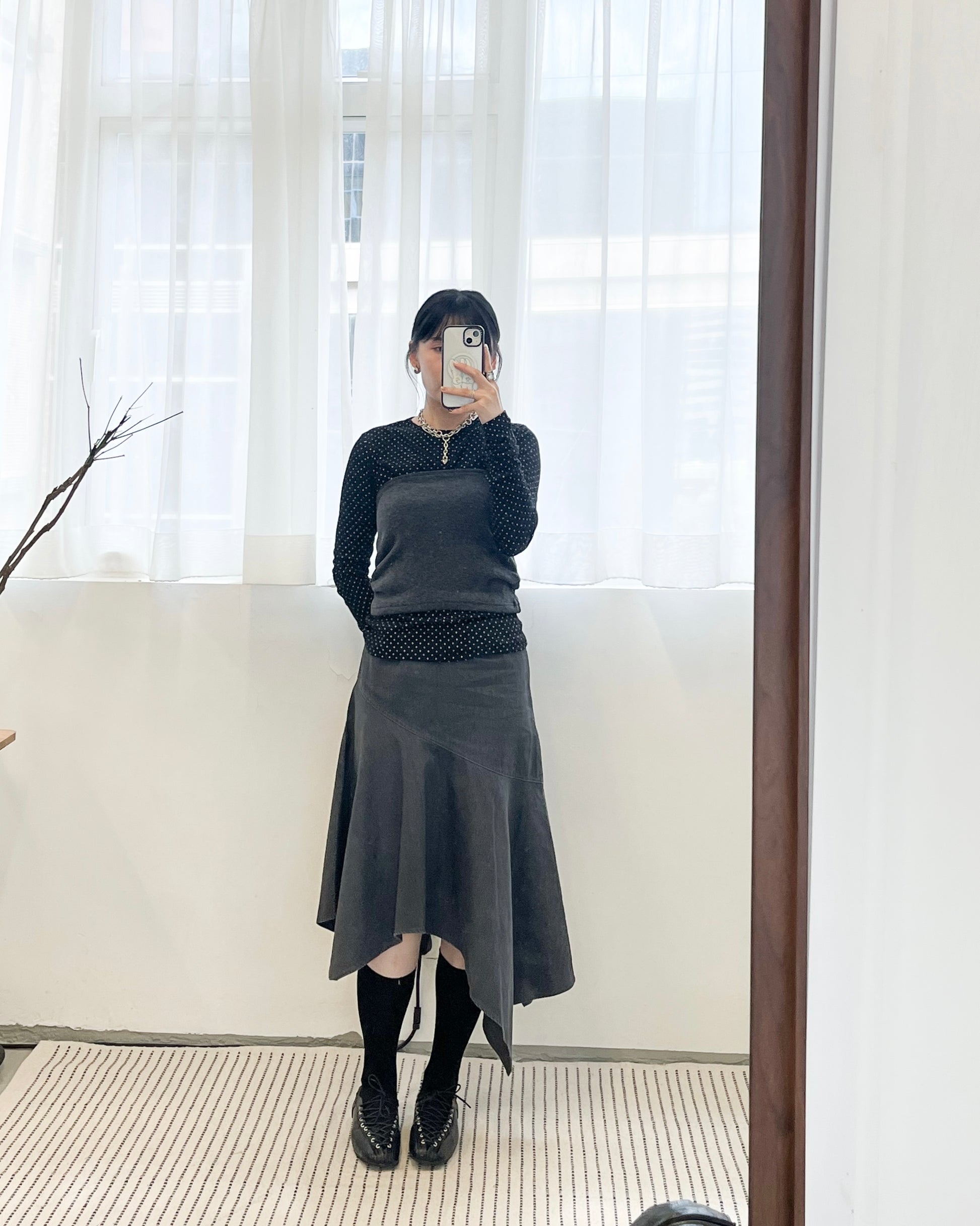 SK129- 微洗水不規則半截裙 | Charcoal ( S / M )