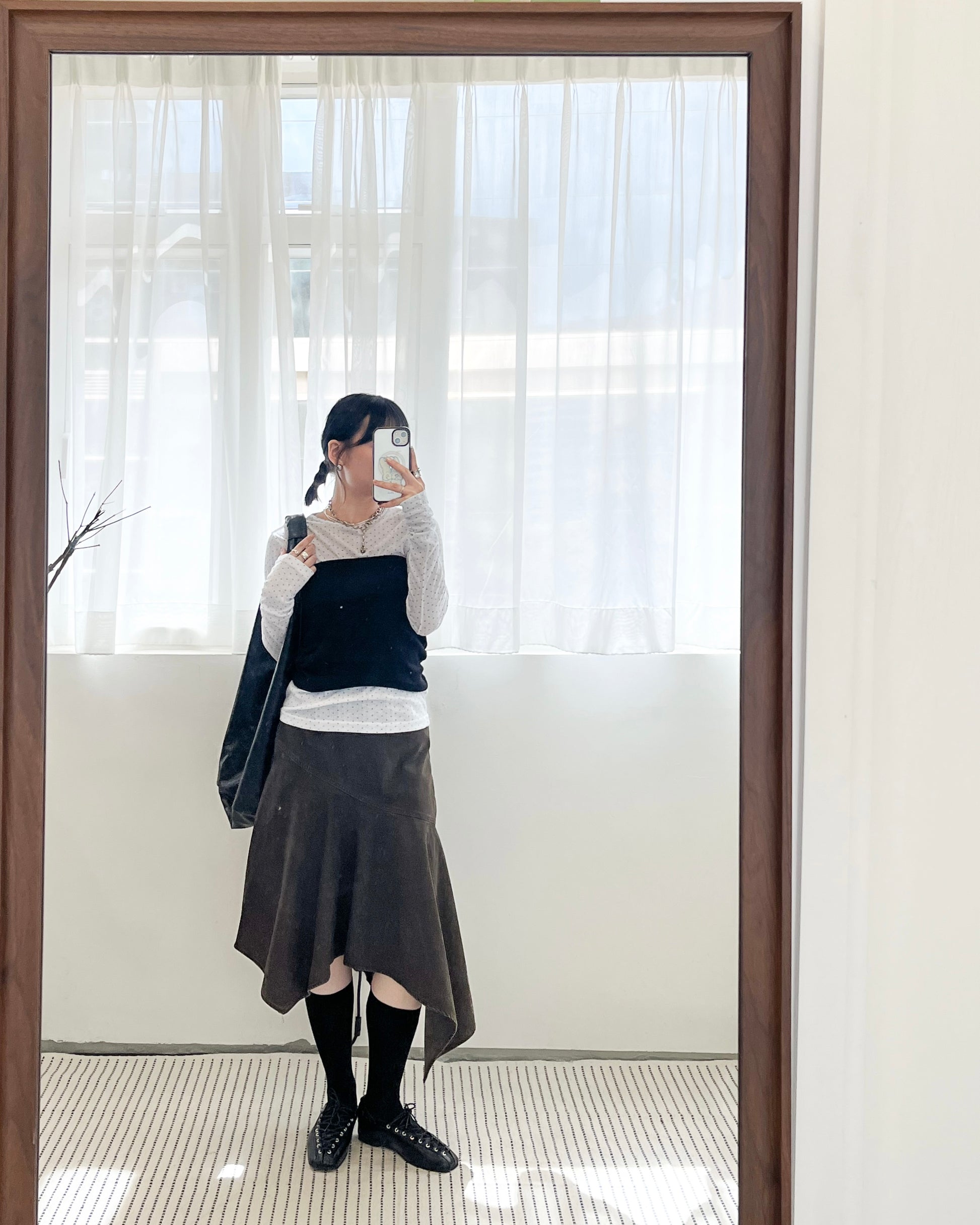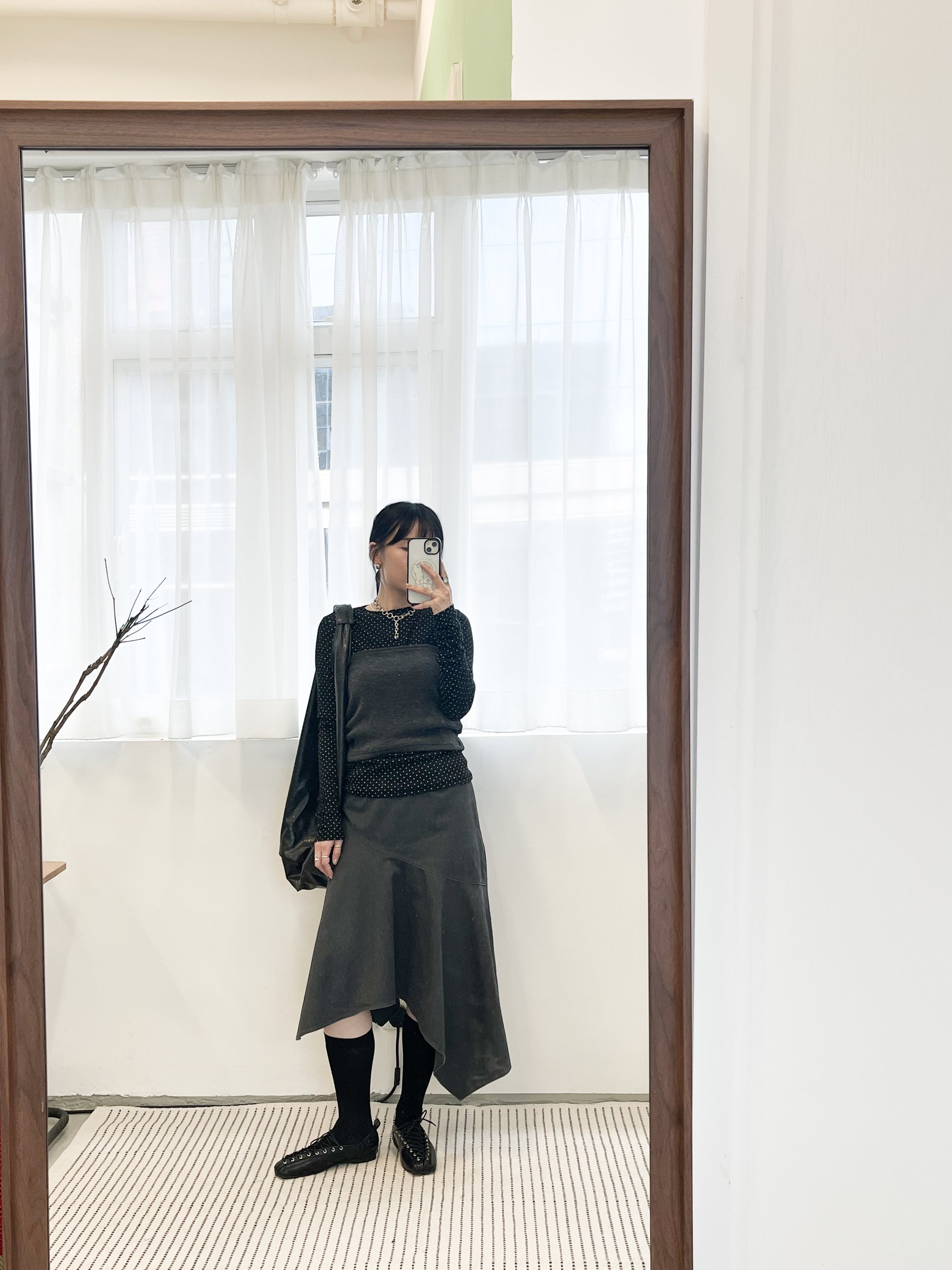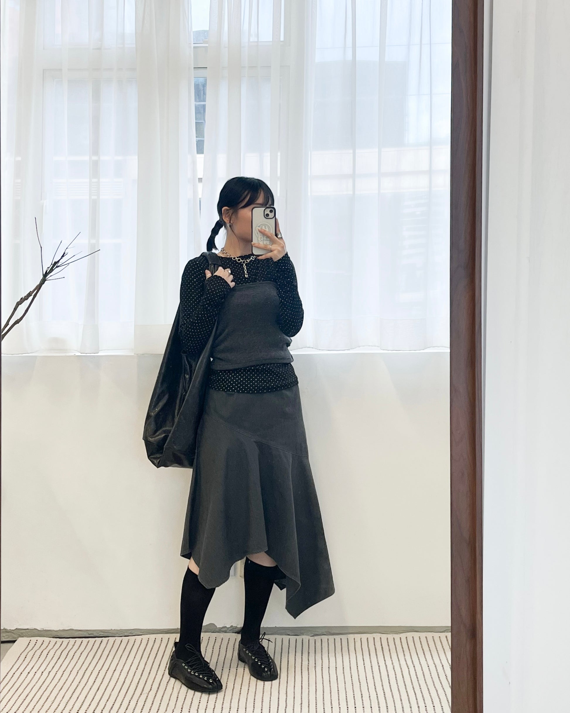 SK129- 微洗水不規則半截裙 | Charcoal ( S / M )