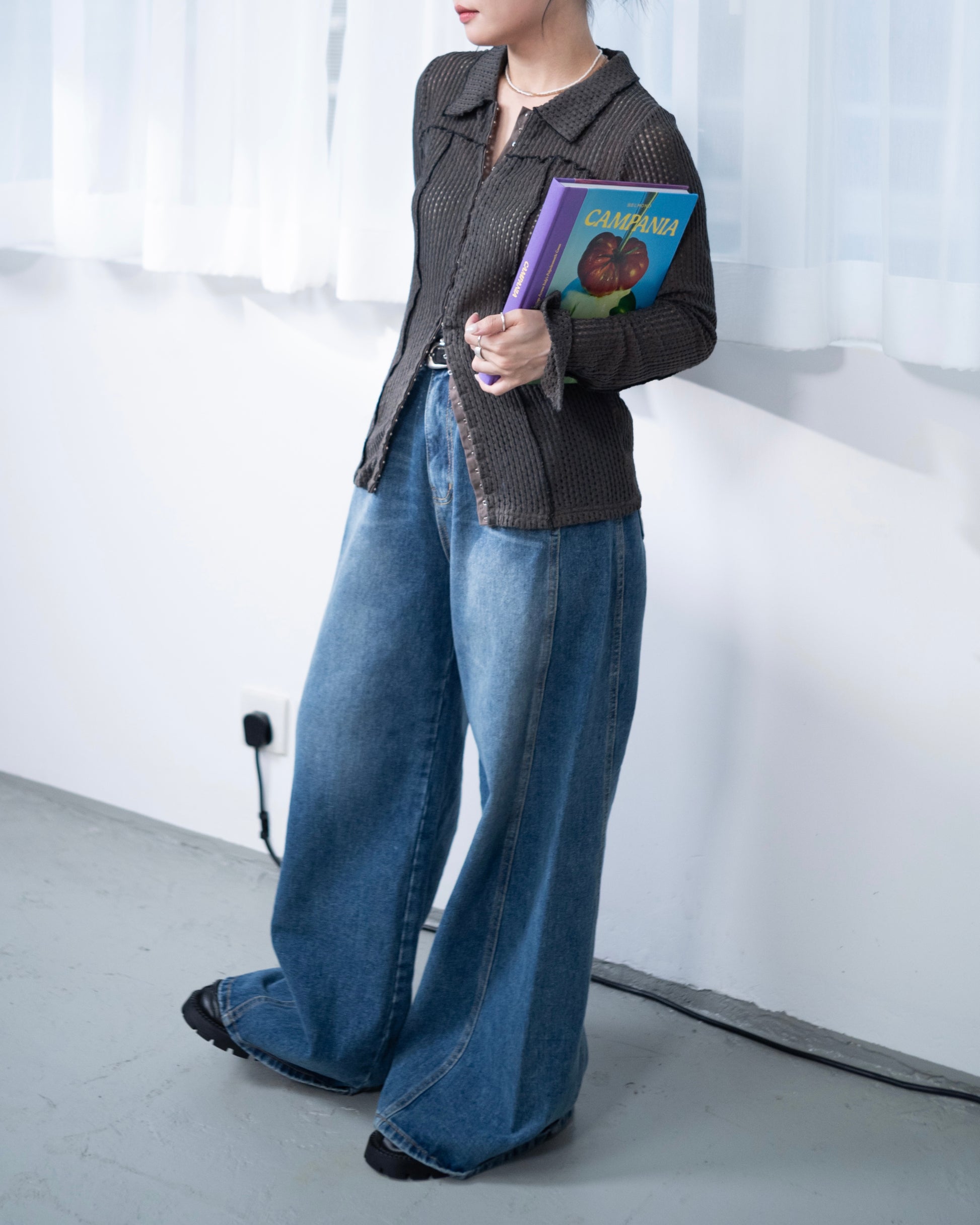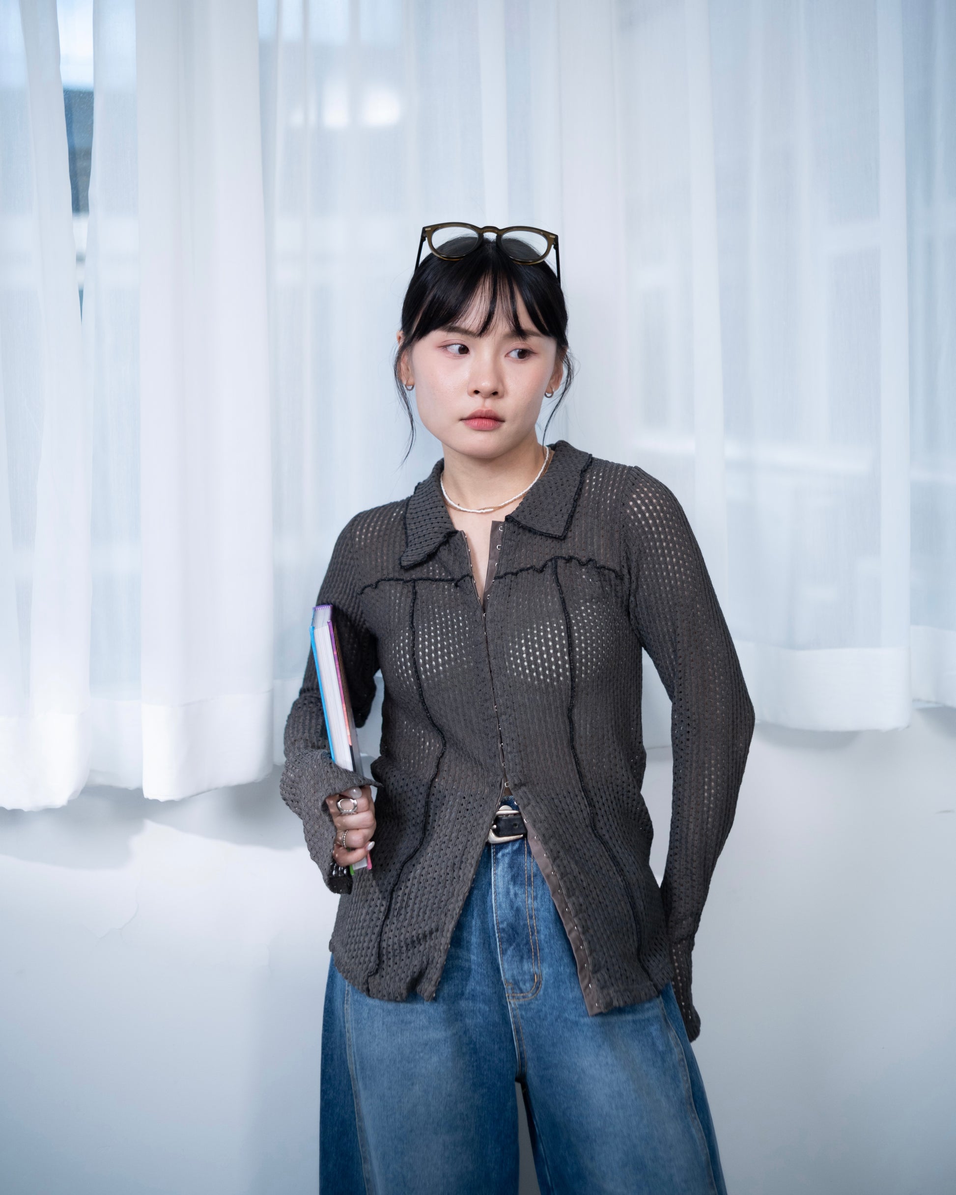 TP664- Outline Wave Blouse | Brown | Charcoal