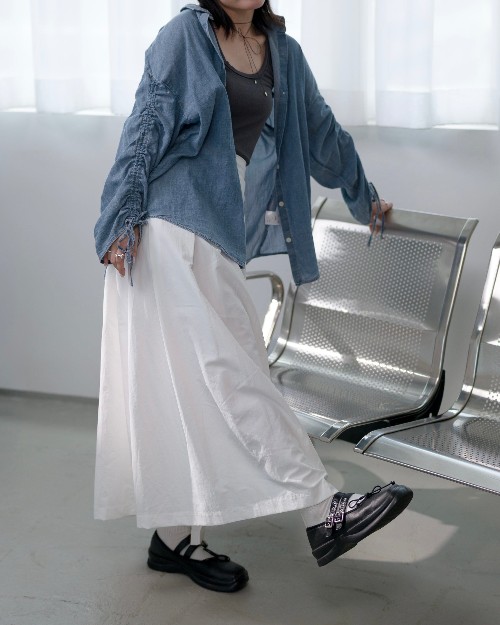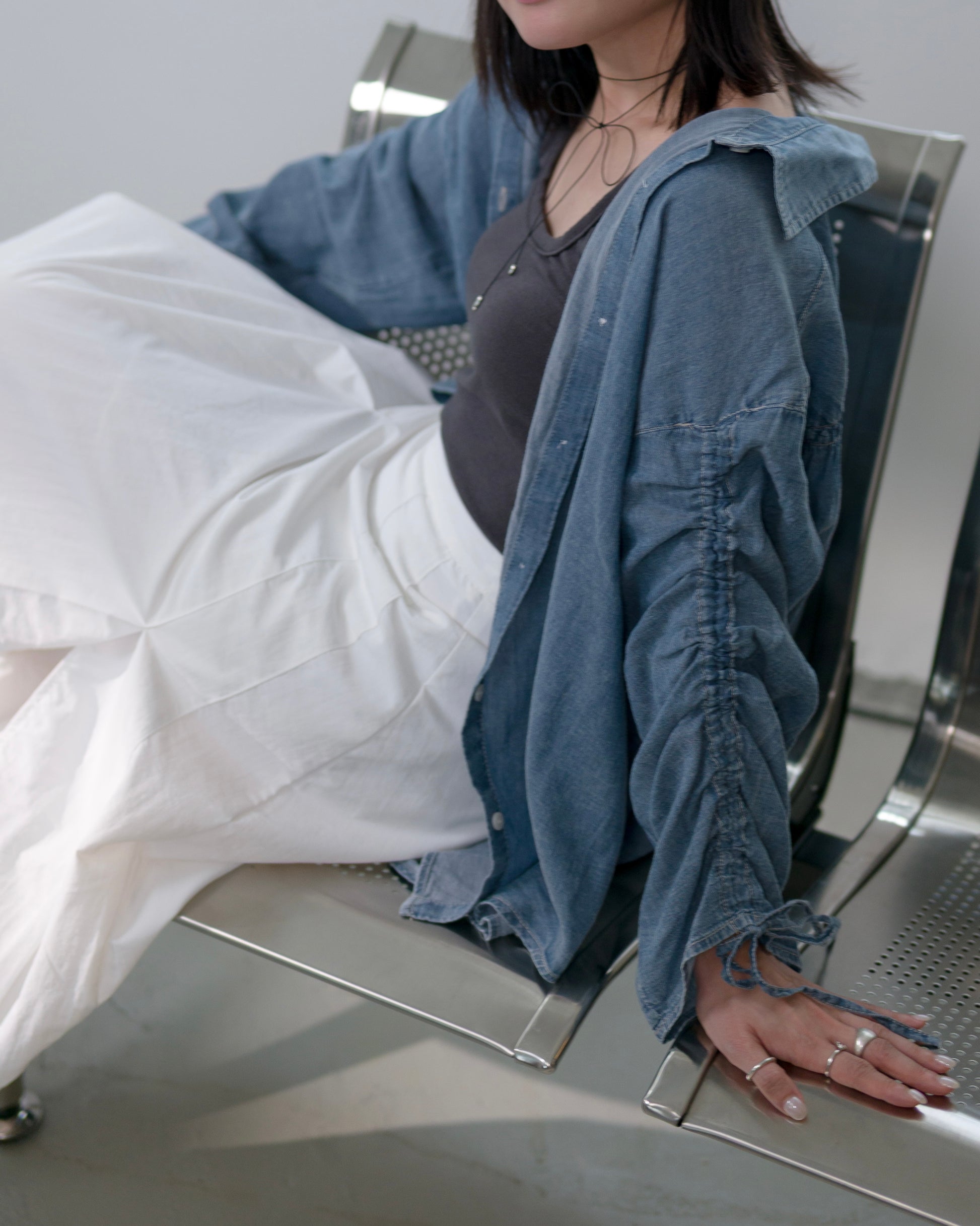 TP667- Soft Denim Drawsting Shirt | Light Blue | Blue | Black
