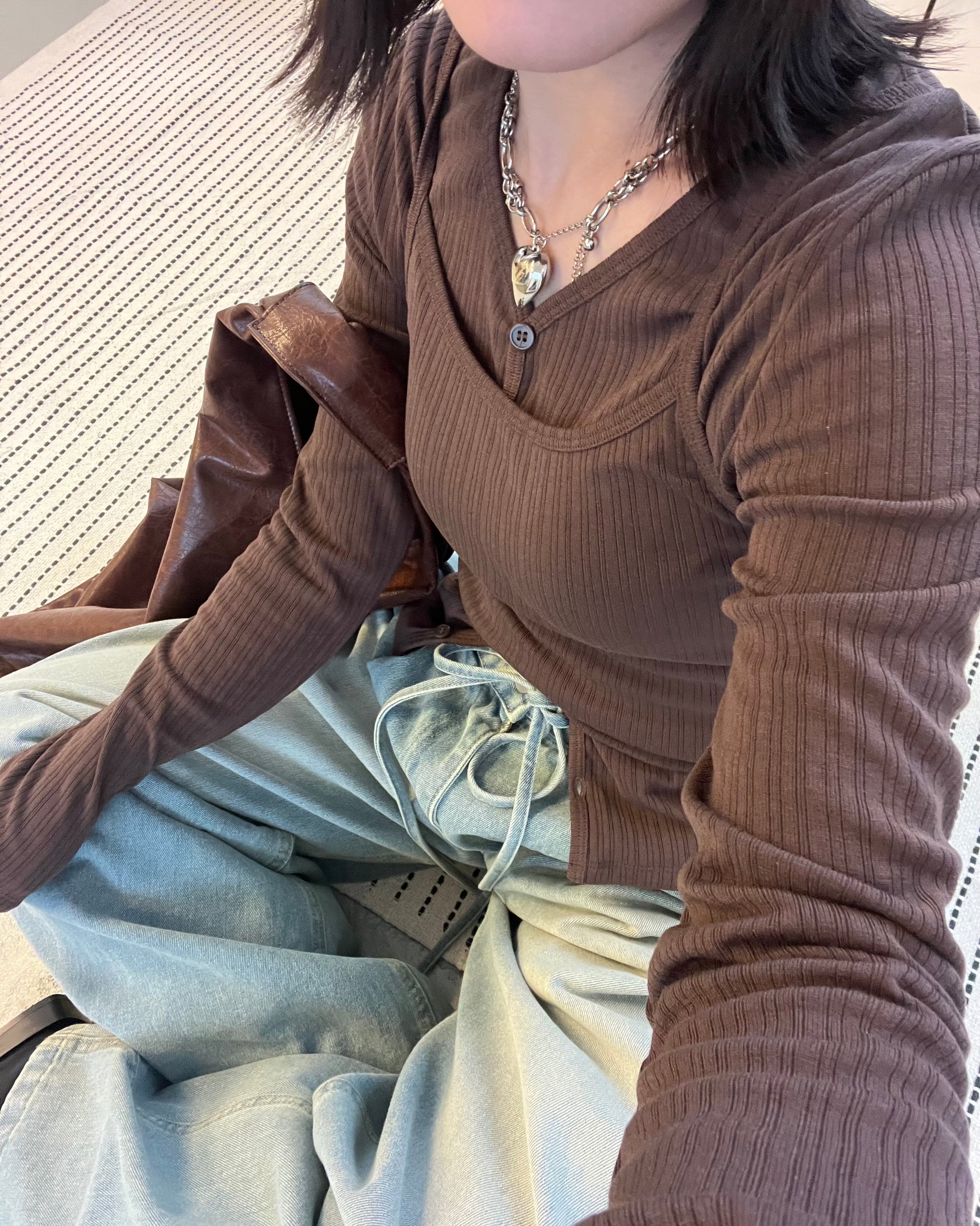 TP668- Vest and Cardigan 3 pcs Set | Grey | Brown | Black