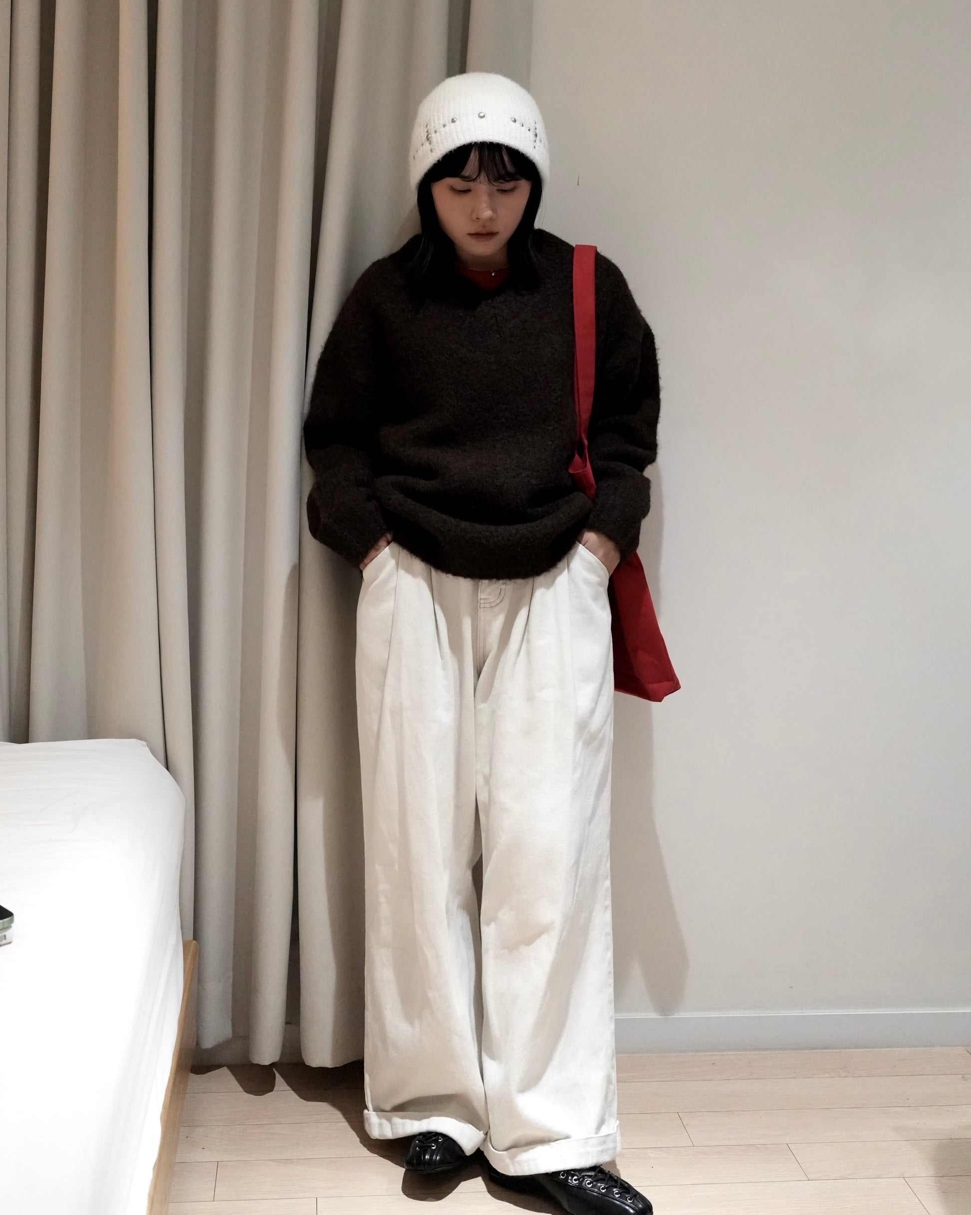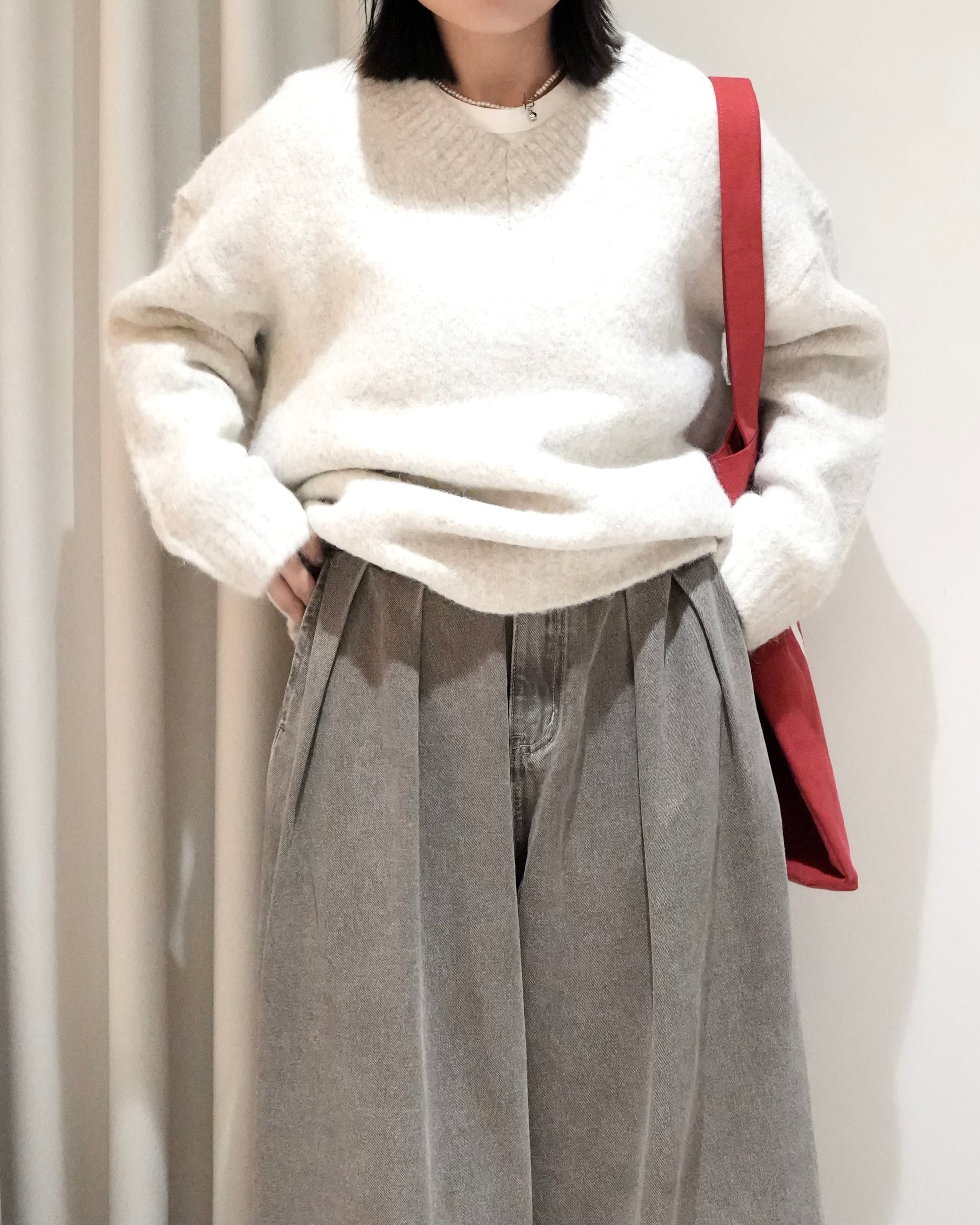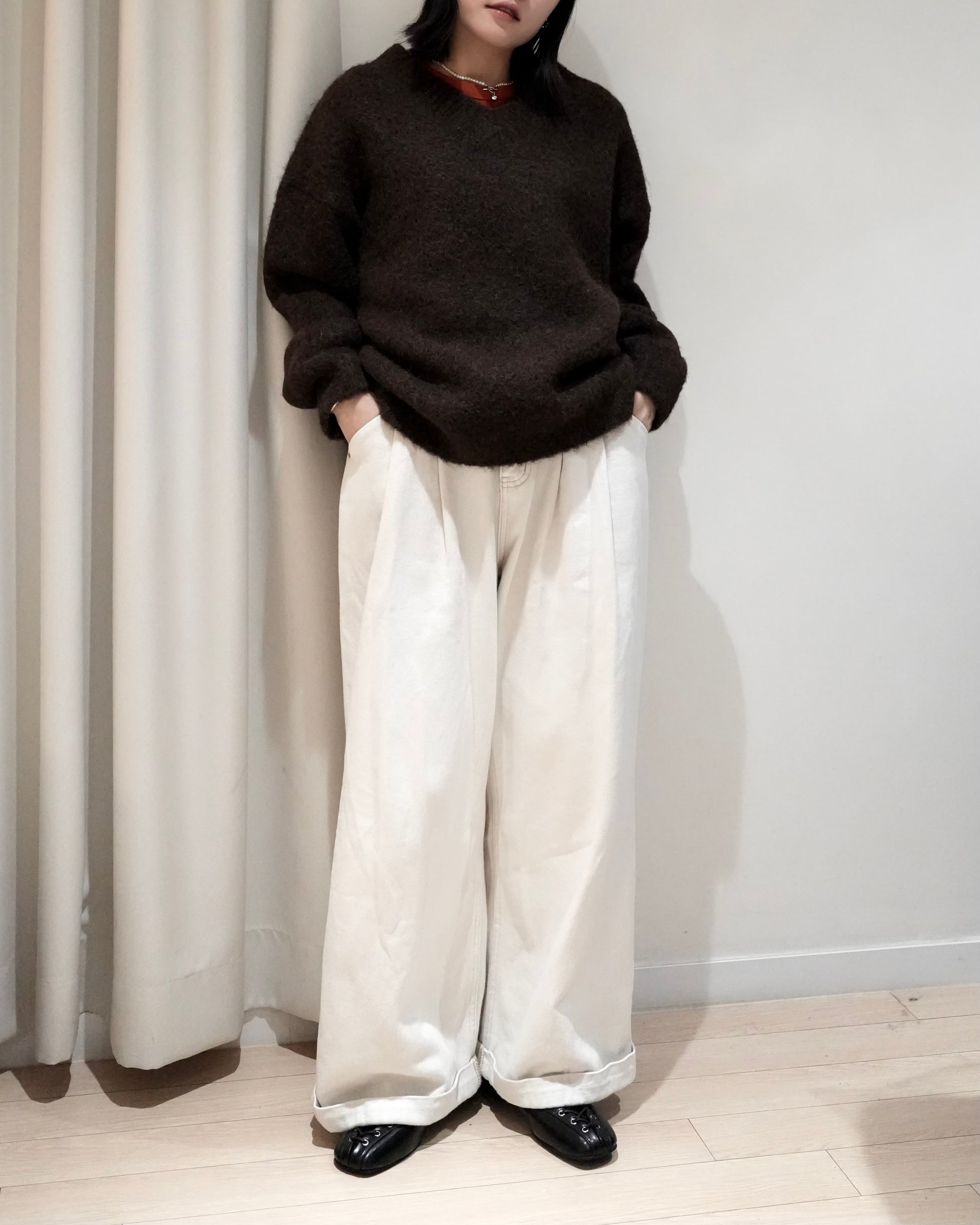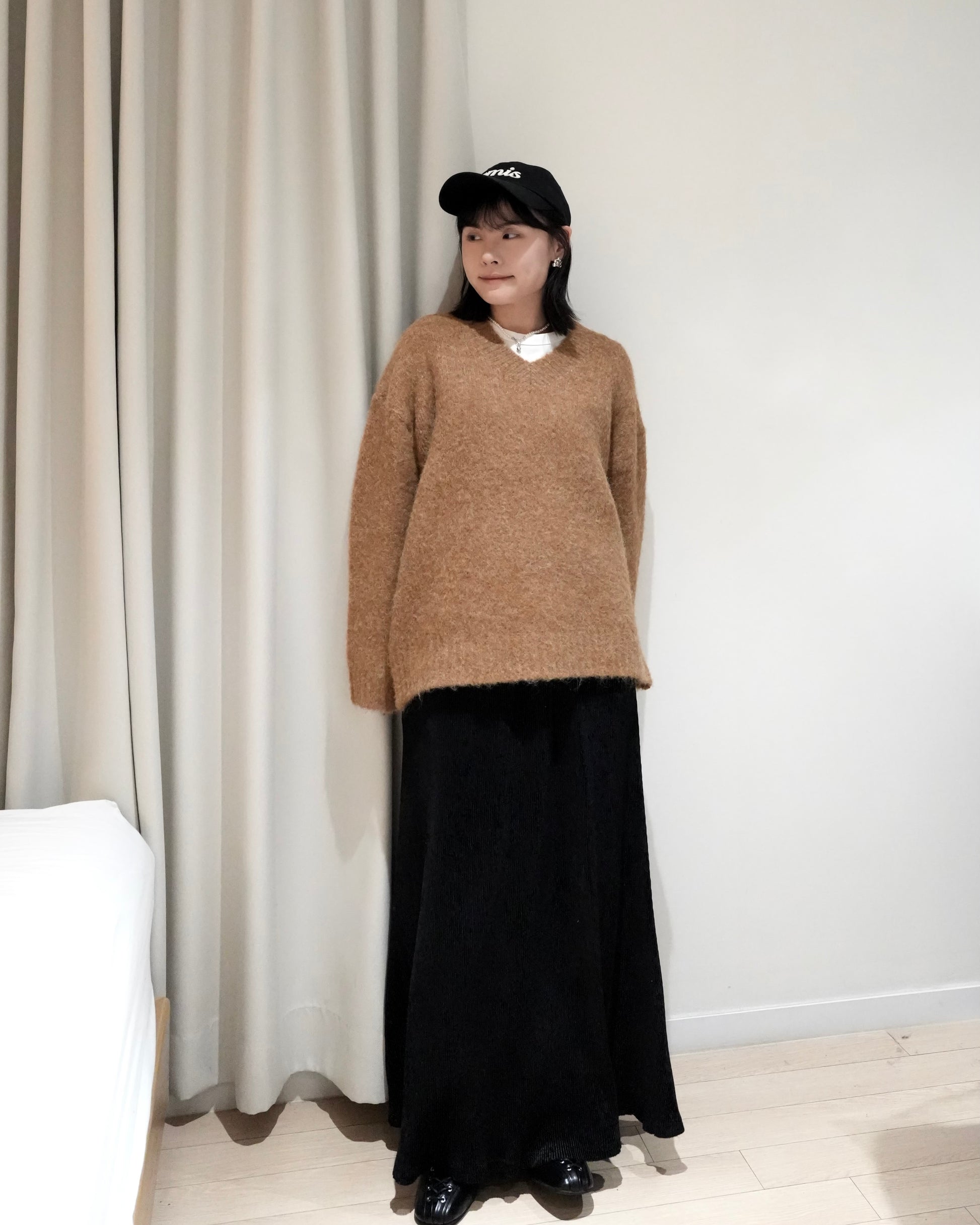 TP702- V Neck knit Top | Ivory | Camel | Brown