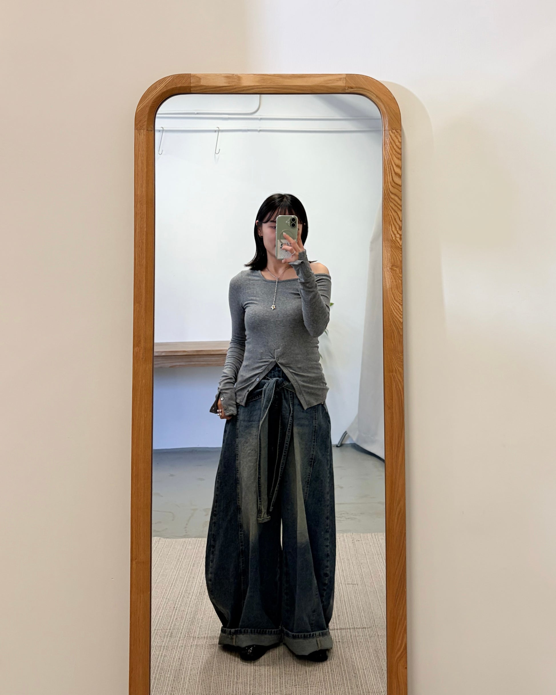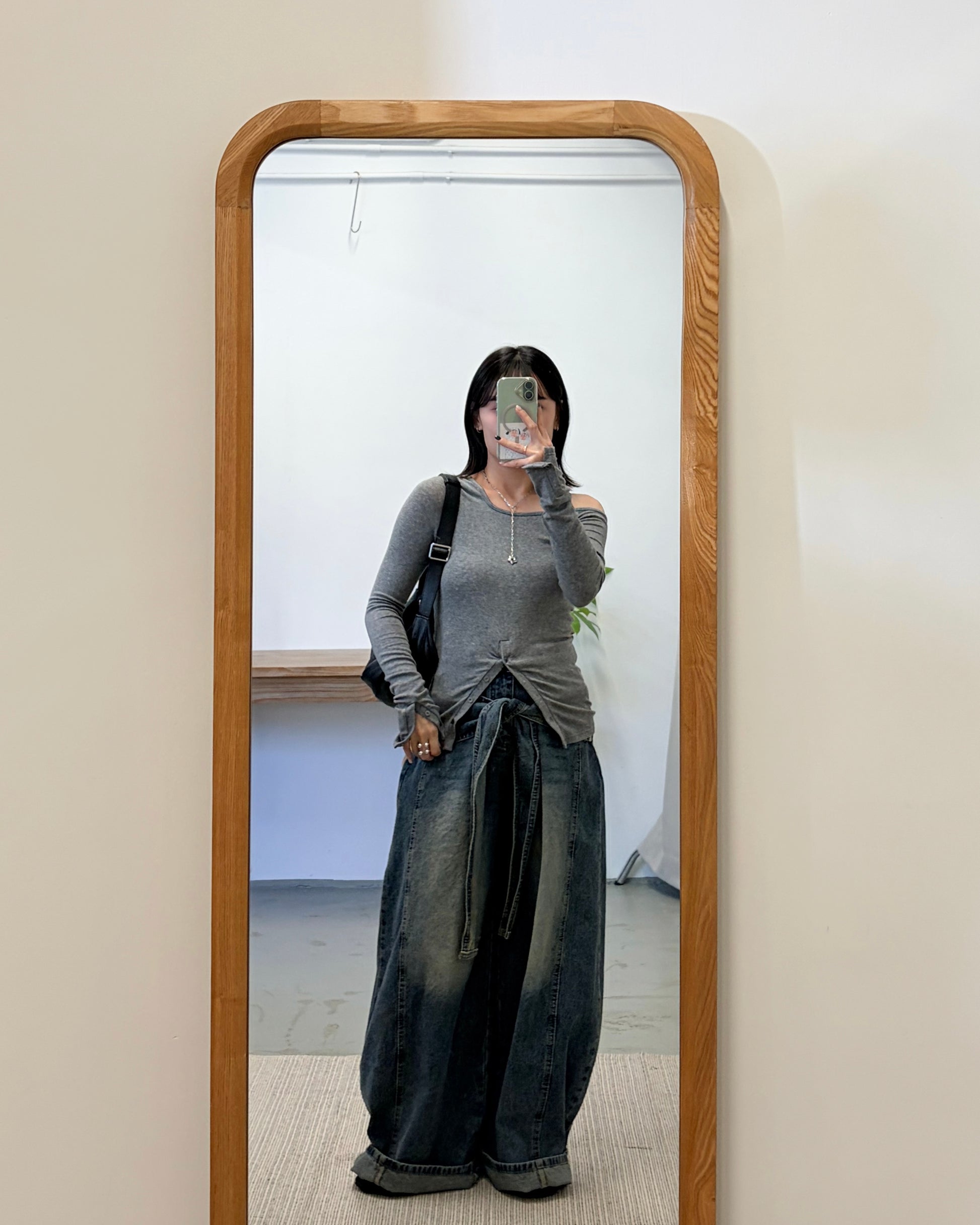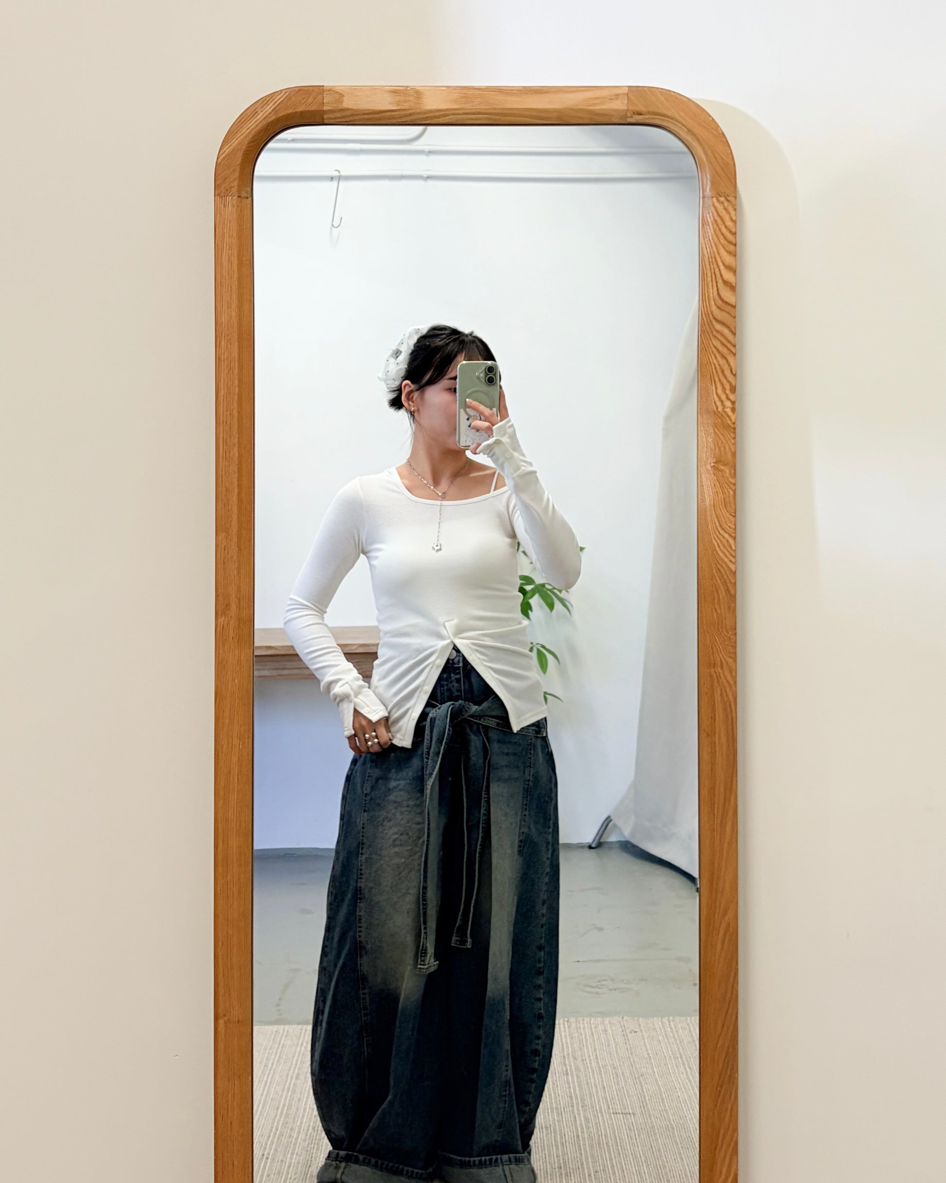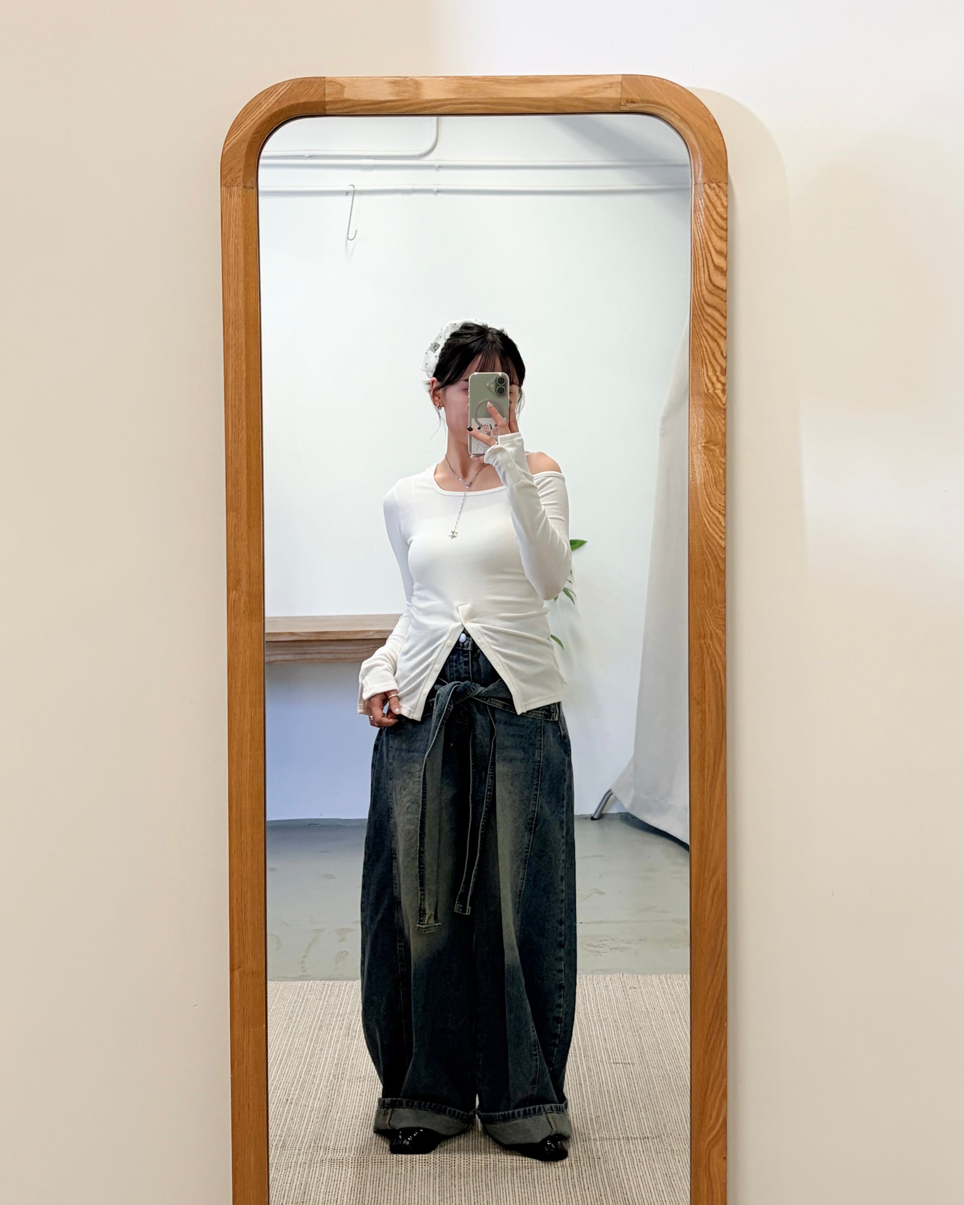 TP720- 斜肩貼身Button Cotton Top | White | Grey | Black