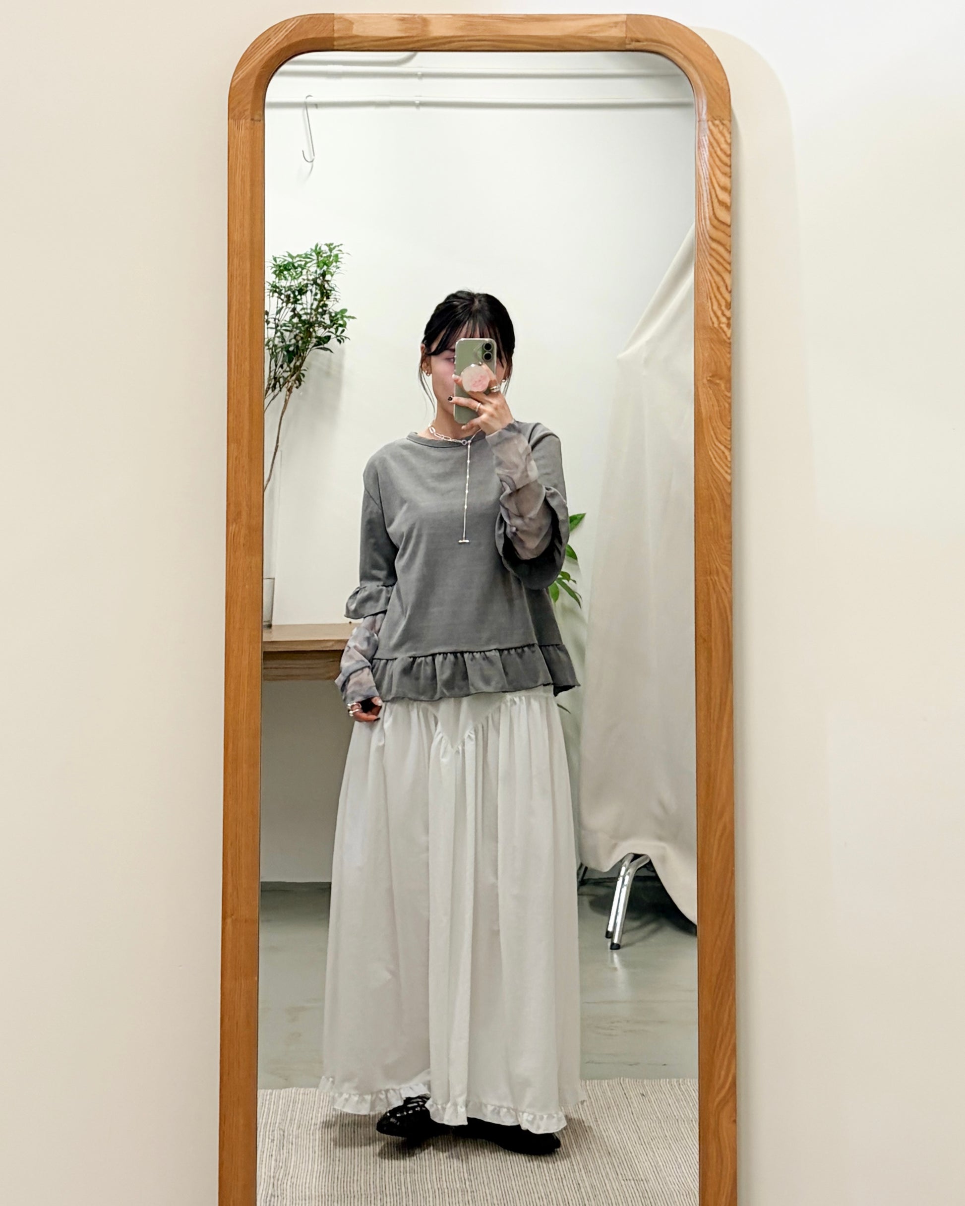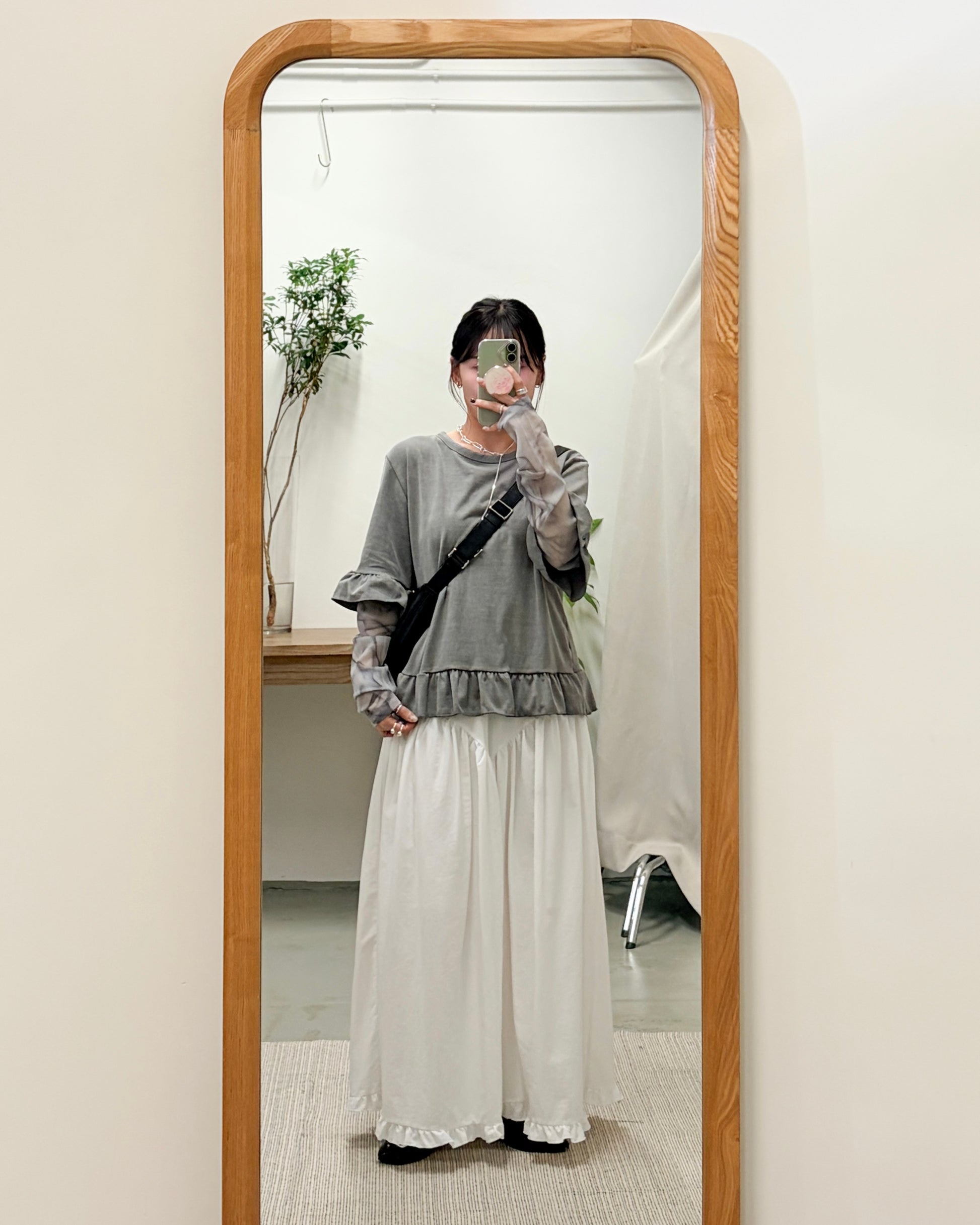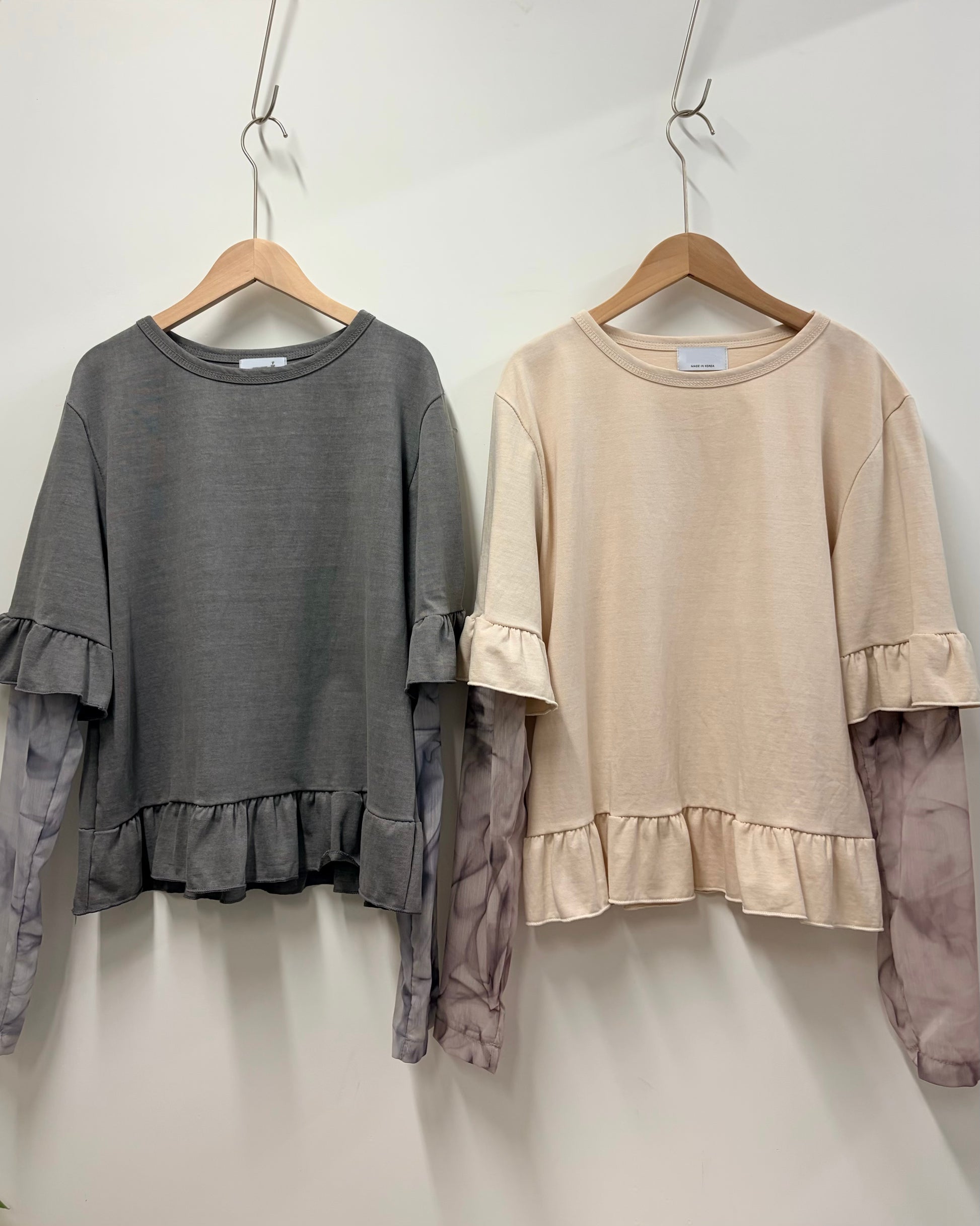 TP729- 2 in 1 Ruffle Sleeve Top | Beige | Grey