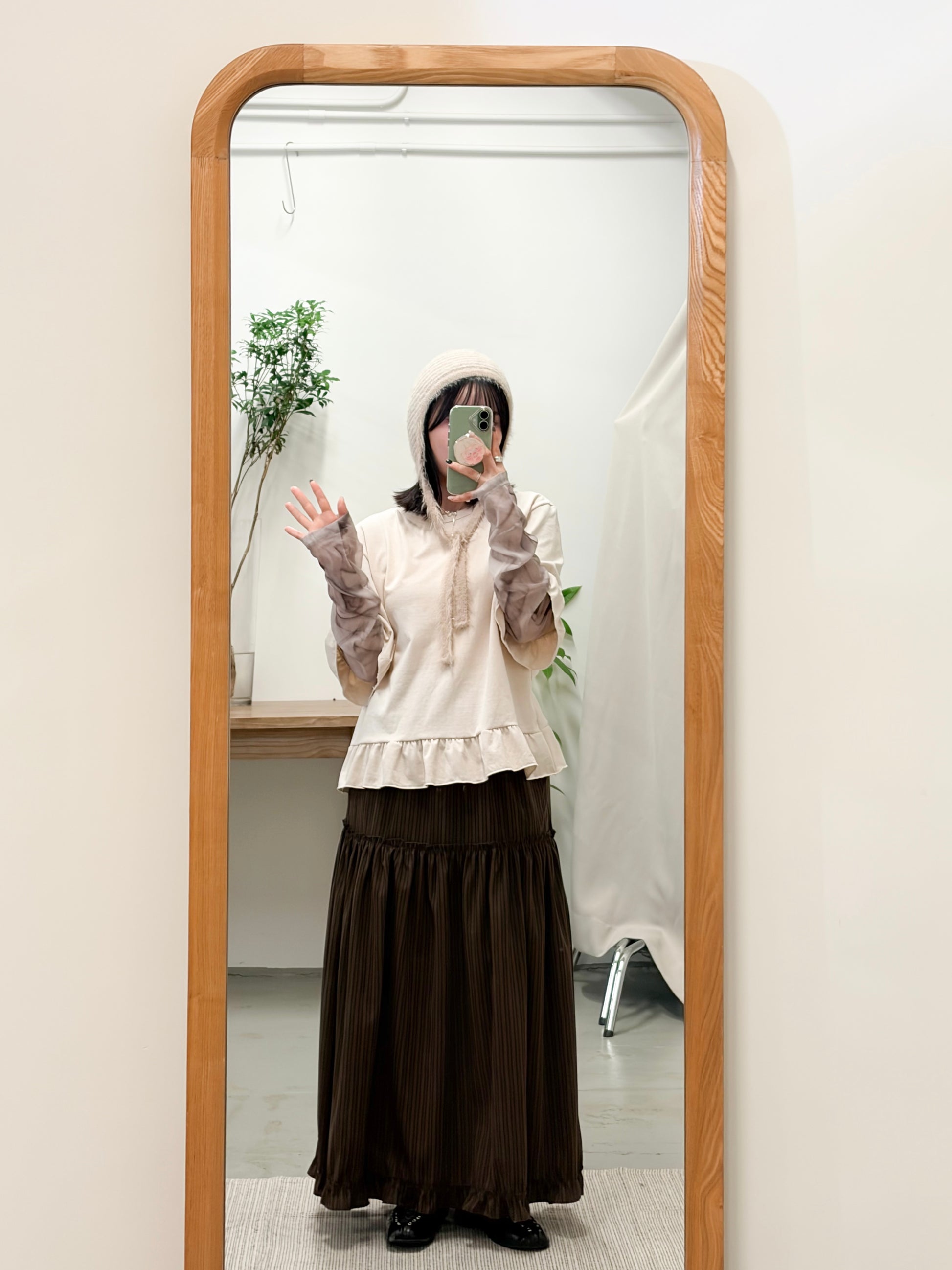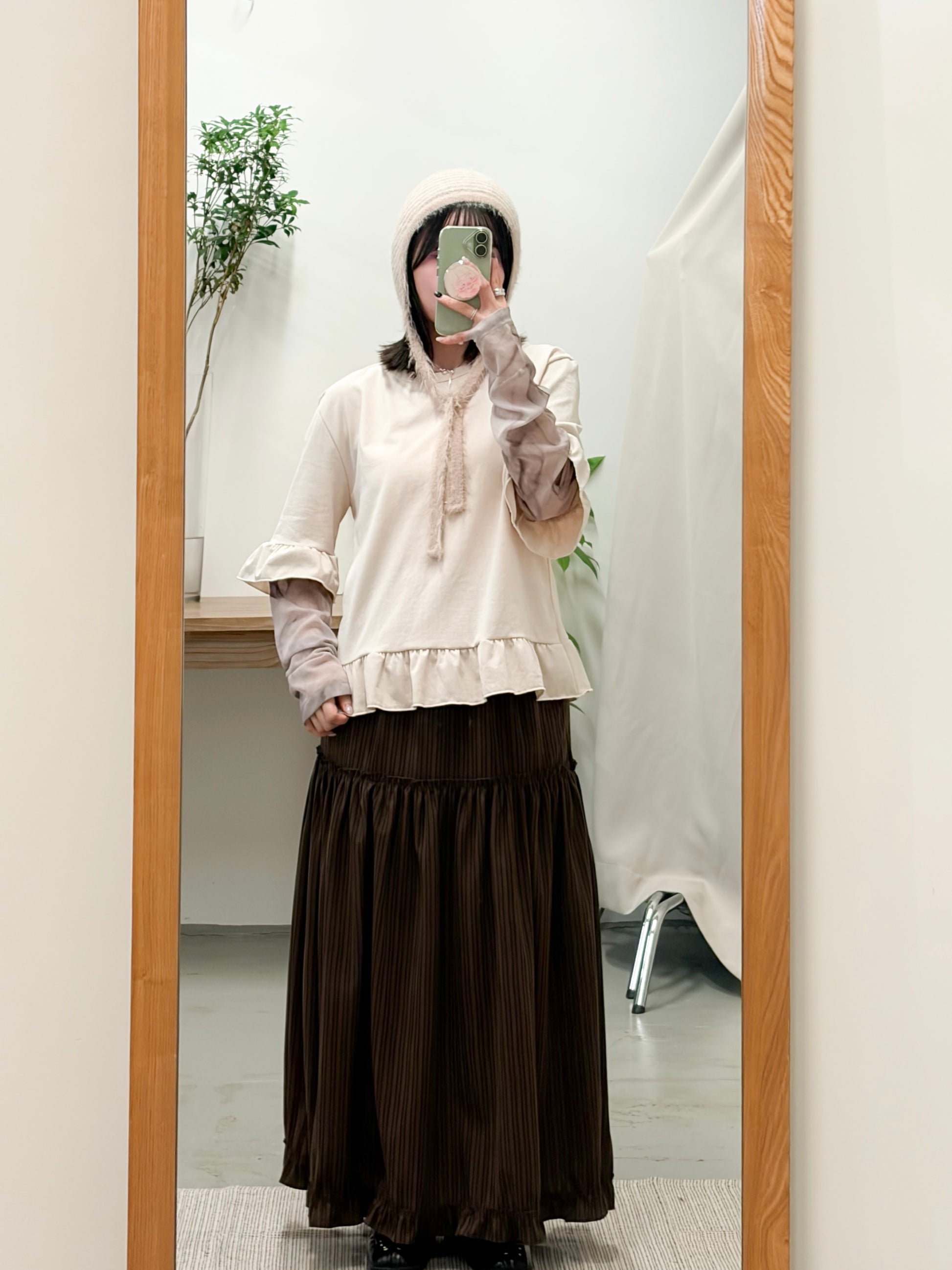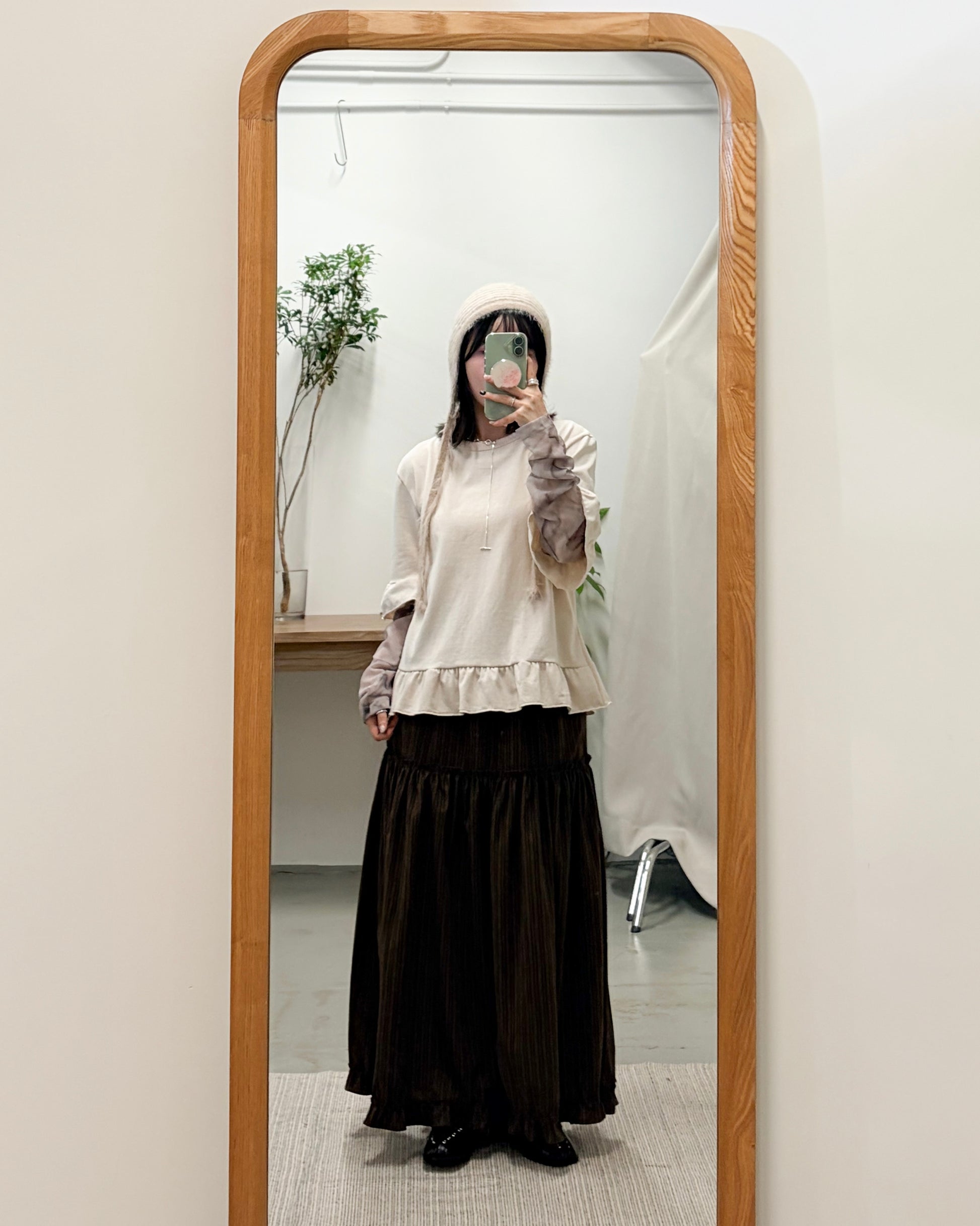 TP729- 2 in 1 Ruffle Sleeve Top | Beige | Grey