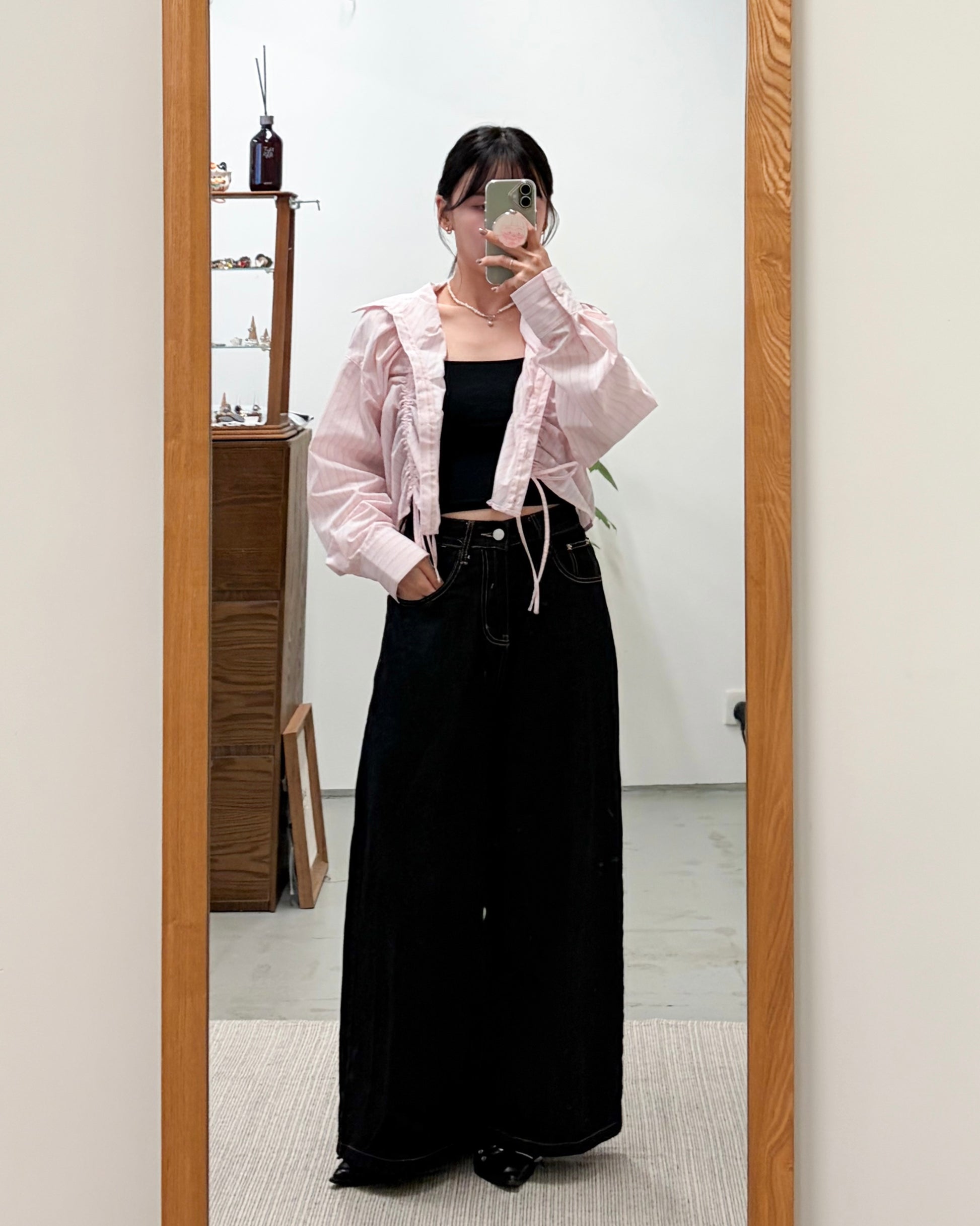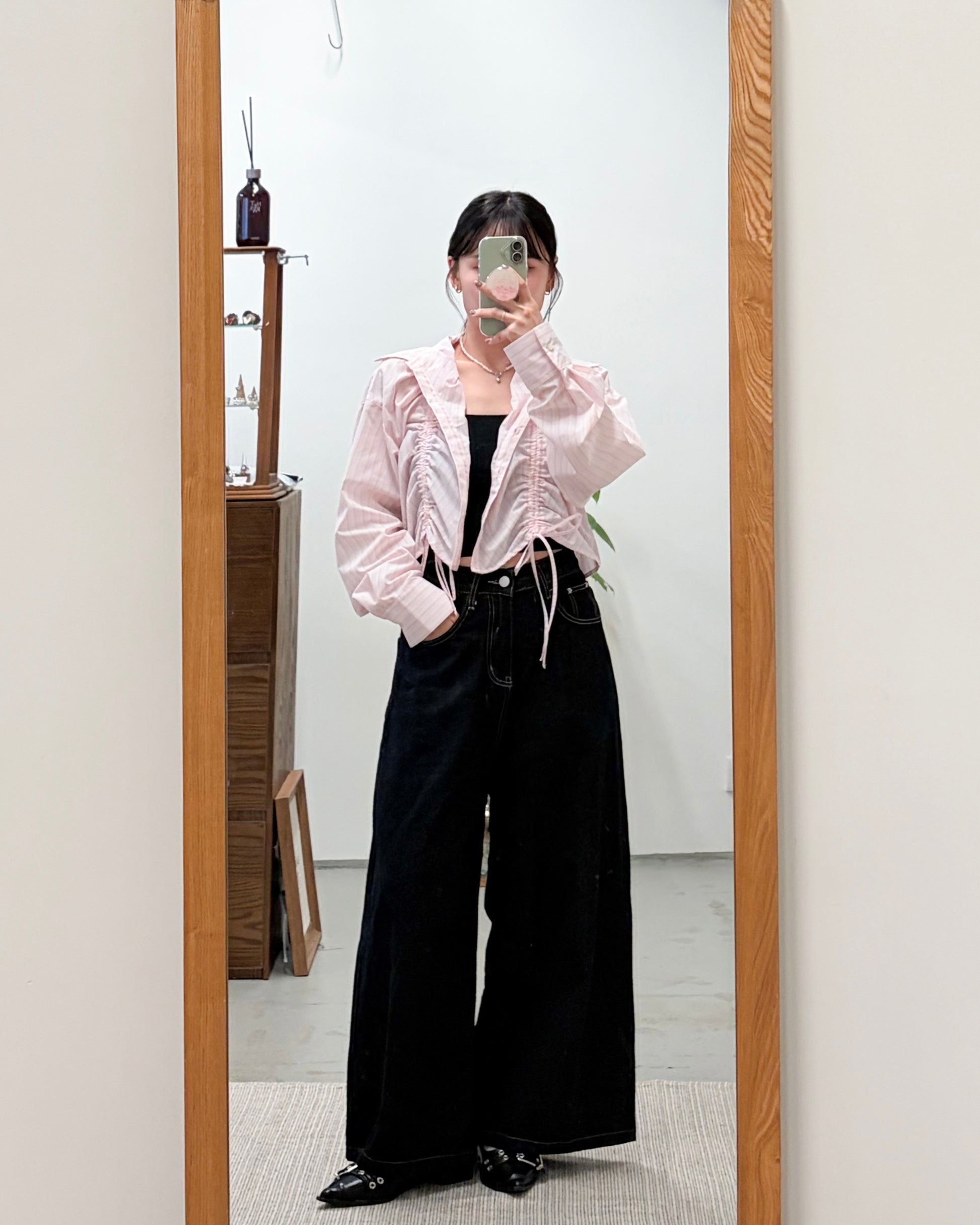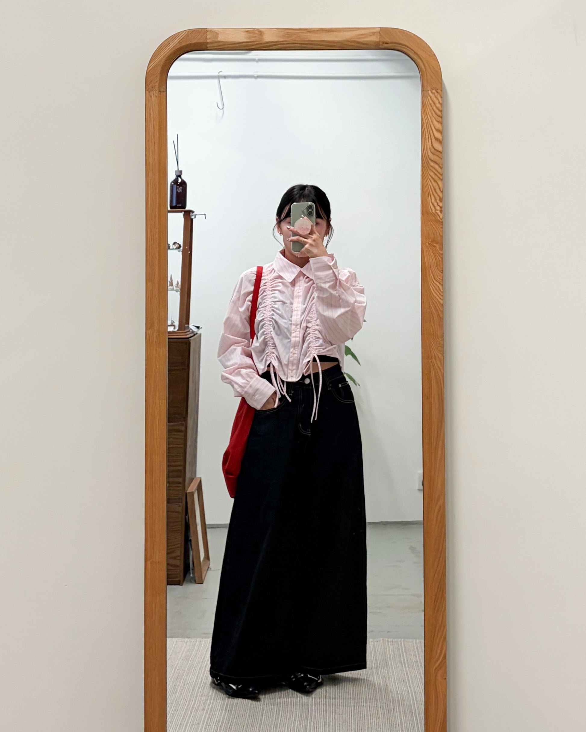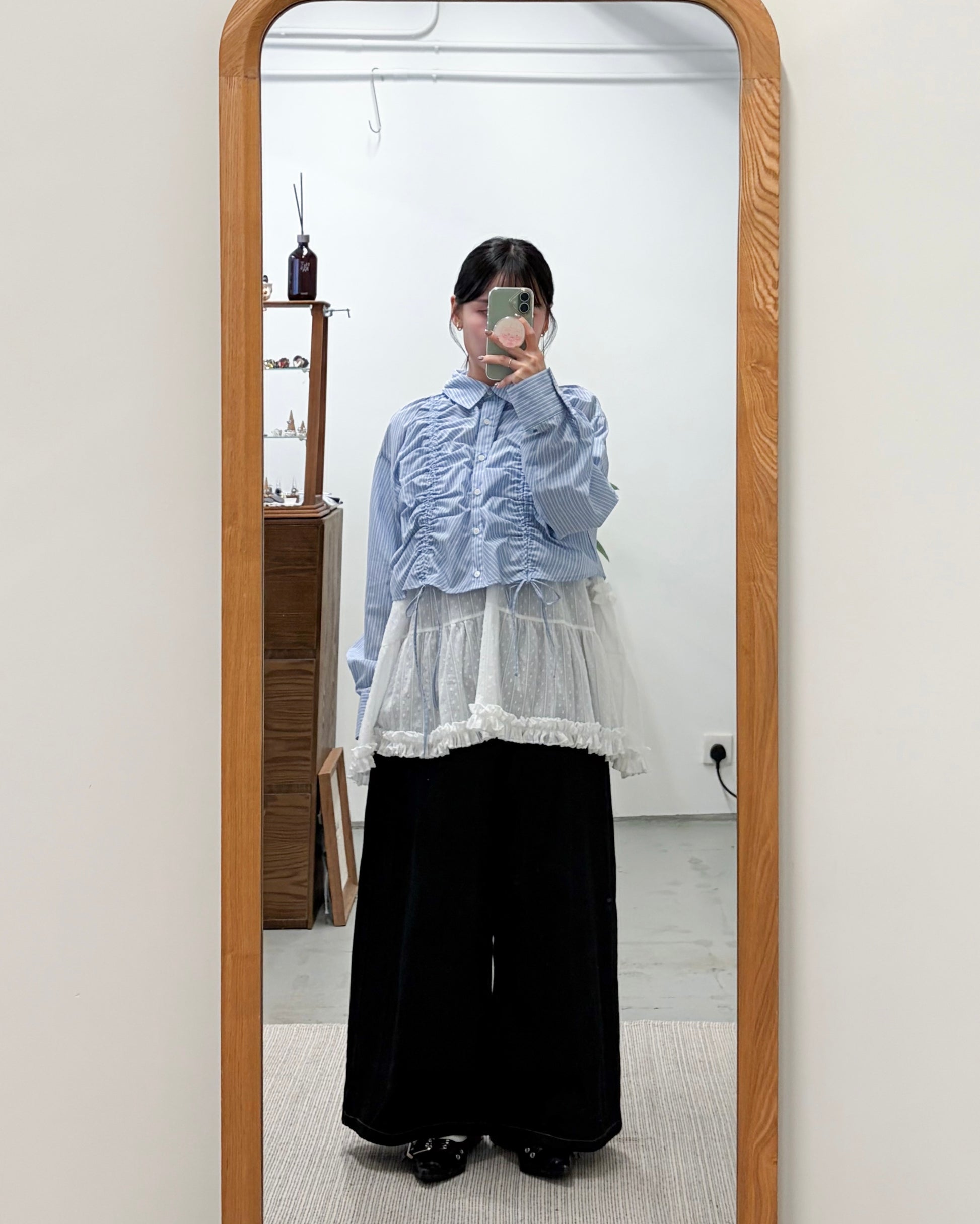 TP739- Front Shirring Short Length Shirt | Pink | Blue