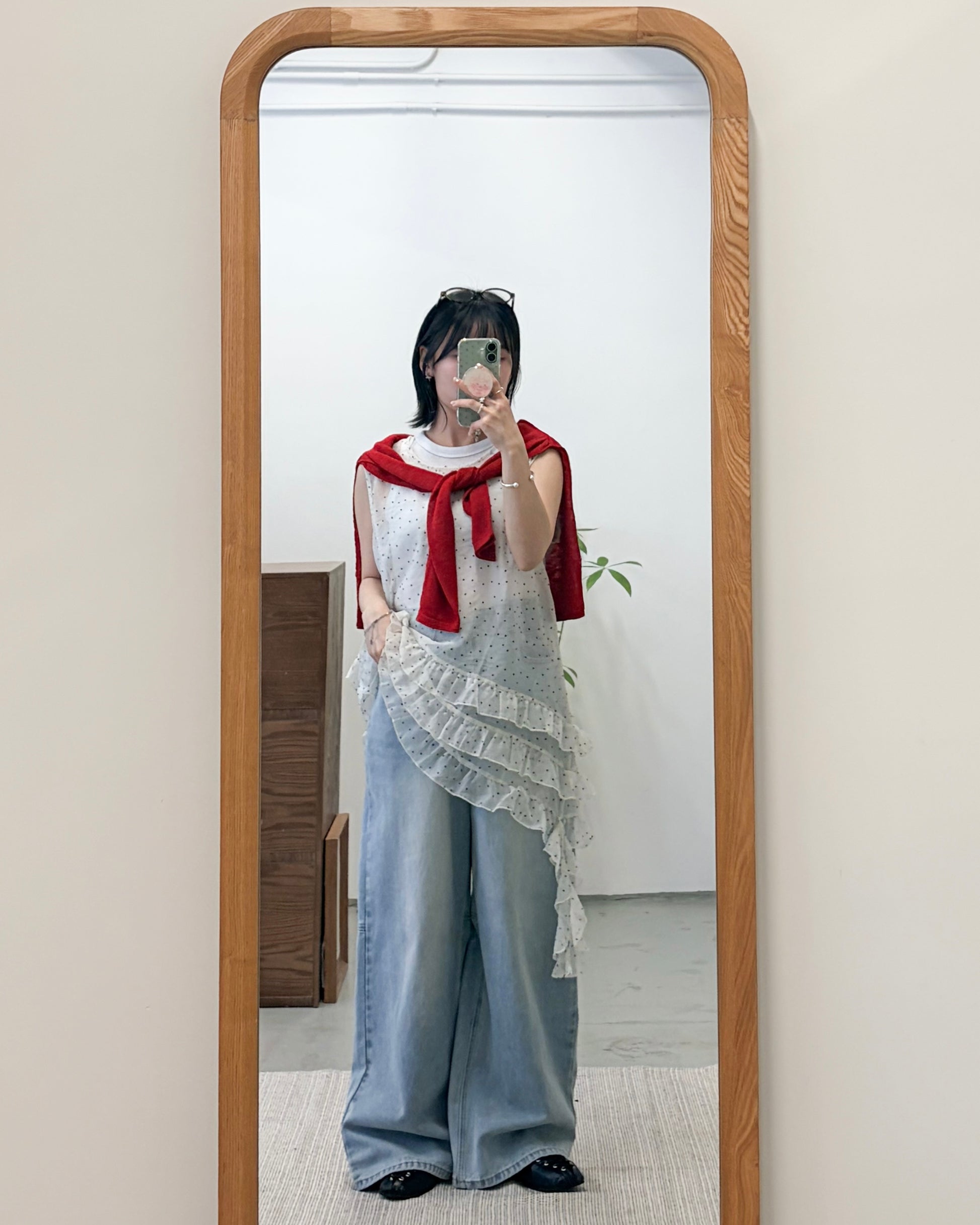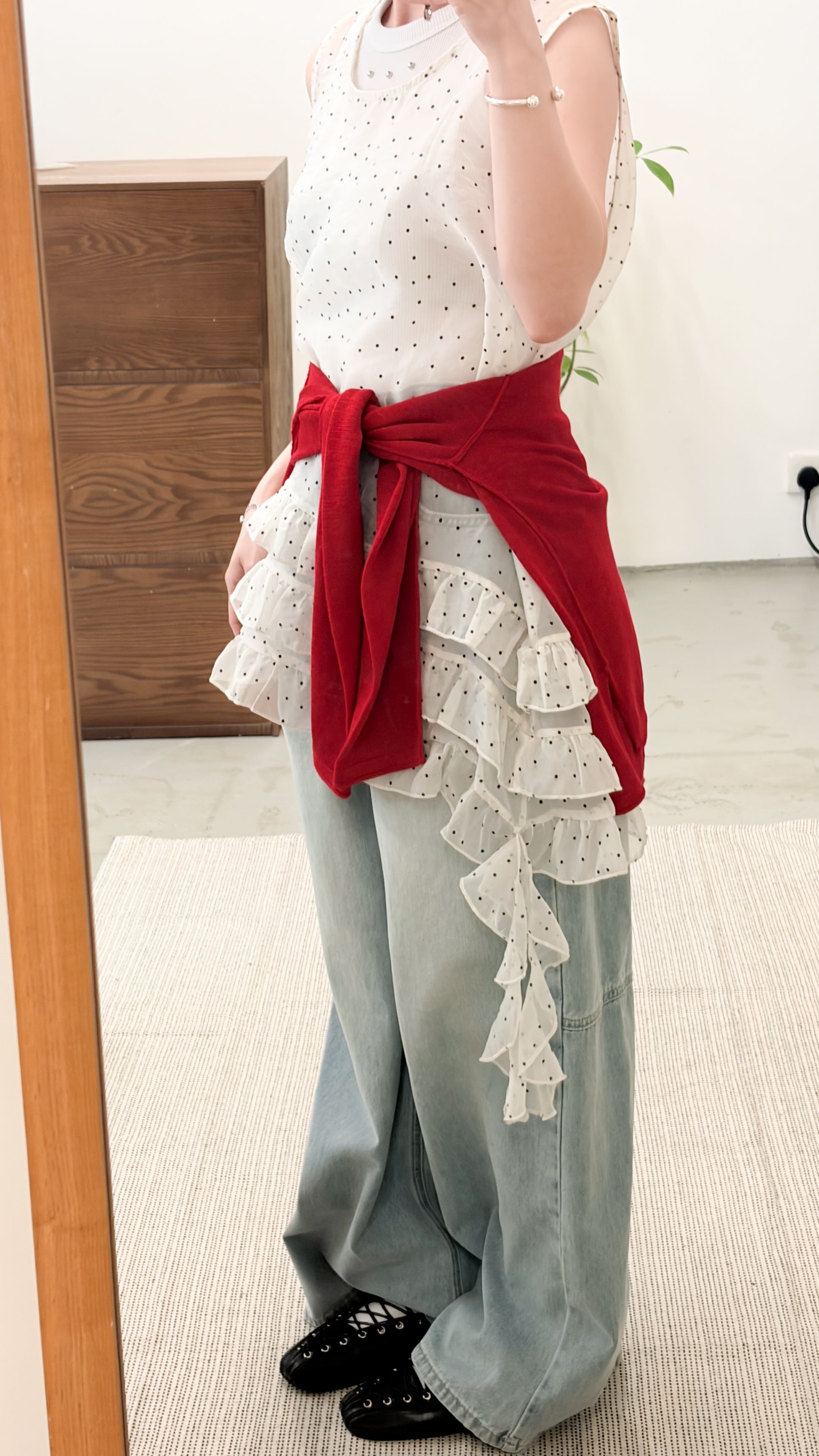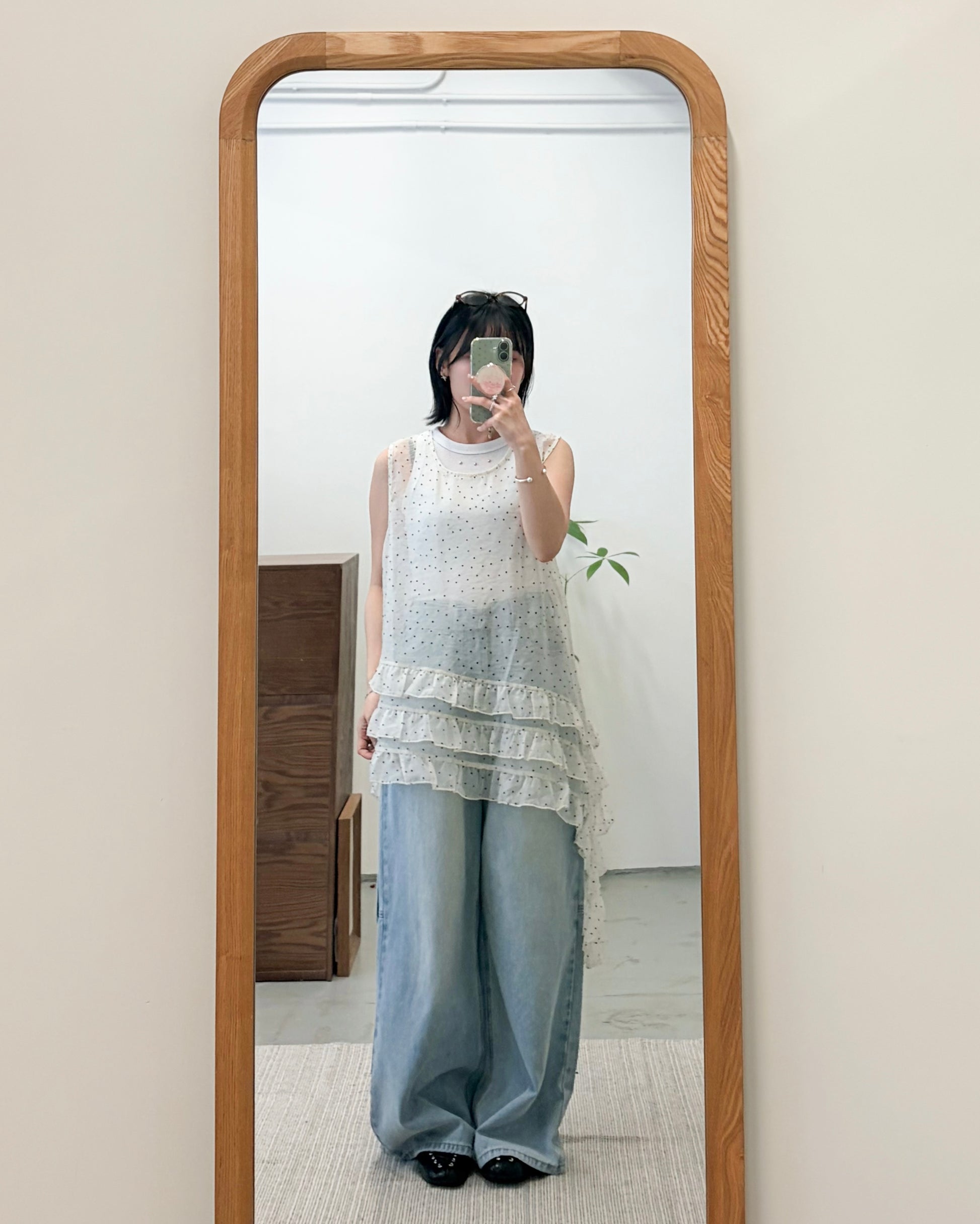 TP750- 網紗不規則Ruffle Vest Top | Ivory